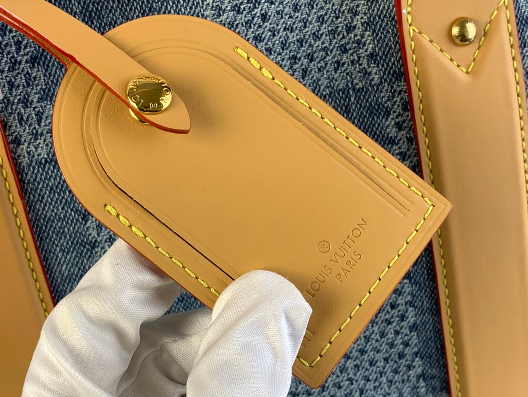 WEEKEND TOTE BAG 43 IN BLUE DAMIER DENIM 3D