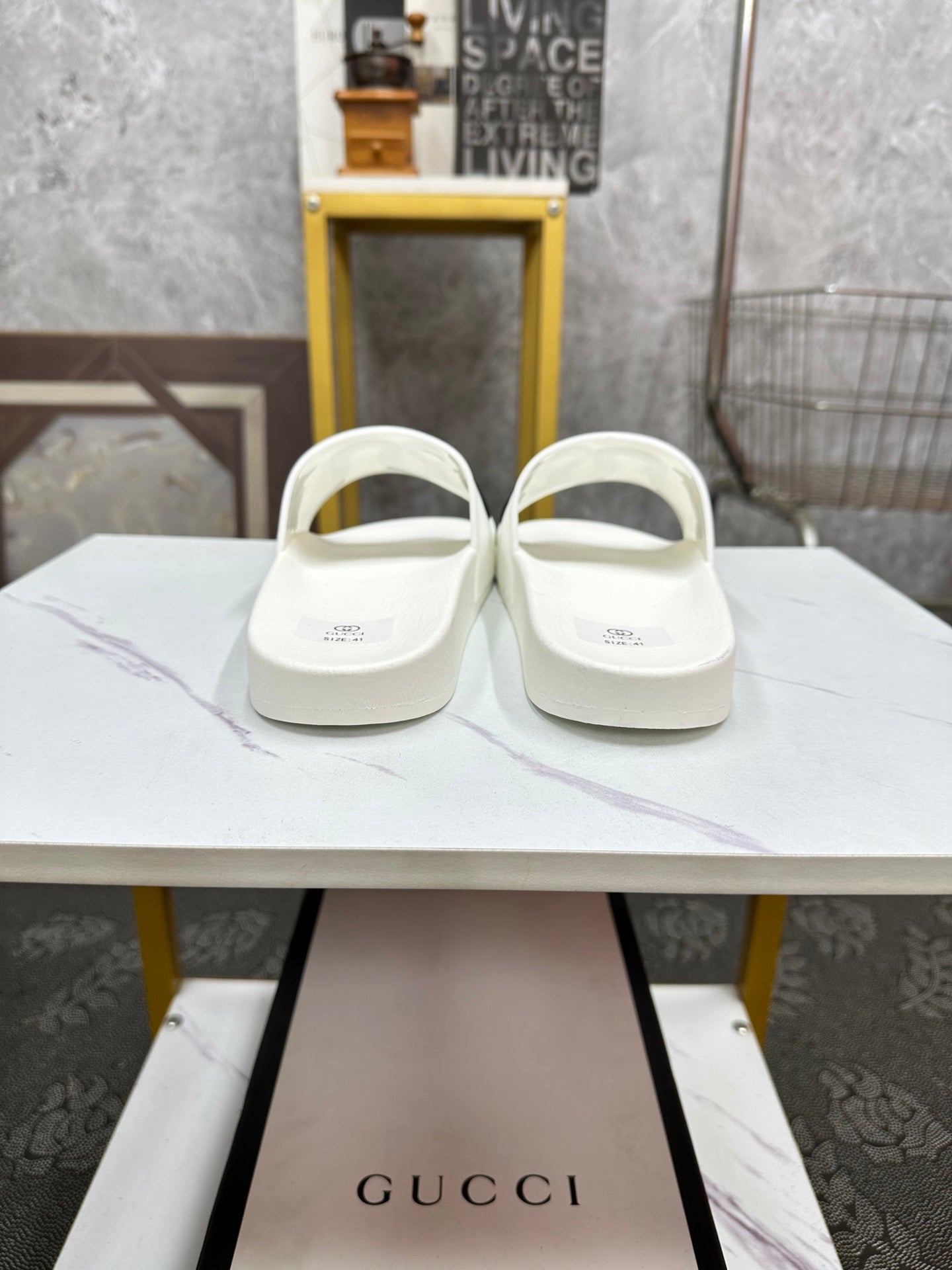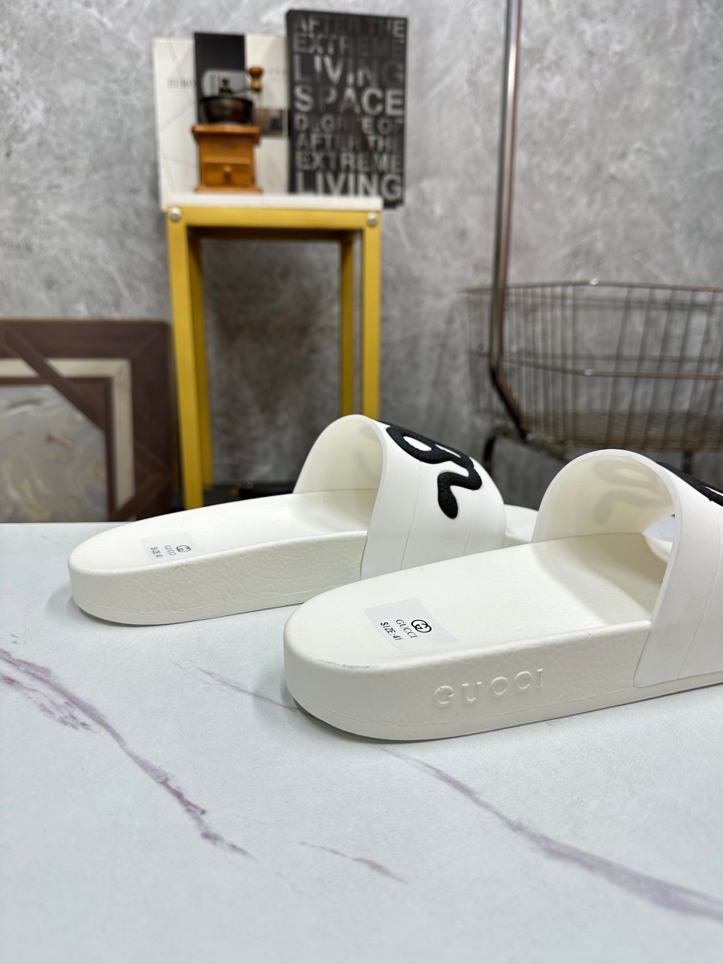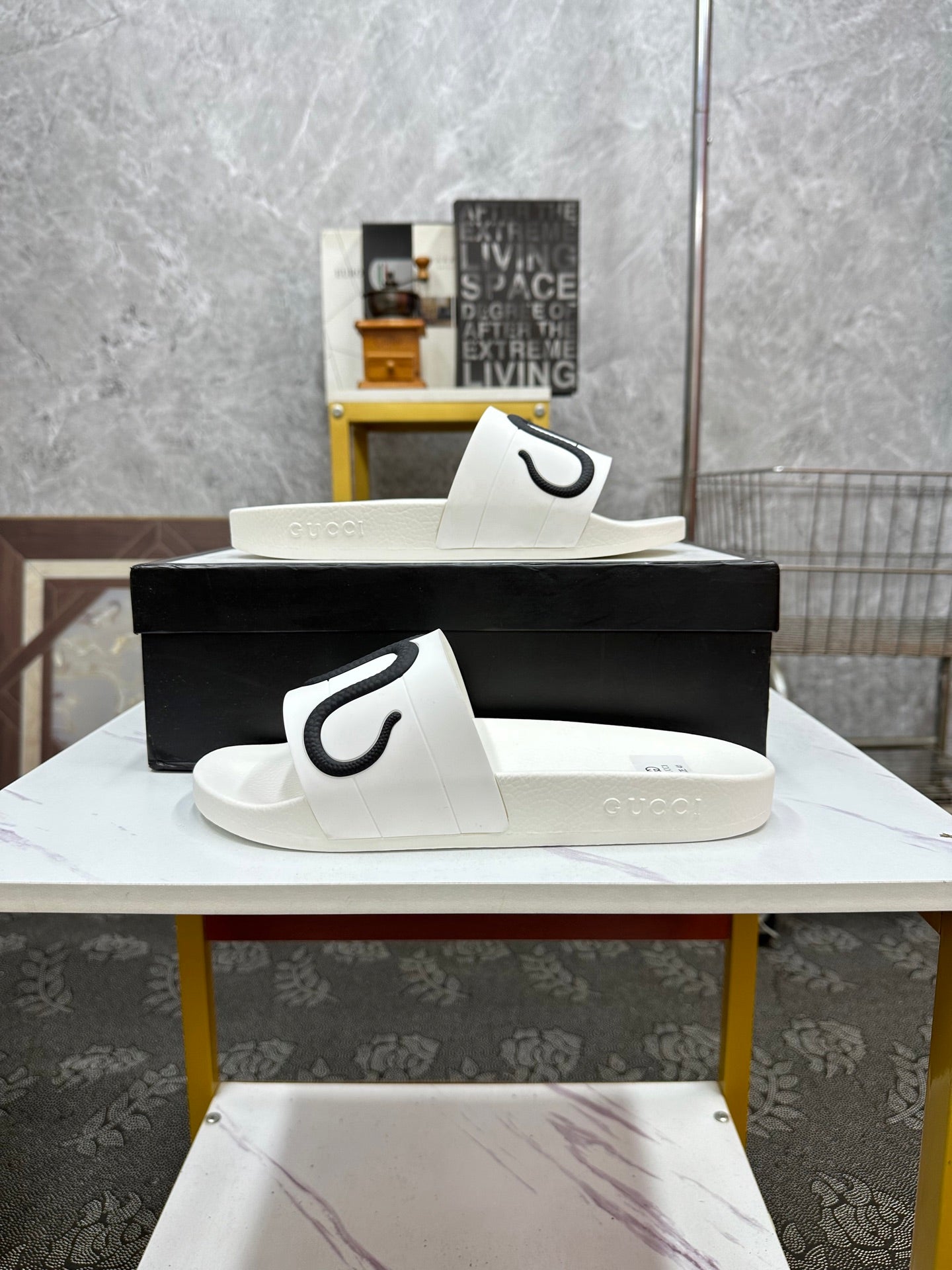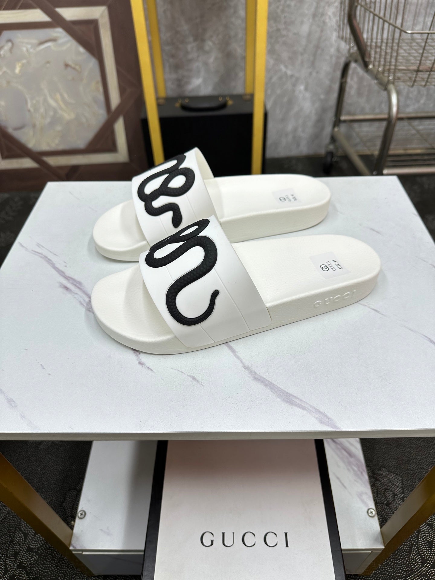 GG Men's Snake Embossed Slide White Black Rubber 540109