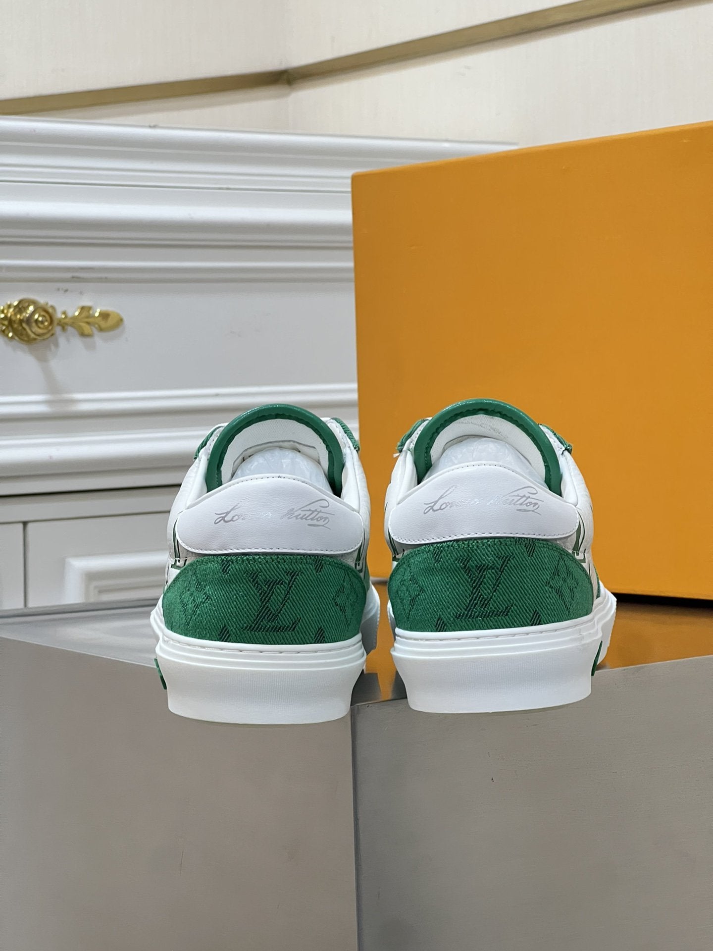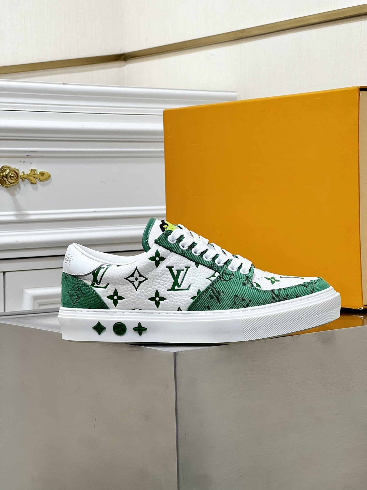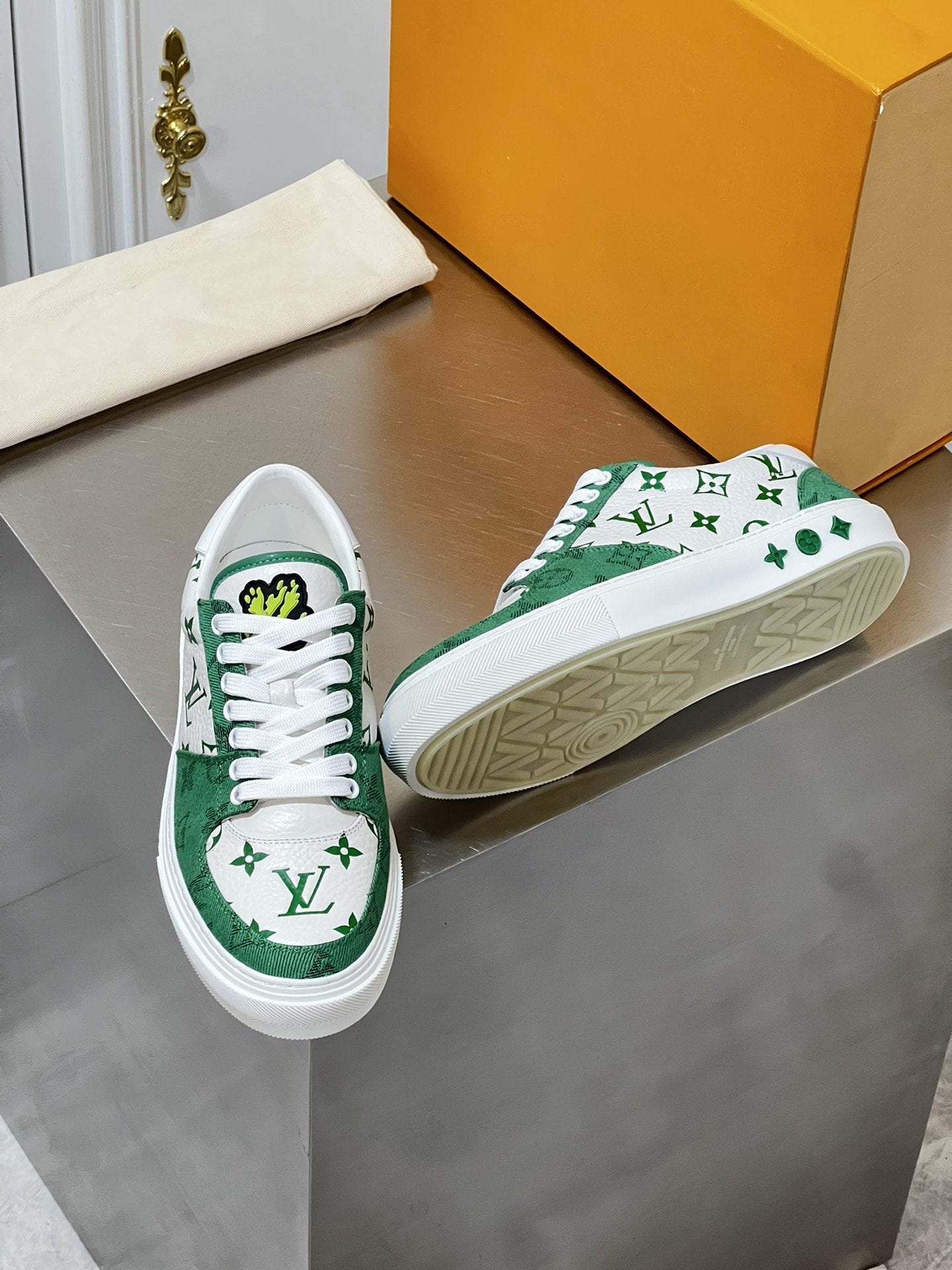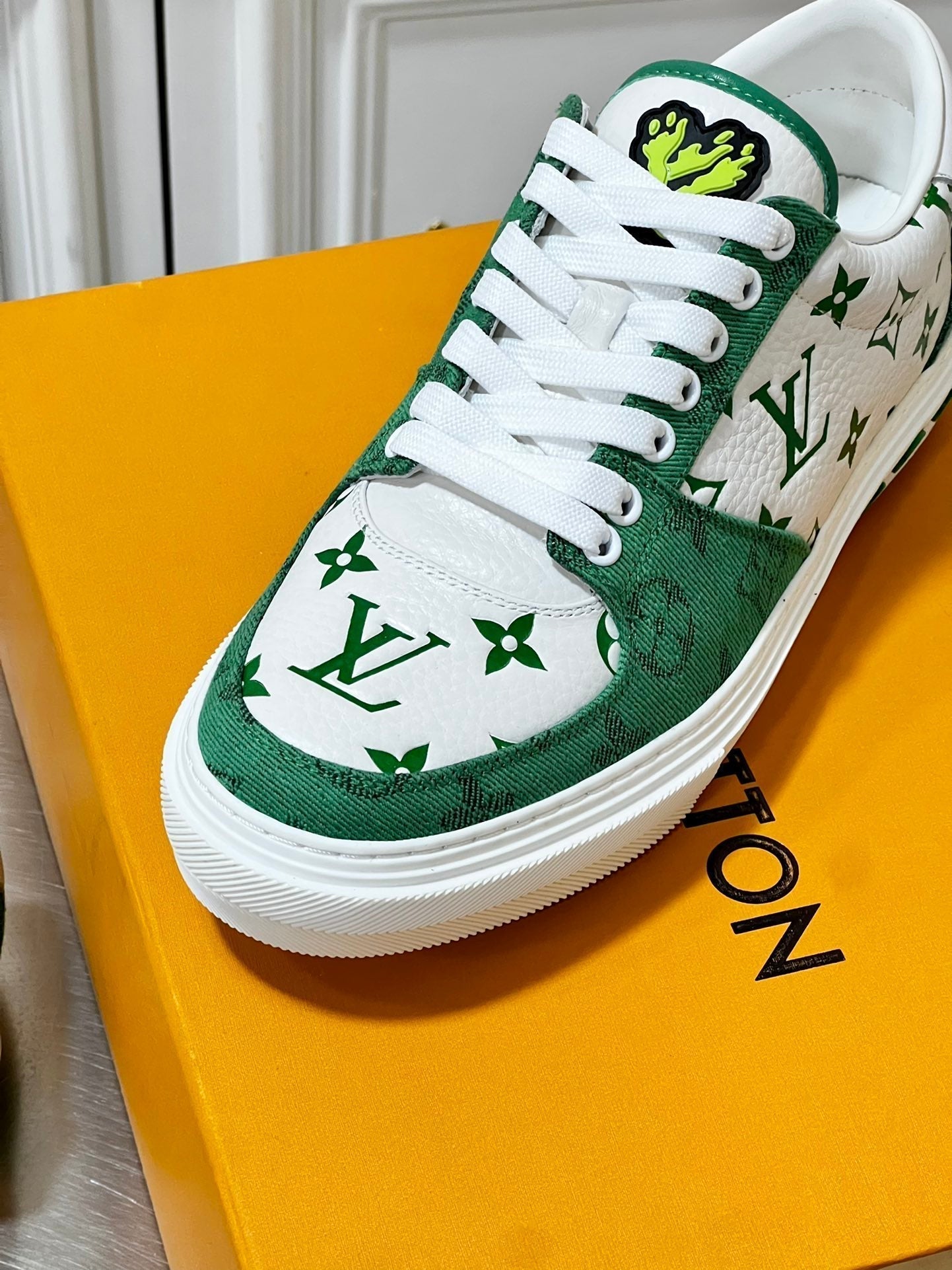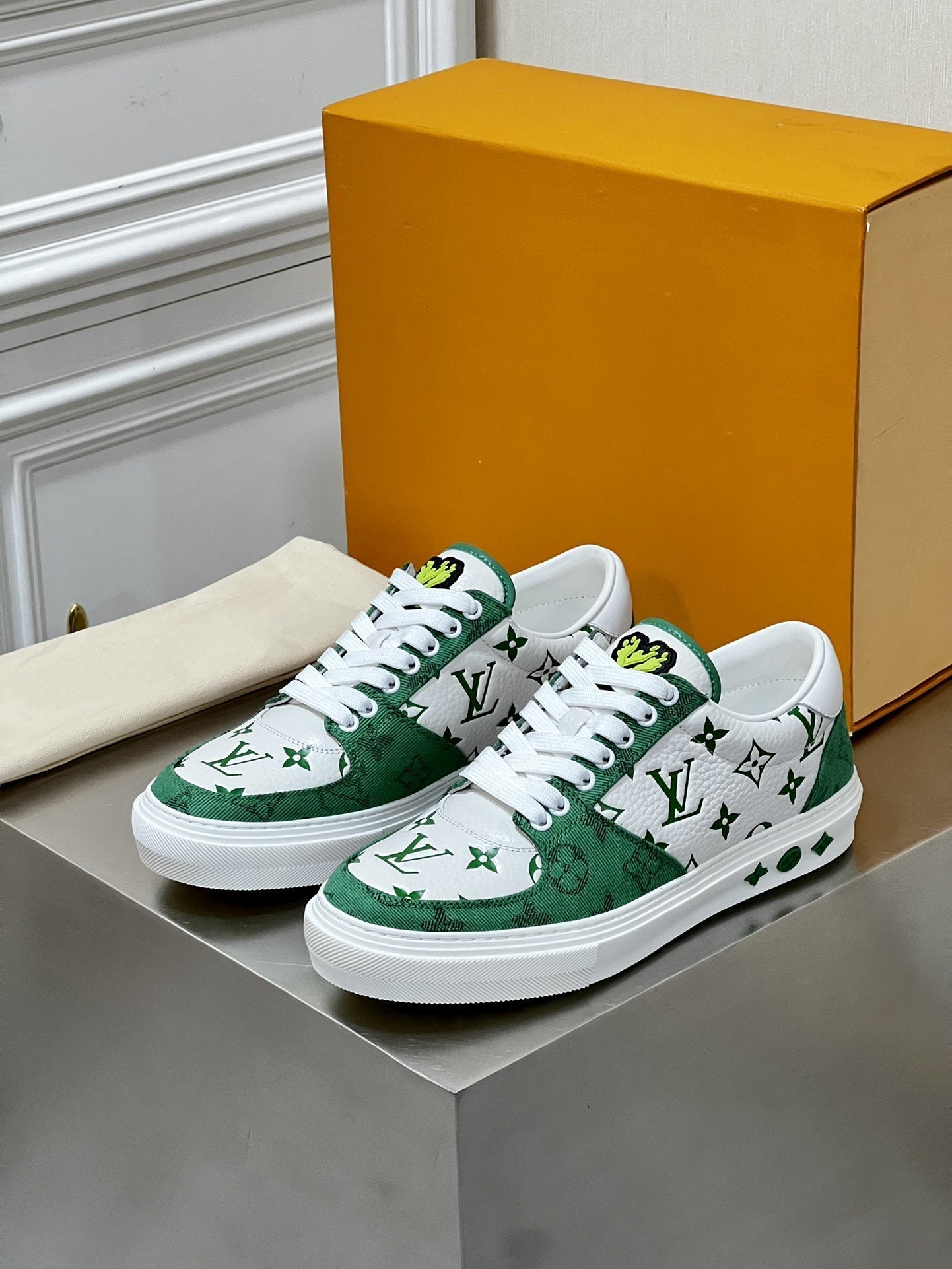 LV MONOGRAM GREEN AND WHITE SNEAKERS