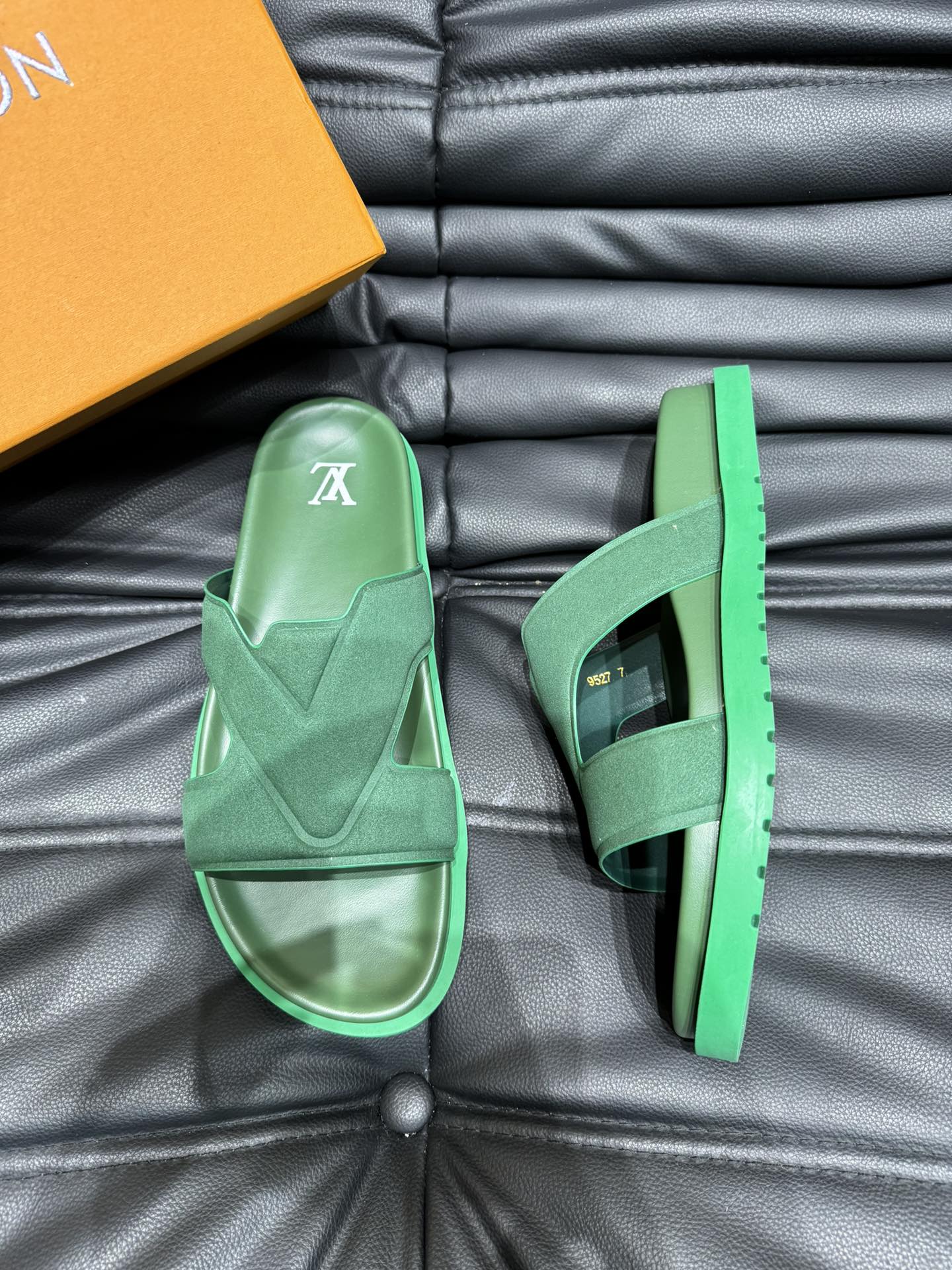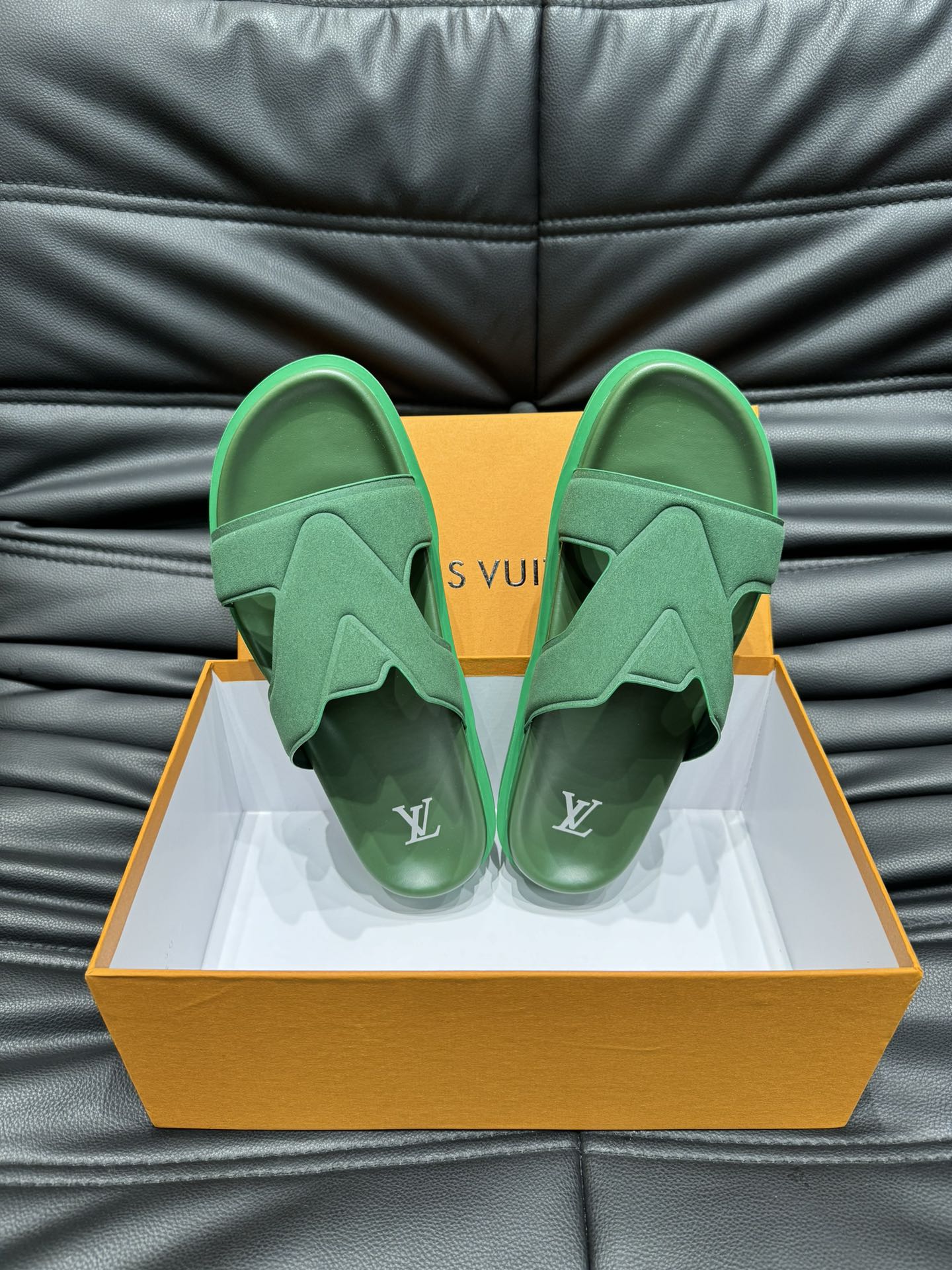 LV OASIS MULE IN DARK GREEN SUEDE CALFSKIN