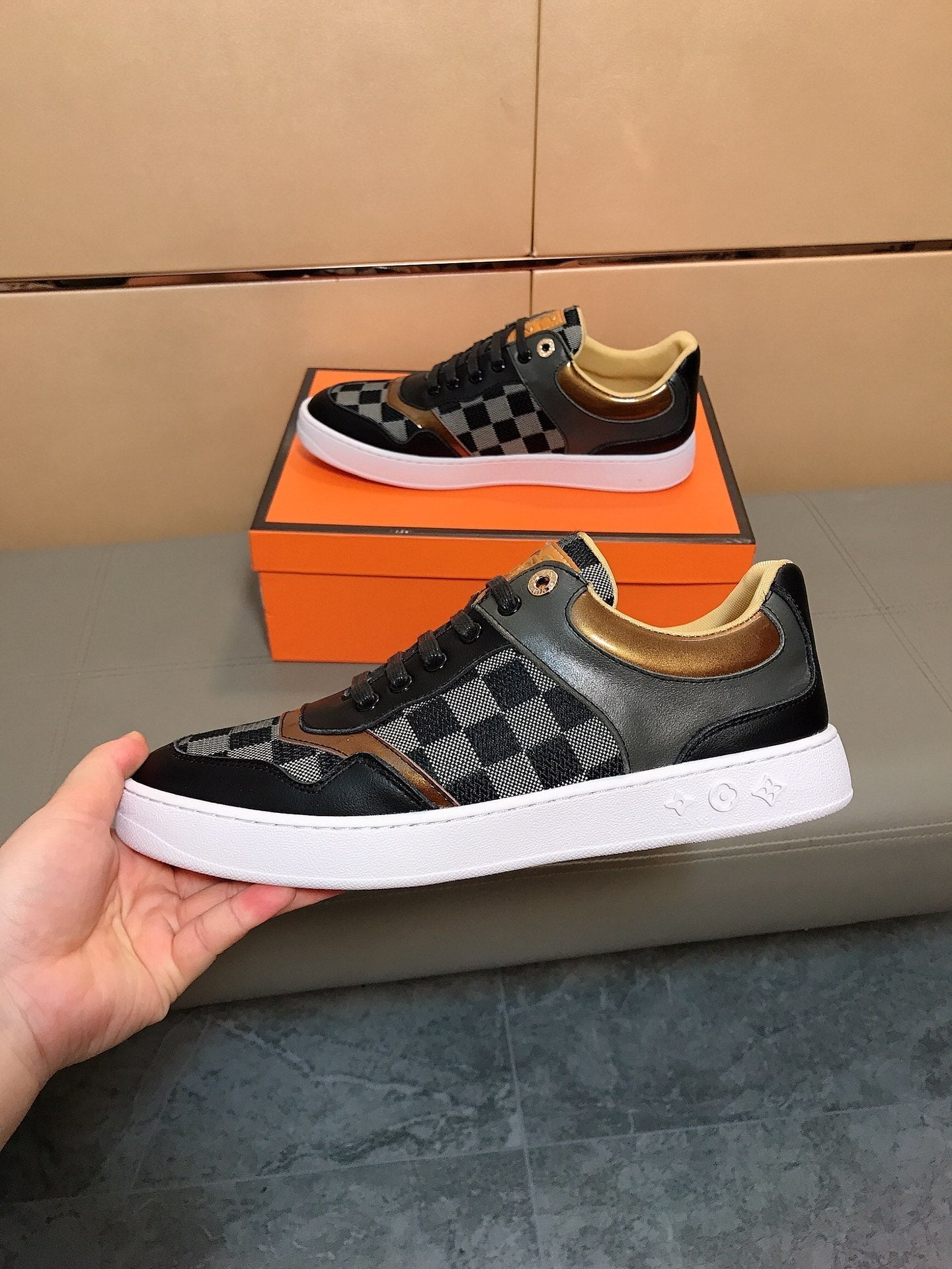 LV TRAINER BLACK CALFSKIN AND DAMIER CANVAS