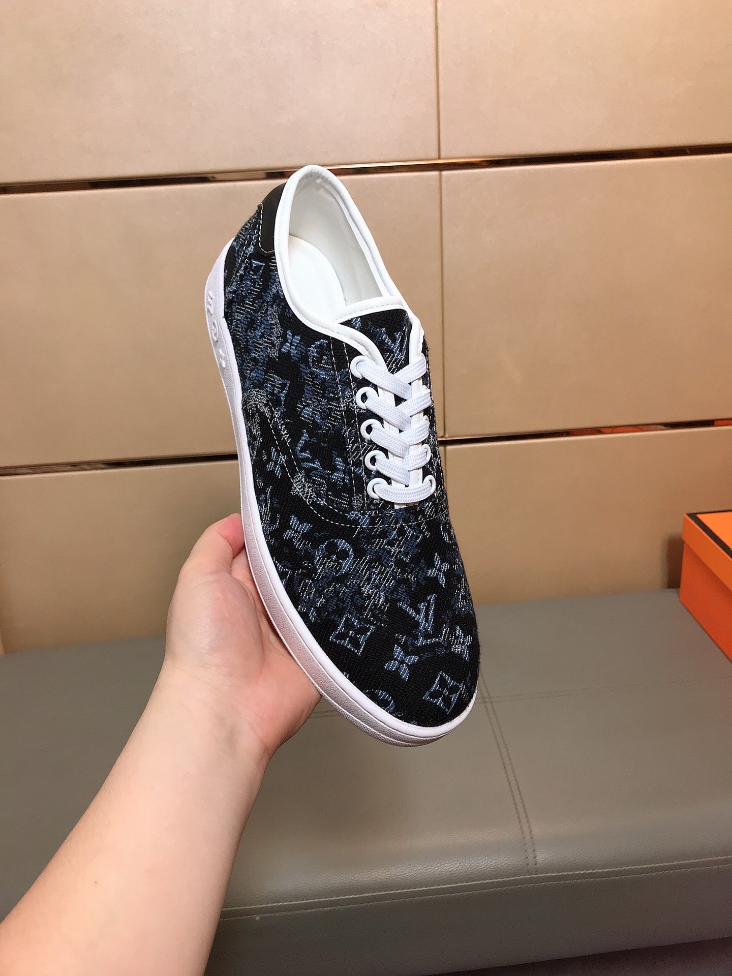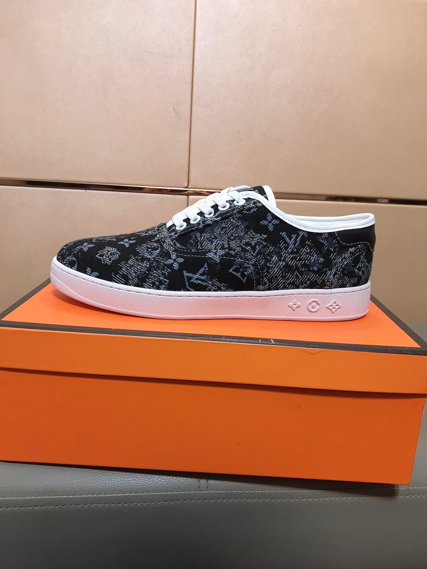 LV TRAINER BLACK MIX BLUE MONOGRAM JACQUARD