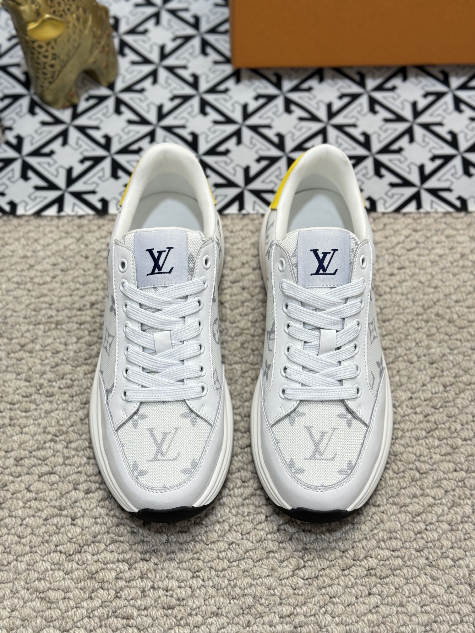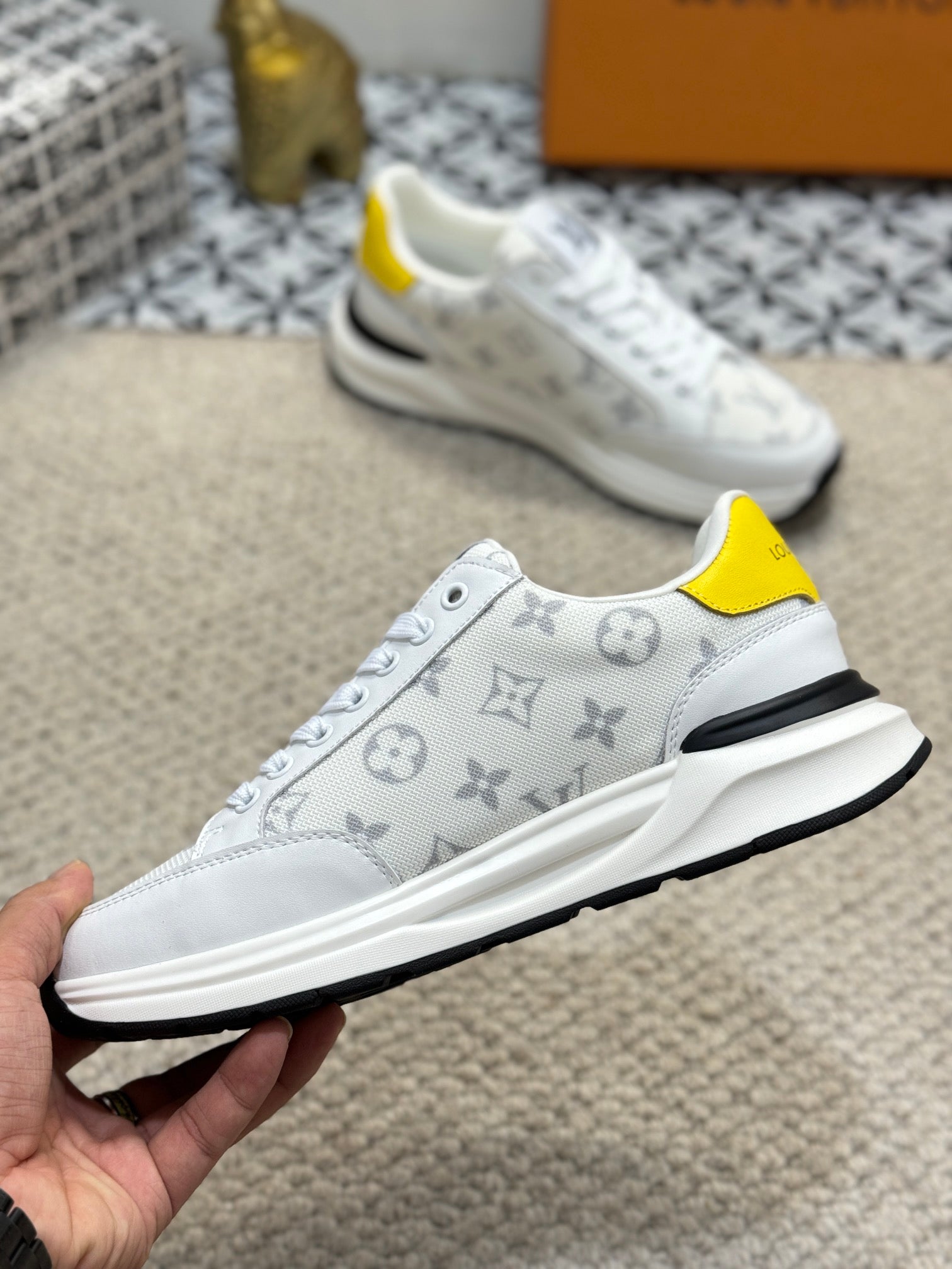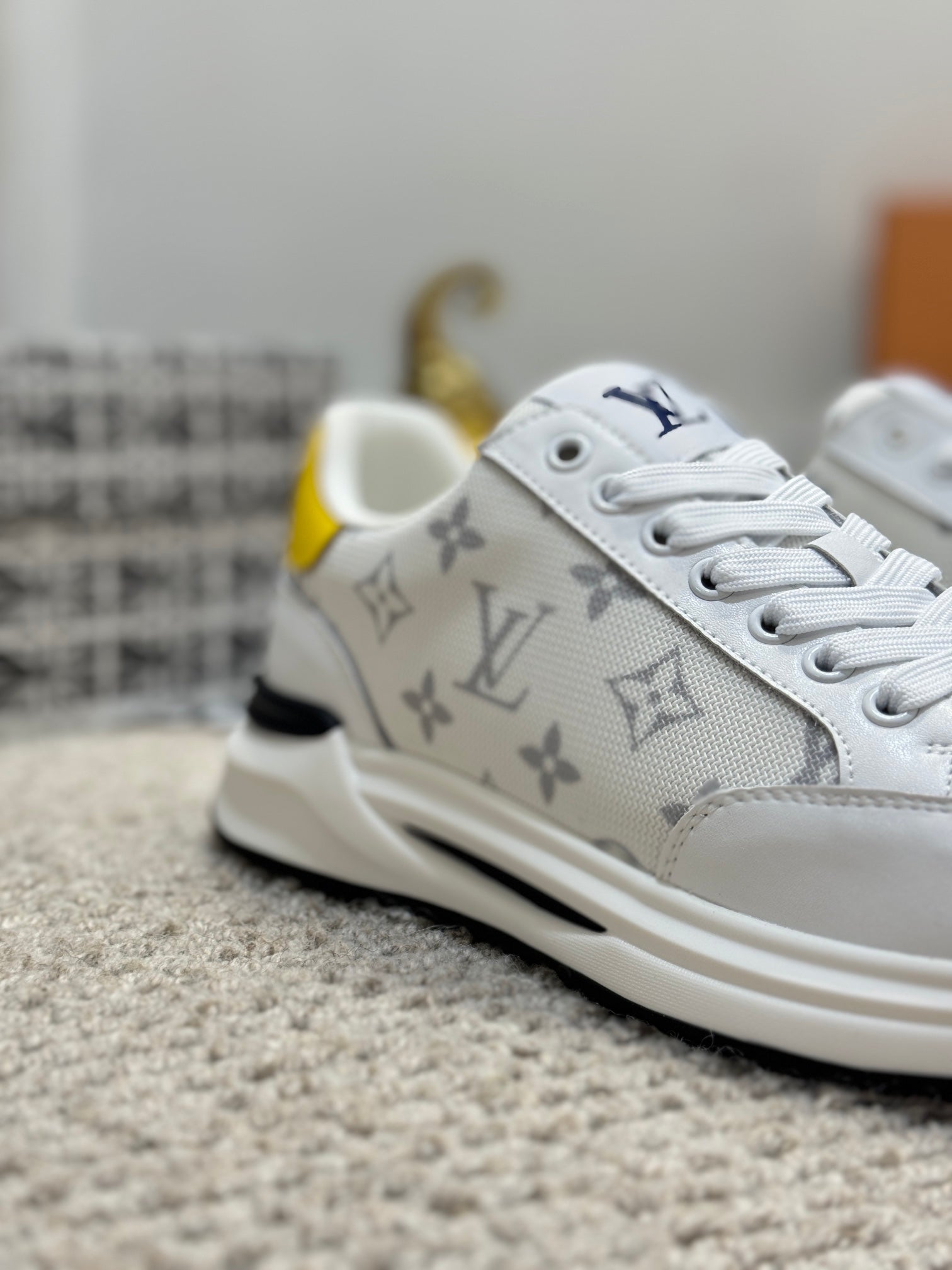 LV TRAINERS IN WHITE CALFSKIN AND JACQUARD