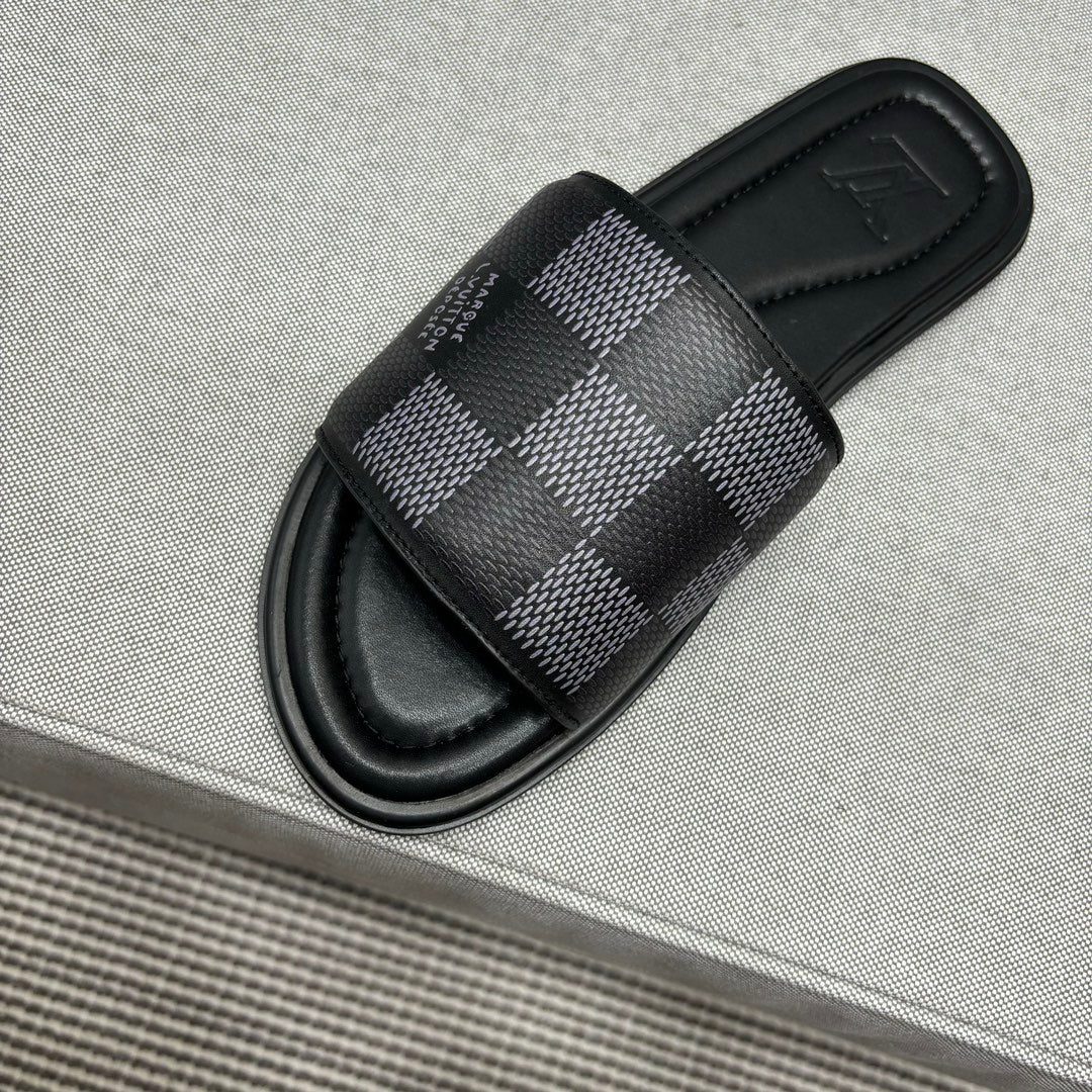 • Premium LV men's slippers, synchronizing with the 2024 early autumn runway collection. The slippers feature a high-quality fabric upper and an original, exclusive comfort sole, ensuring exceptional comfort. These are original factory-followed products.