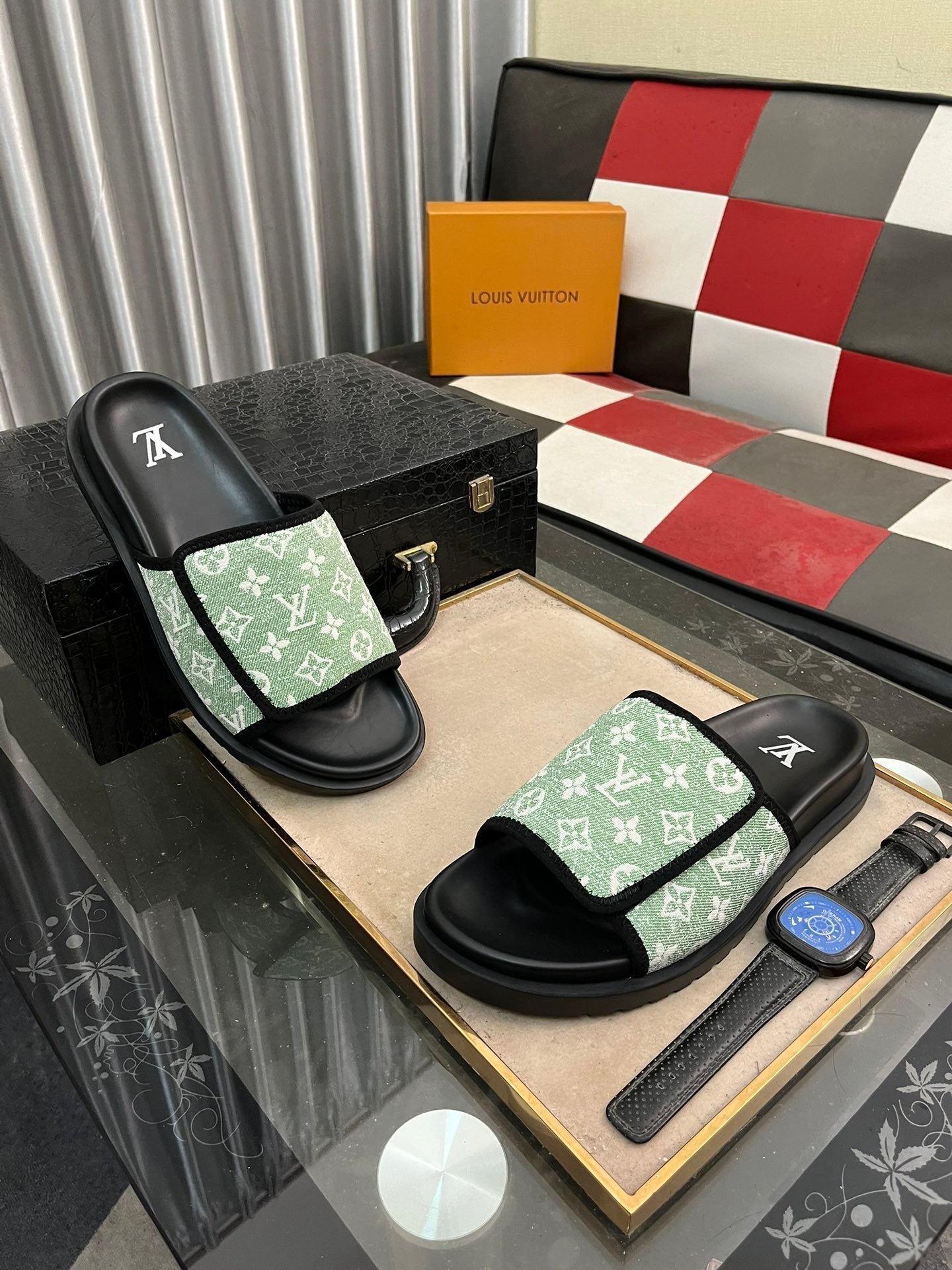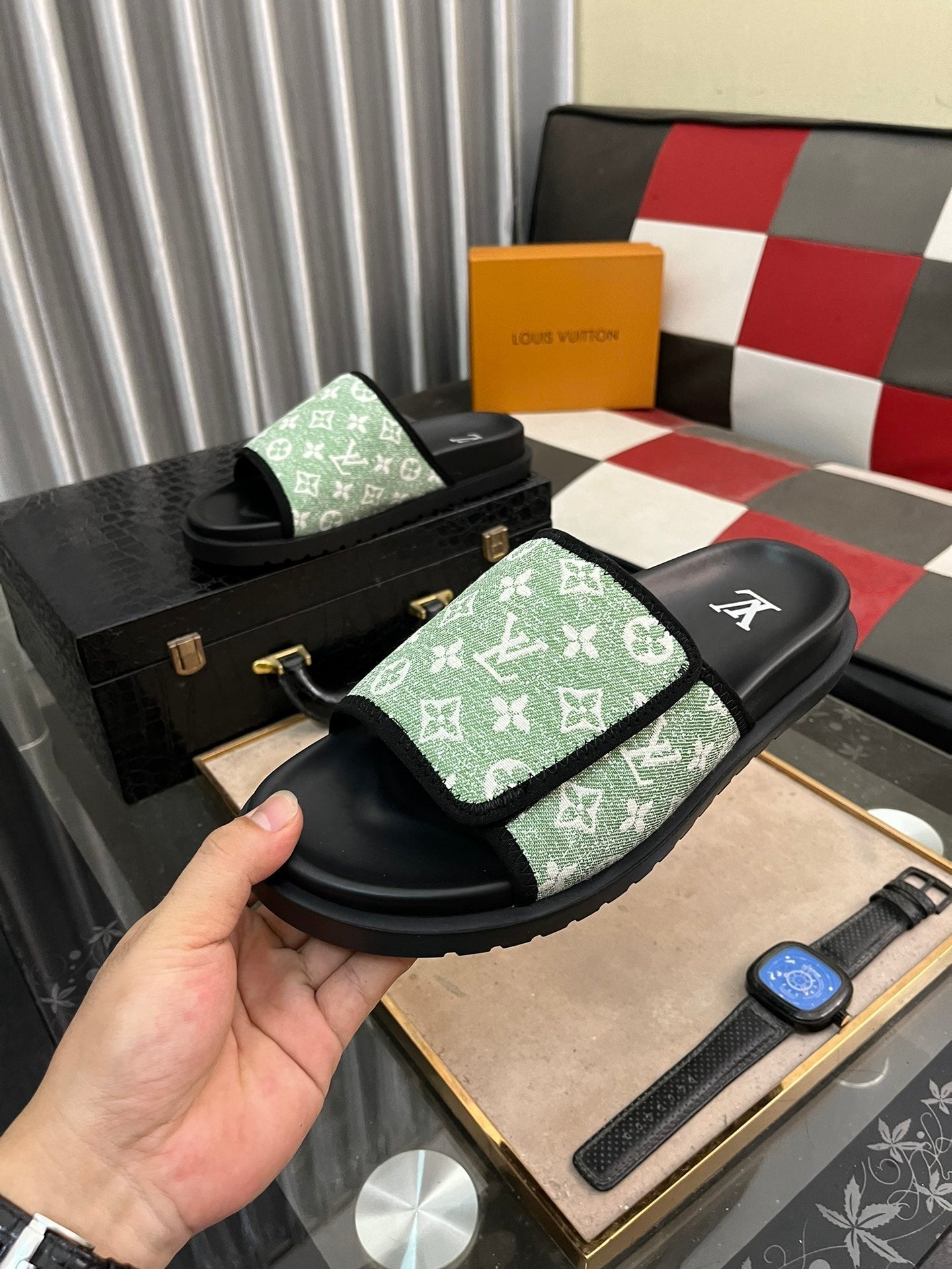 MIAMI MULE IN LIGHT GREEN MONOGRAM JACQUARD