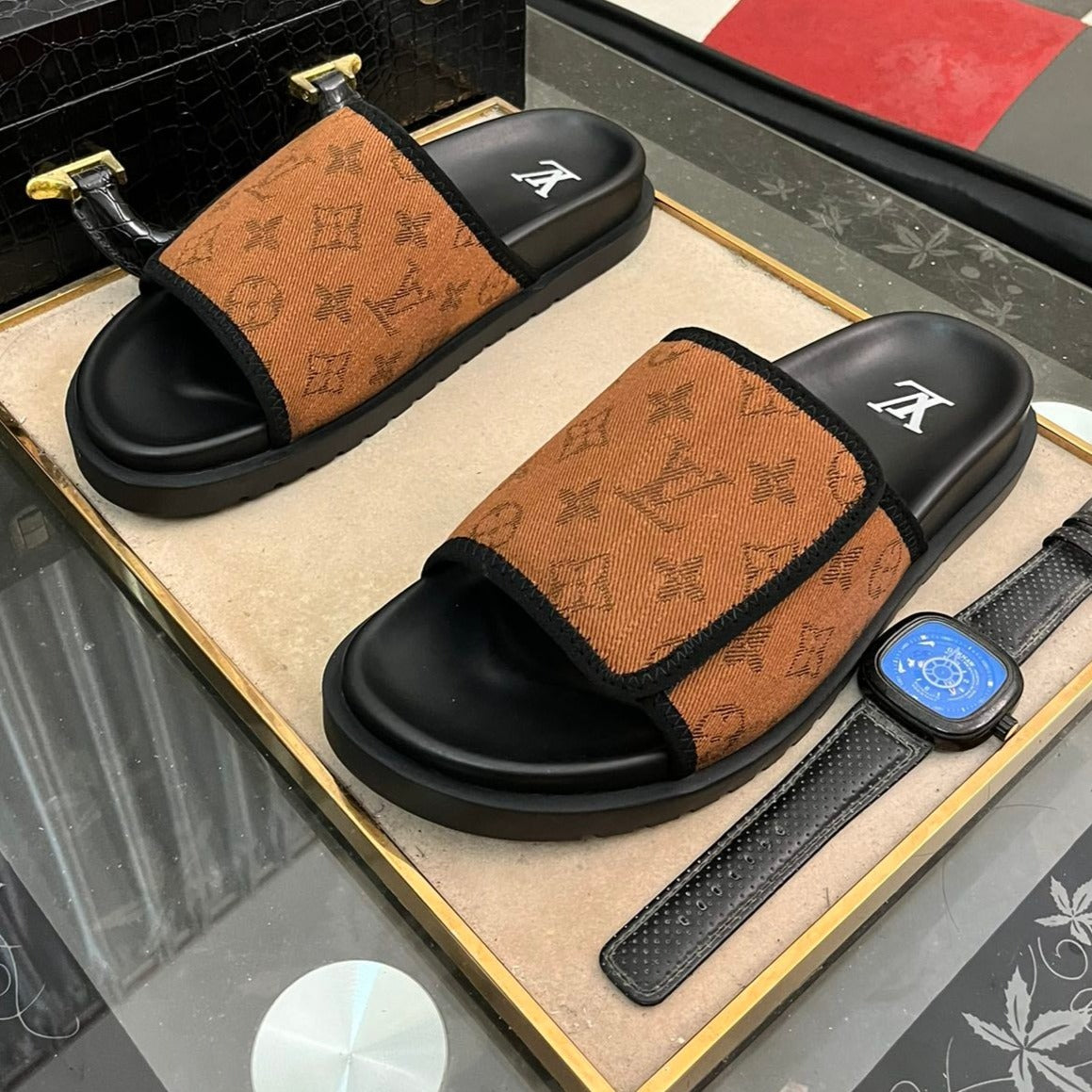 MIAMI MULE IN RUSSET BROWN MONOGRAM JACQUARD