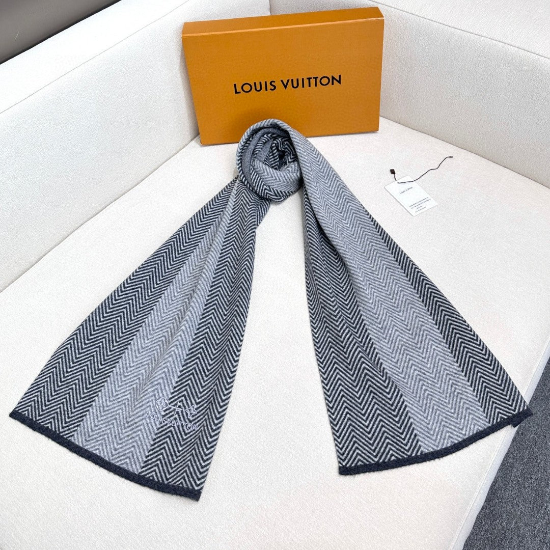 LV Scarf 180cm Gray Knitted Cashmere 838208