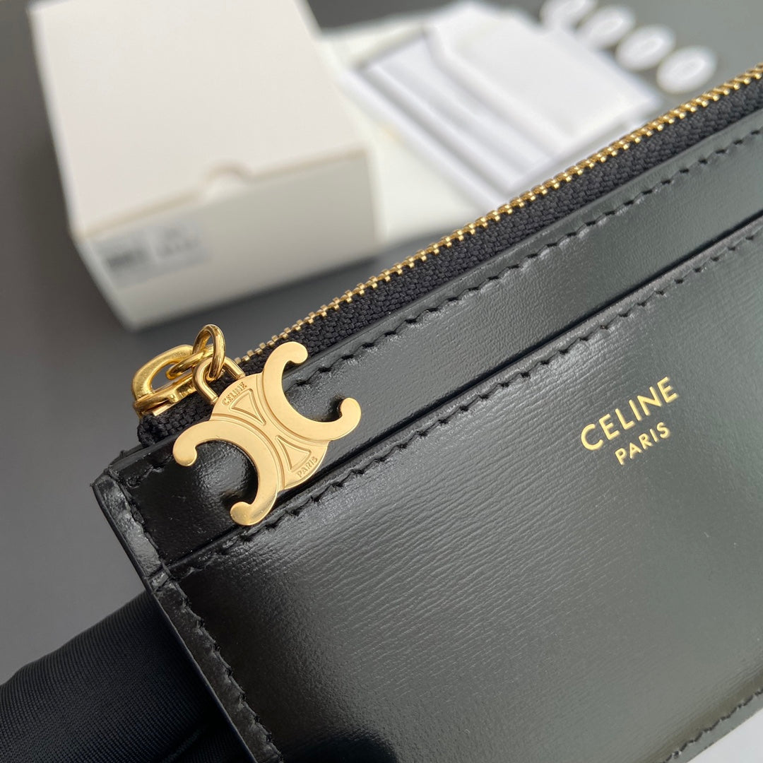 TRIOMPHE Zipped Card Holder Charms Black Leather