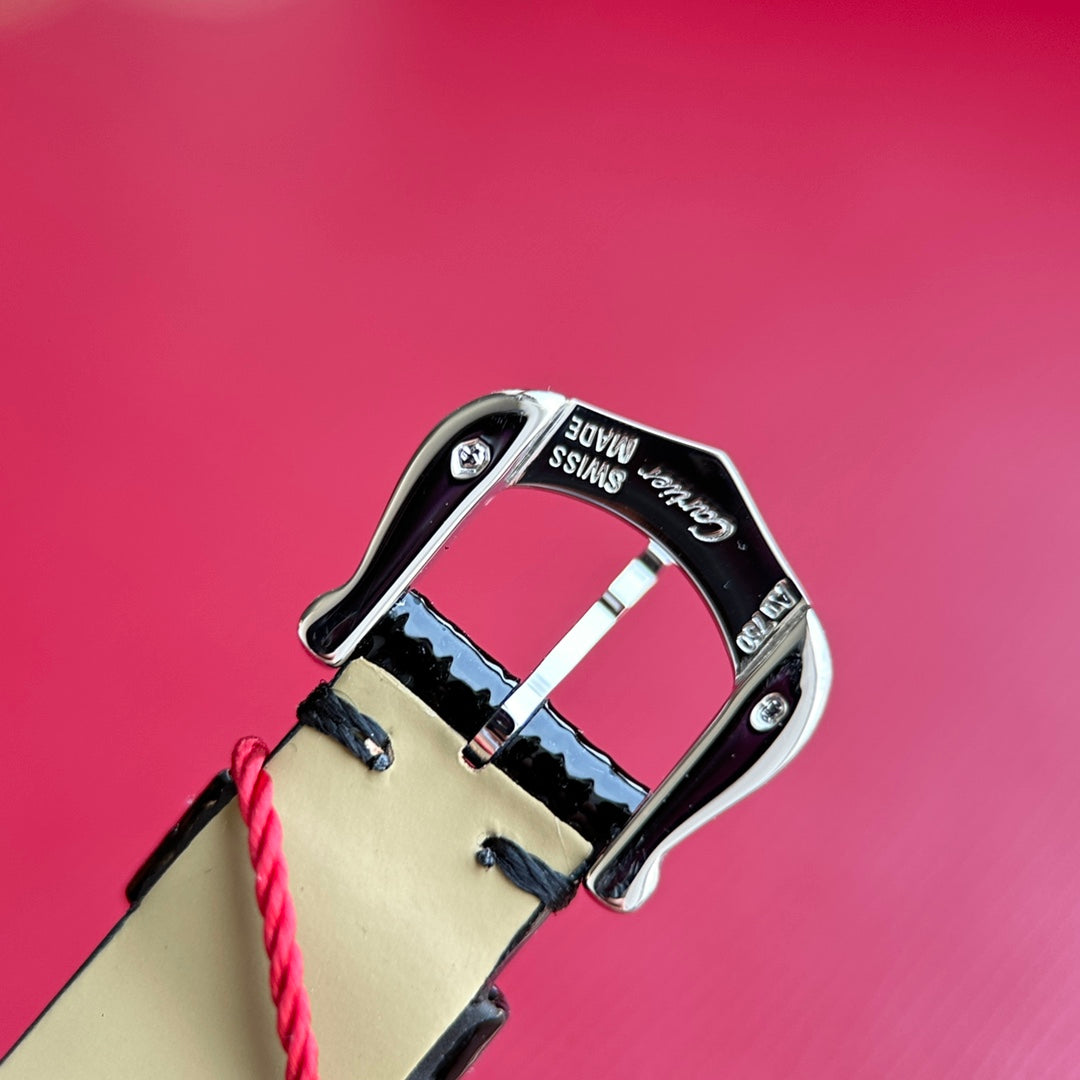 Baignoire 23mm Silver Case Diamond Bezel Black Leather Strap