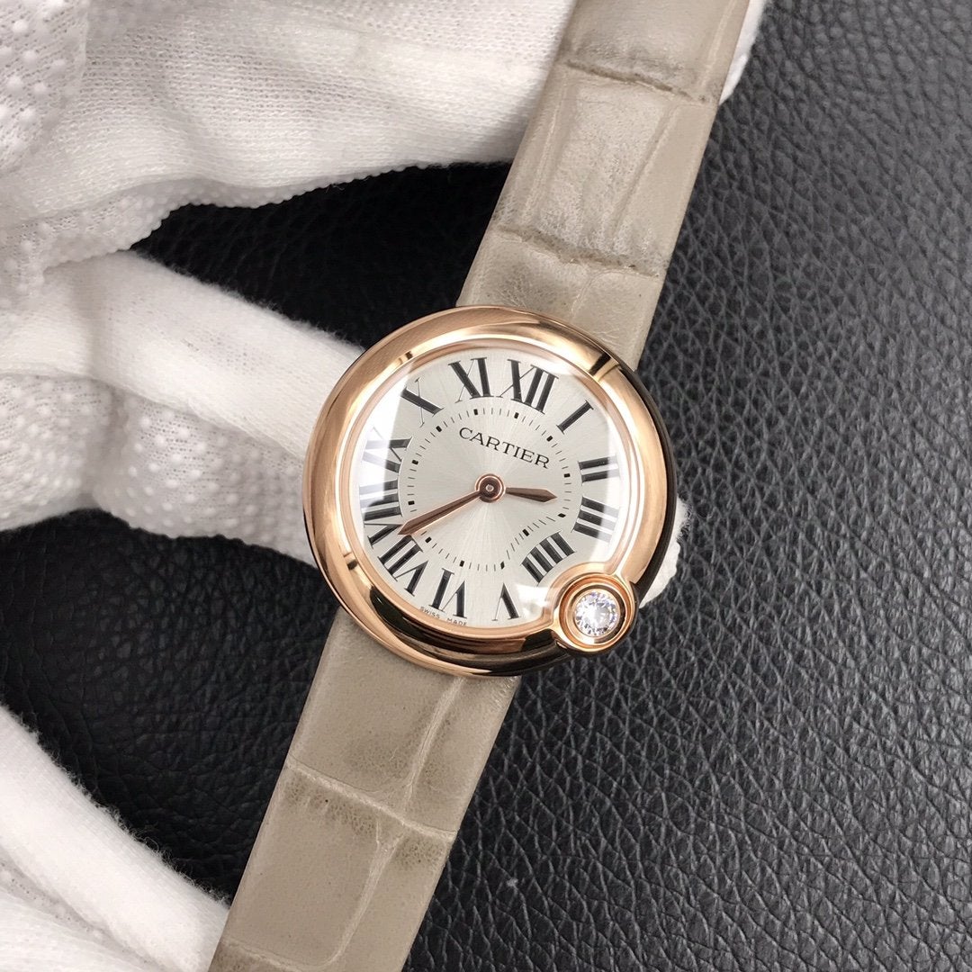 BALLON BLANC DE CARTIER ROSE GOLD CASE GREY LEATHER