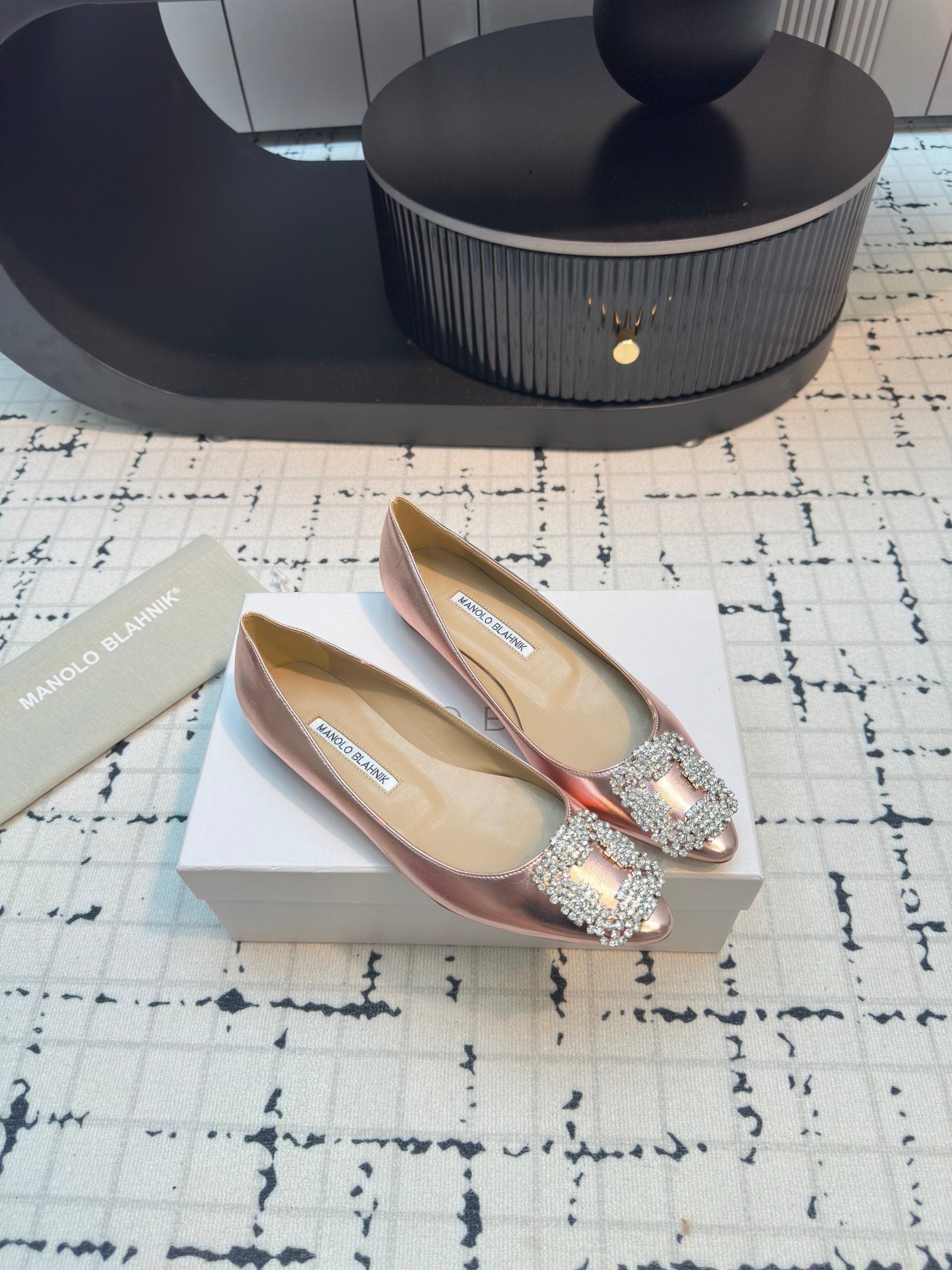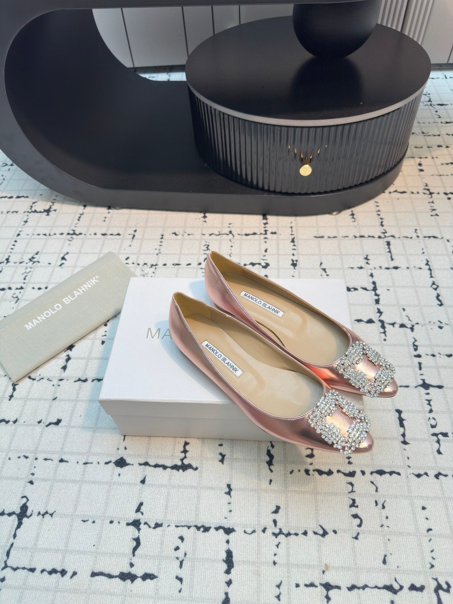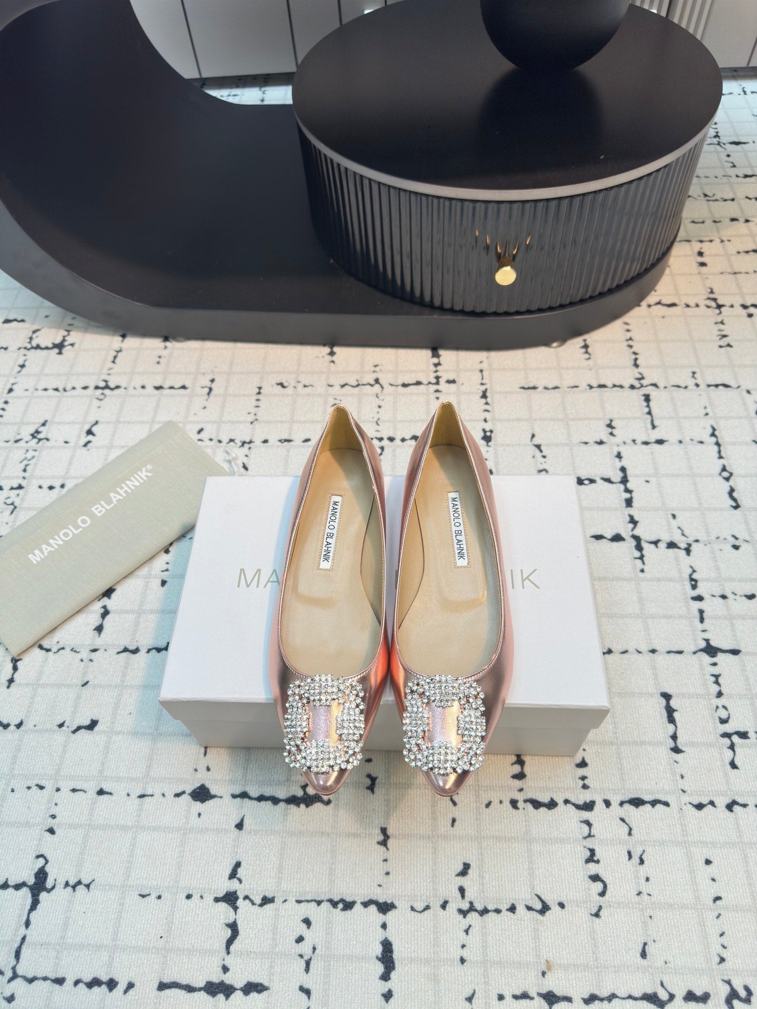 Hangisi 10mm Ballet Flat Rose Gold Metallic Leather Jewel Buckle 912617