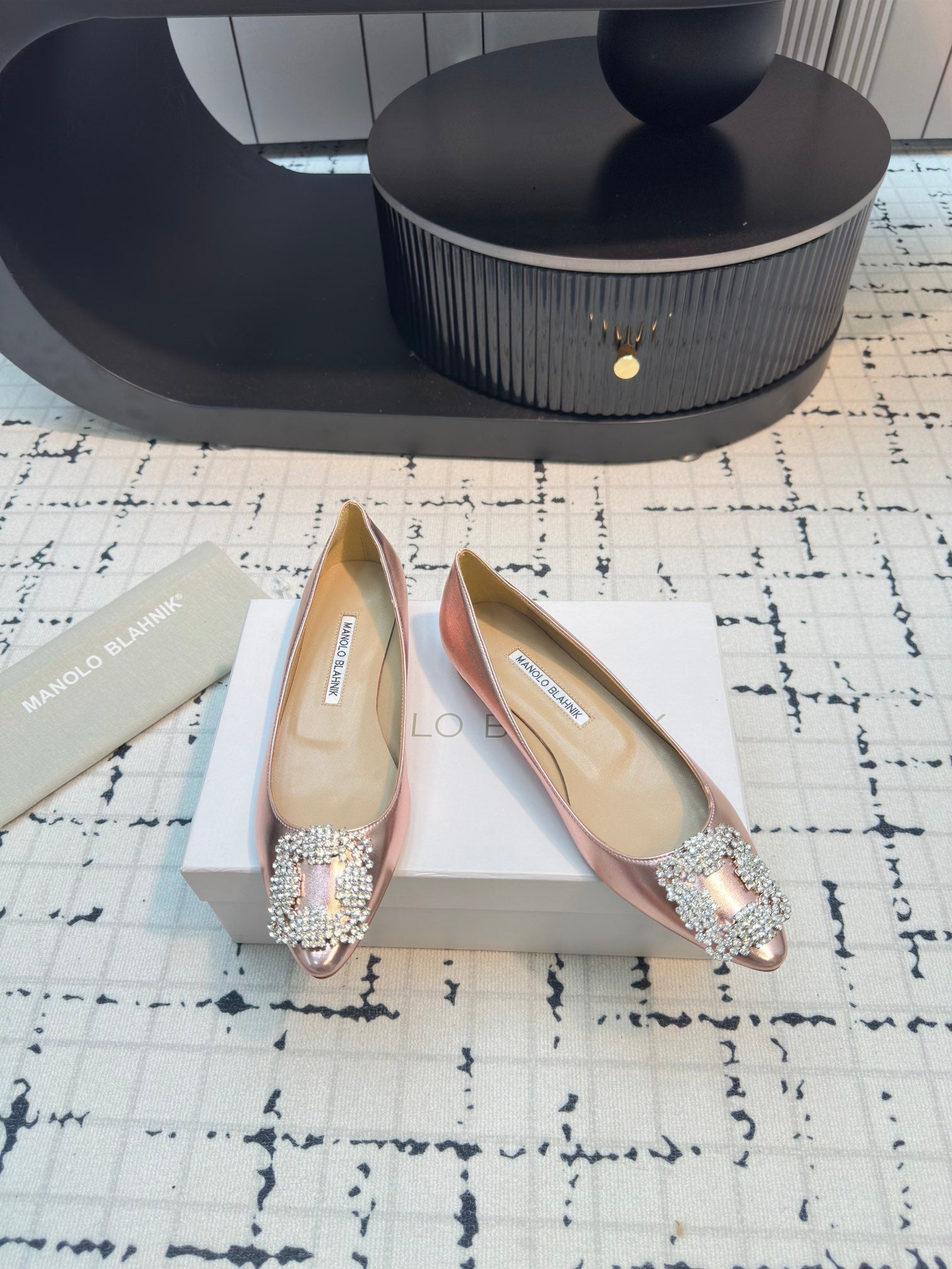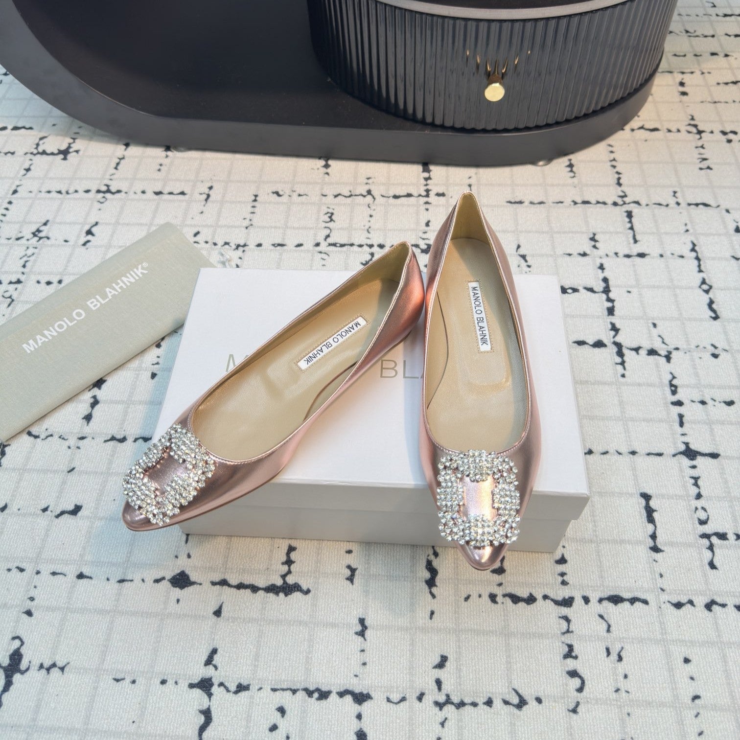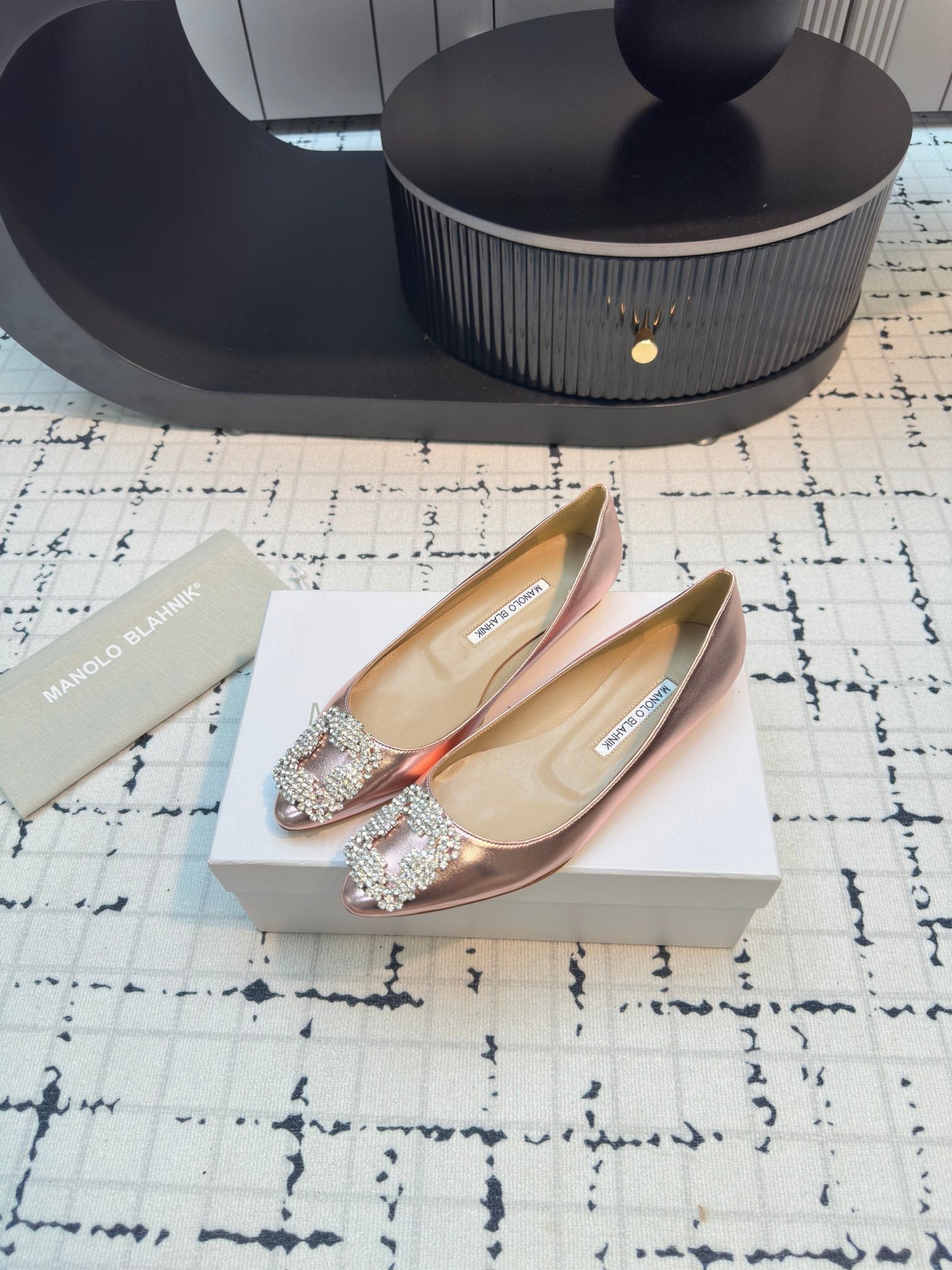 Hangisi 10mm Ballet Flat Rose Gold Metallic Leather Jewel Buckle 912617