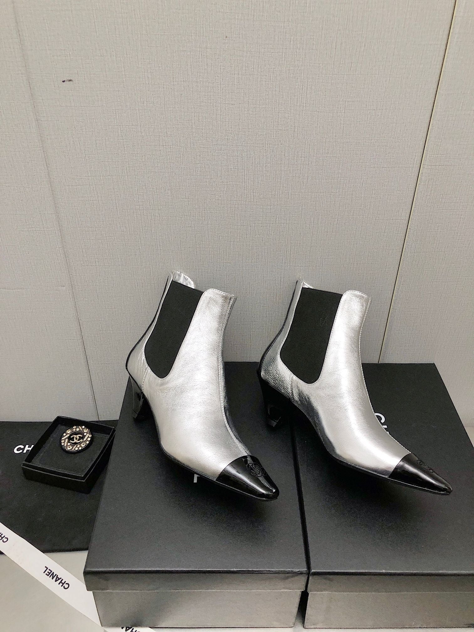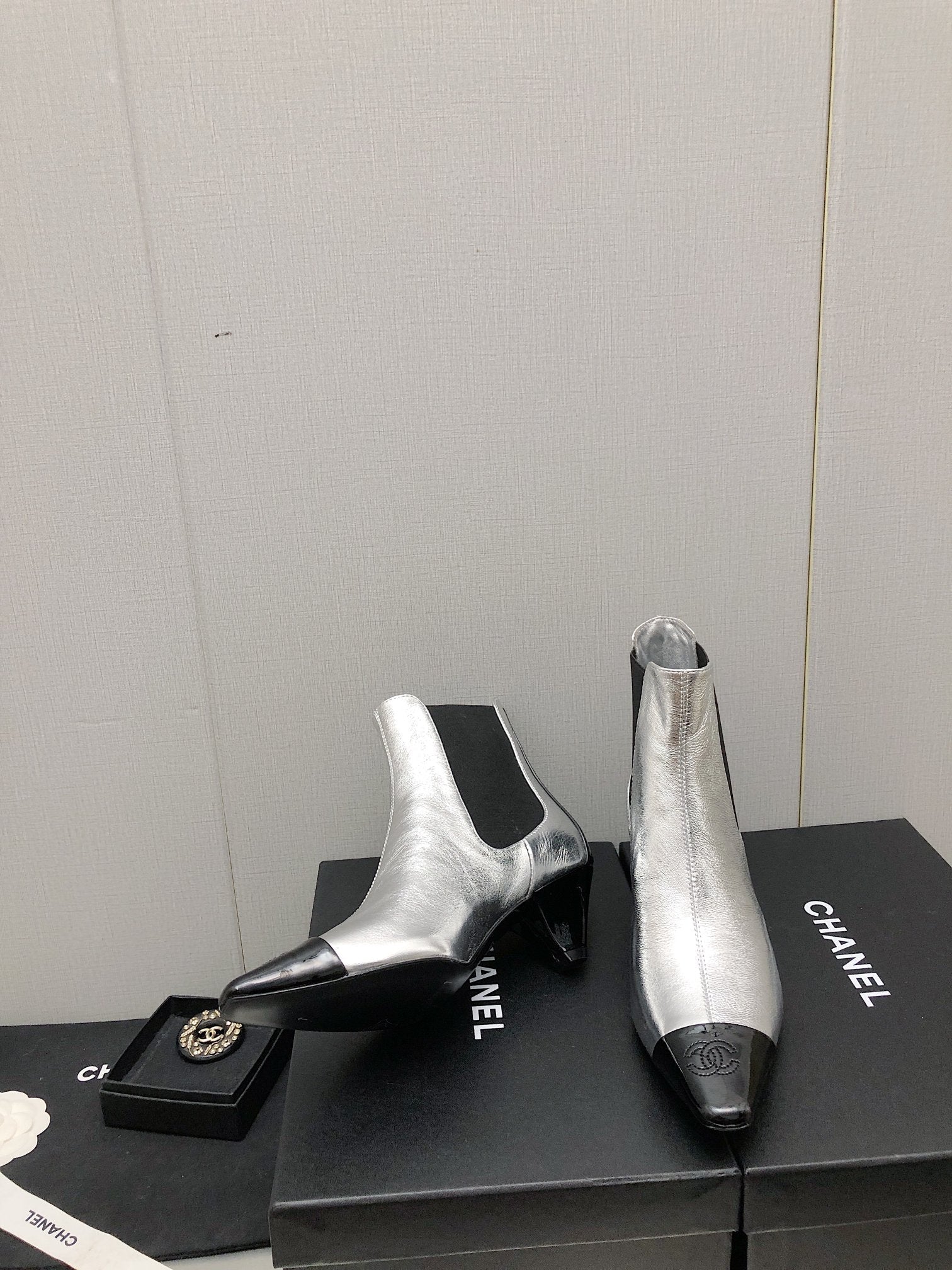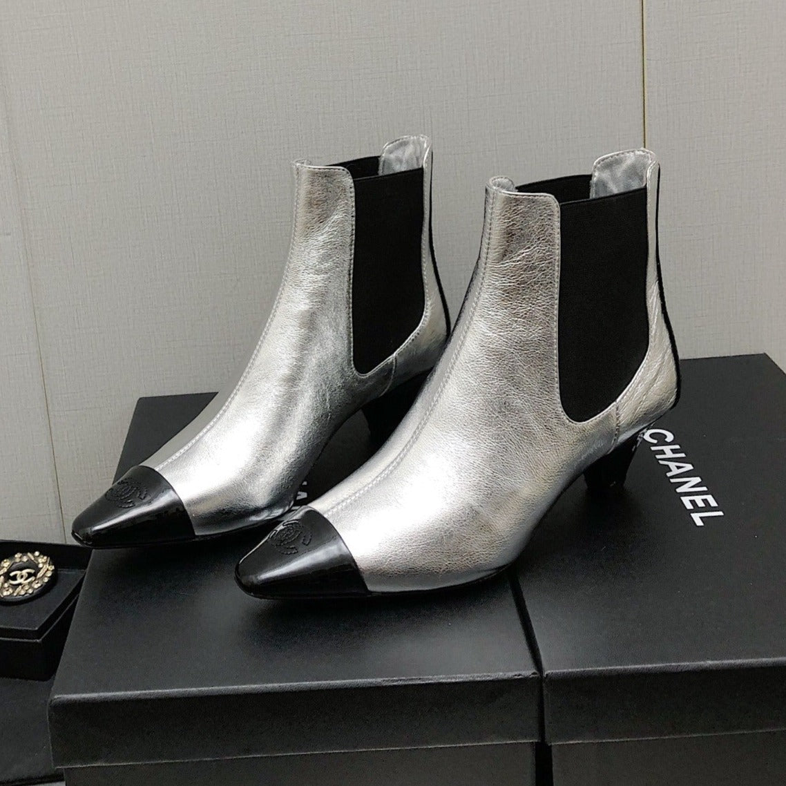 SHORT BOOTS IN SILVER MIX BLACK SHEEPSKIN