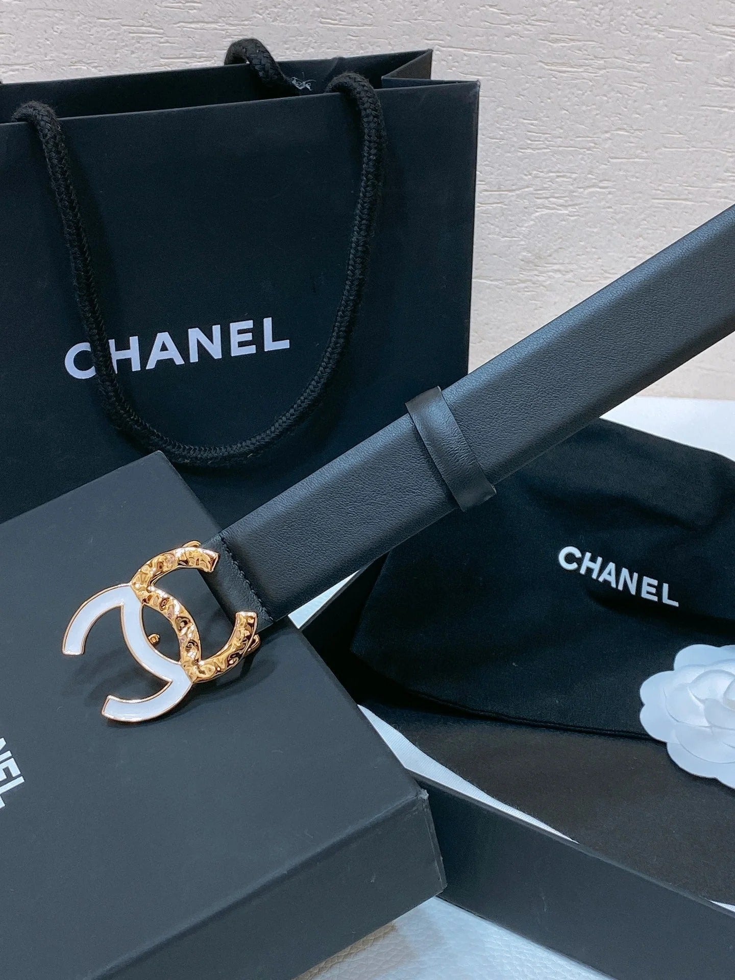 CC BELT 30MM IN BLACK SMOOTH CALFSKIN GOLD MIX WHITE METAL LOGO