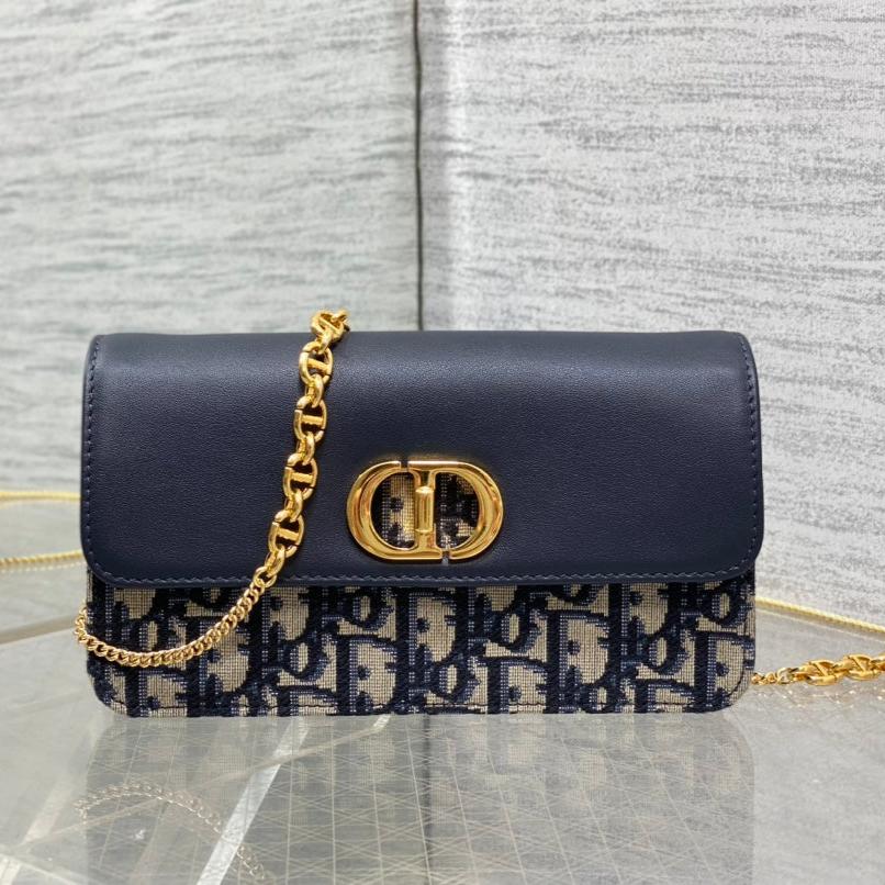 MONTAIGNE AVENUE MINI 19 BAG IN NAVY BLUE CALFSKIN AND MONOGRAM OBLIQUE JACQUARD