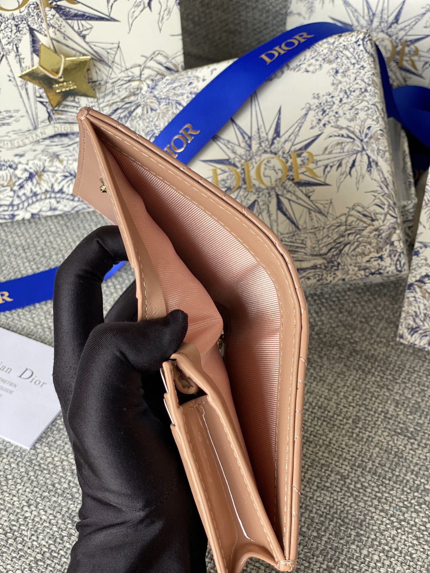 CD Caro 11cm Compact Wallet Shiny Dark Beige Calfskin