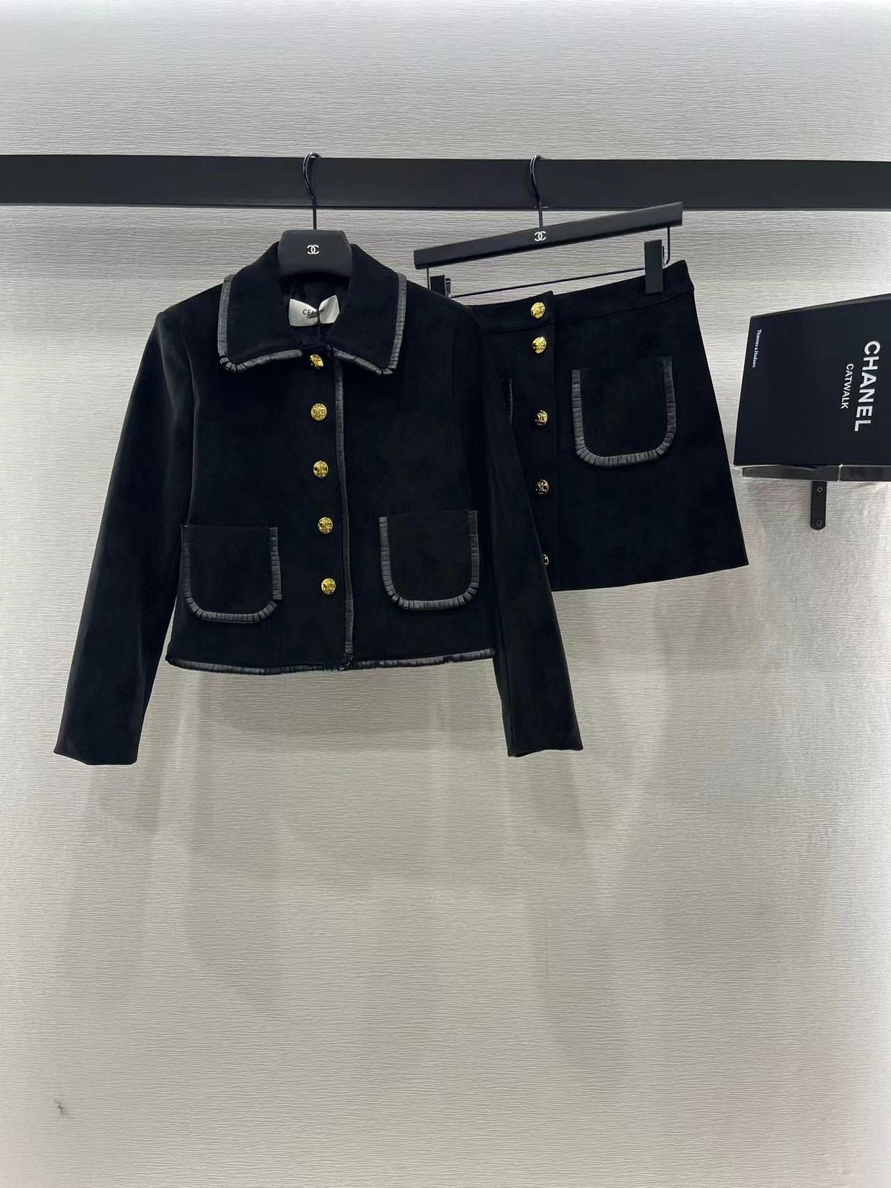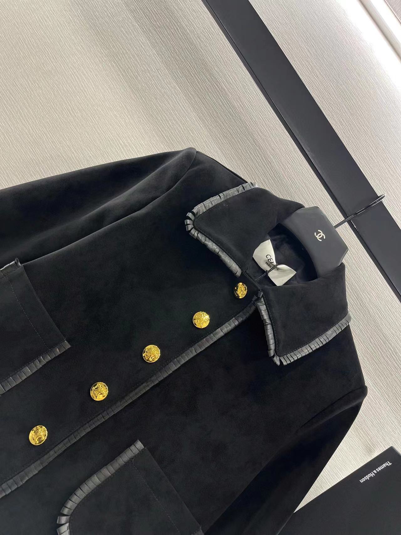 Celine Straight Blouson Jacket and Skirt in Black Suede