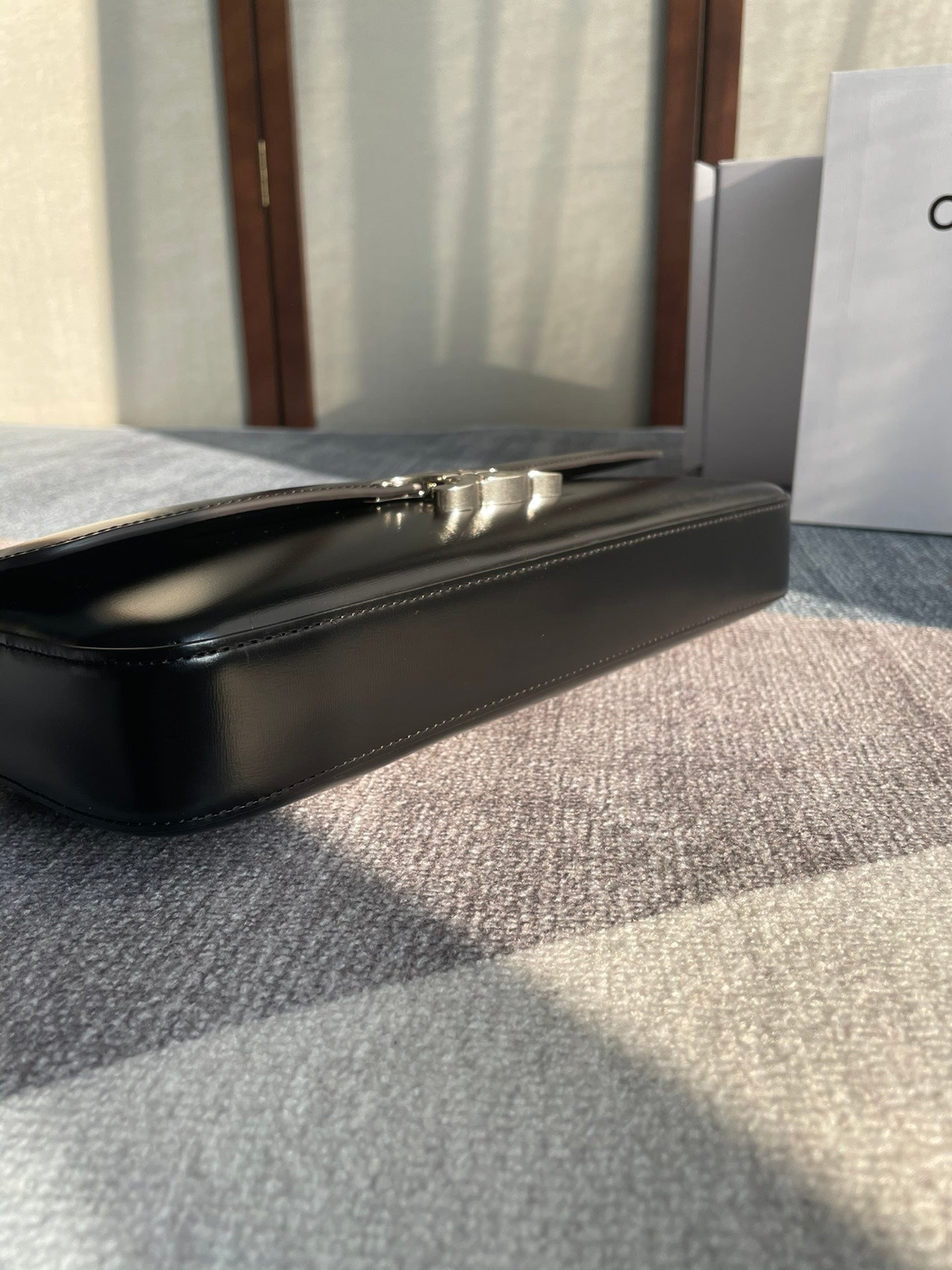 CHAIN SHOULDER BAG CLAUDE 33 IN BLACK CALFSKIN SILVER HARDWARE
