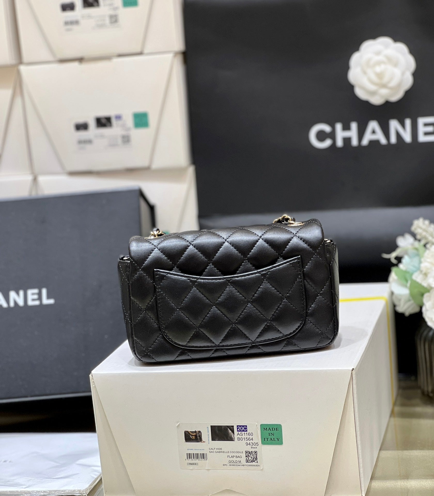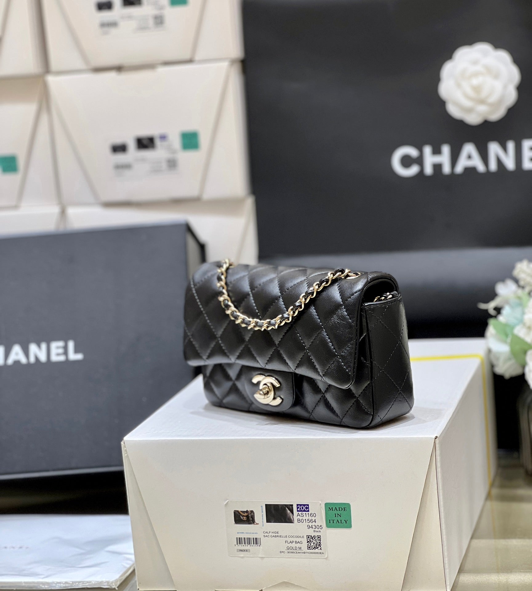 CC 24K Mini Flap Bag 18cm Black Lambskin Silver Hardware