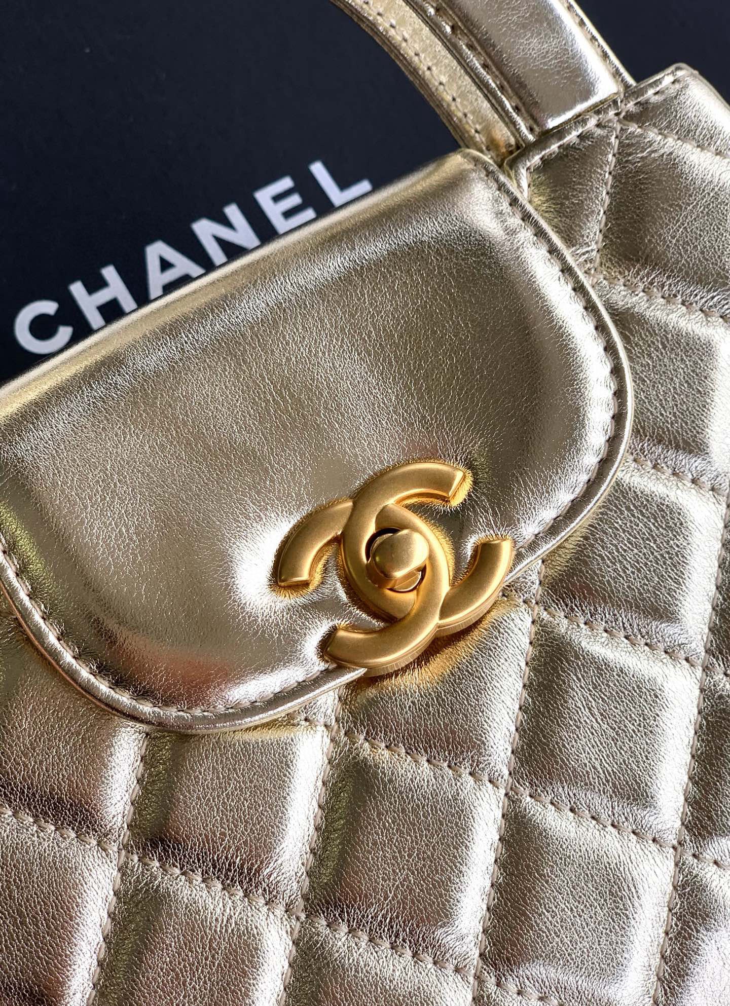 CC 25A nano 19cm kelly shopper bag metallic gold lambskin gold hardware