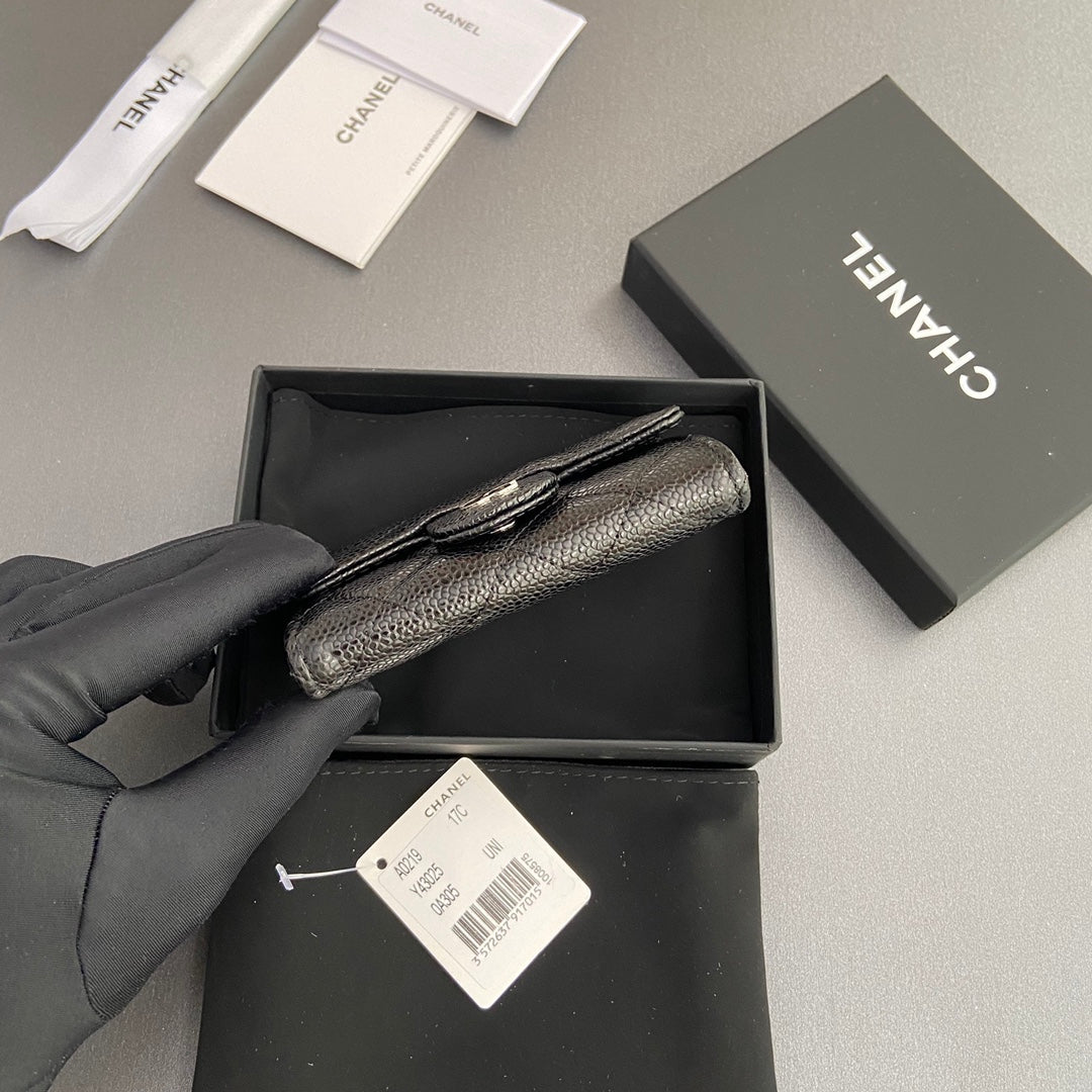 CC Zipper Flap Card Holder Black Caviar Sliver Steel 234671
