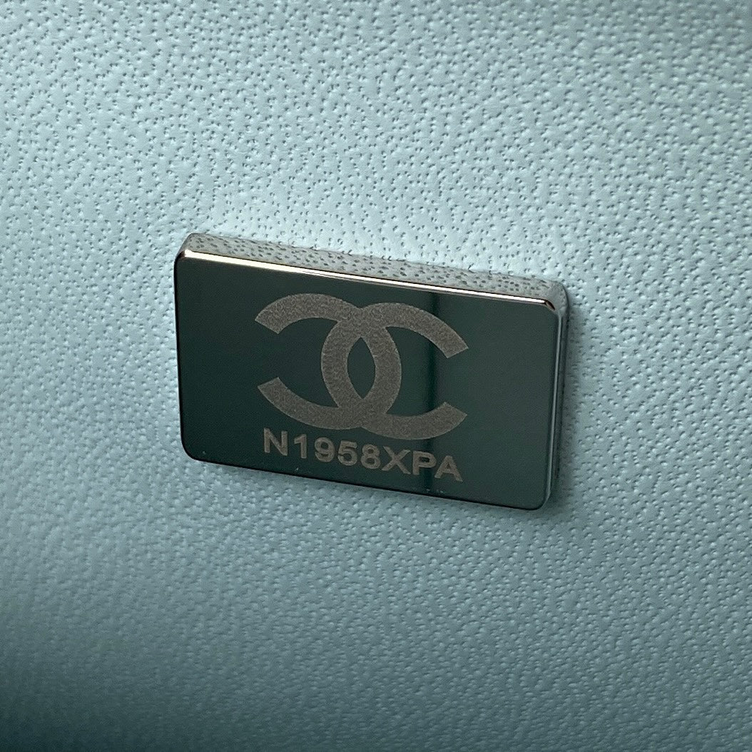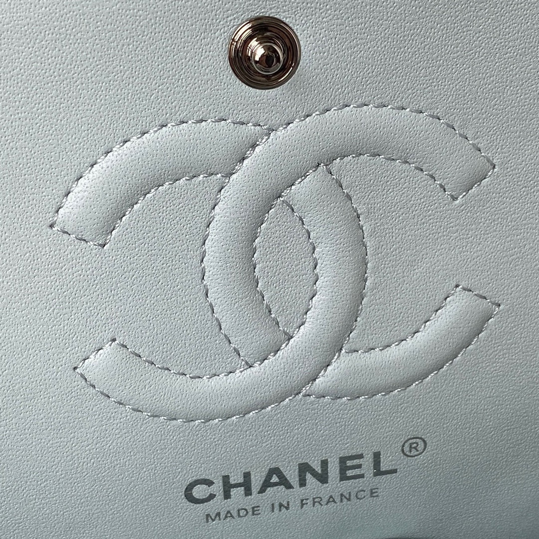 Medium Classic Flap Bag 23cm Light Blue Lambskin Silver Hardware