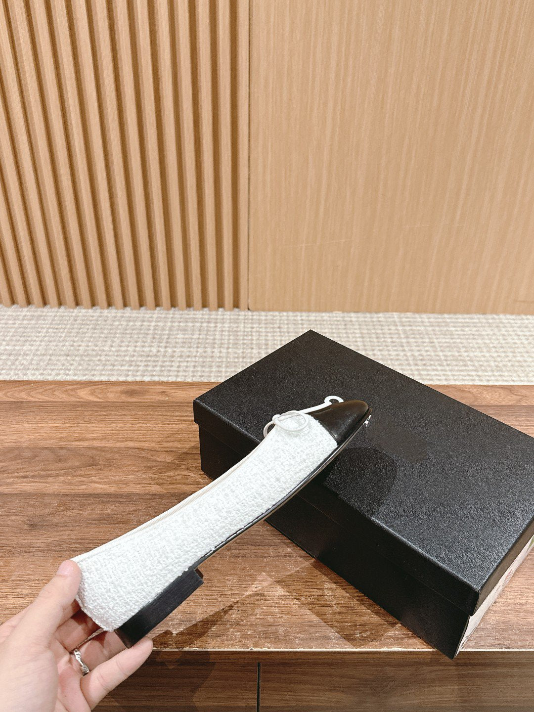 ballet flat grey tweed beige black lambskin