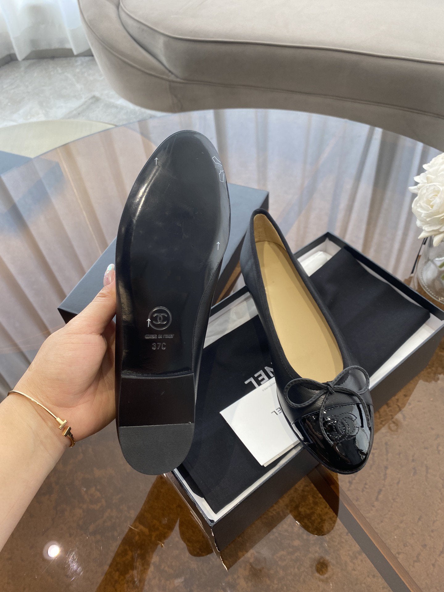 ballet flats black beige lambskin