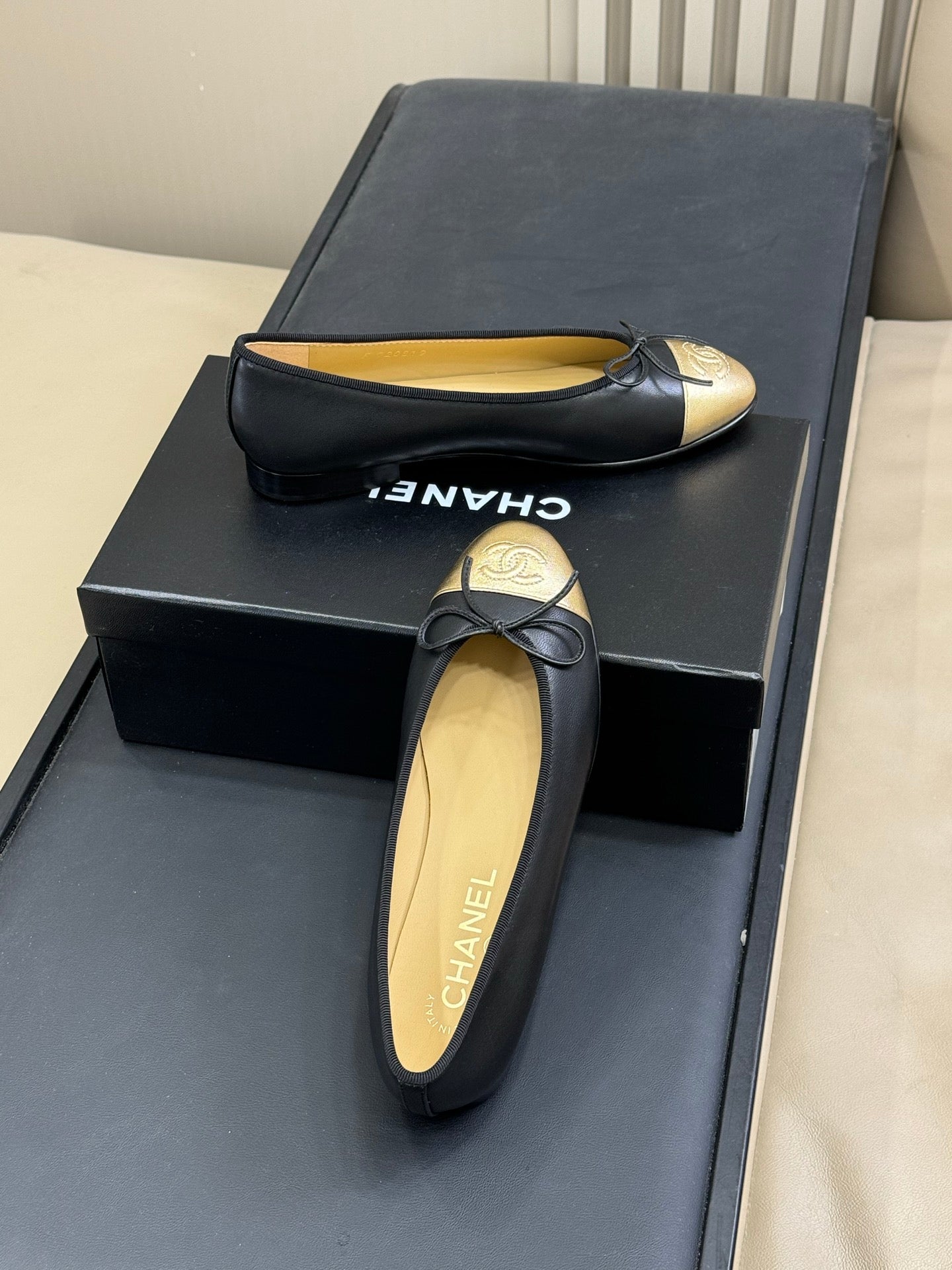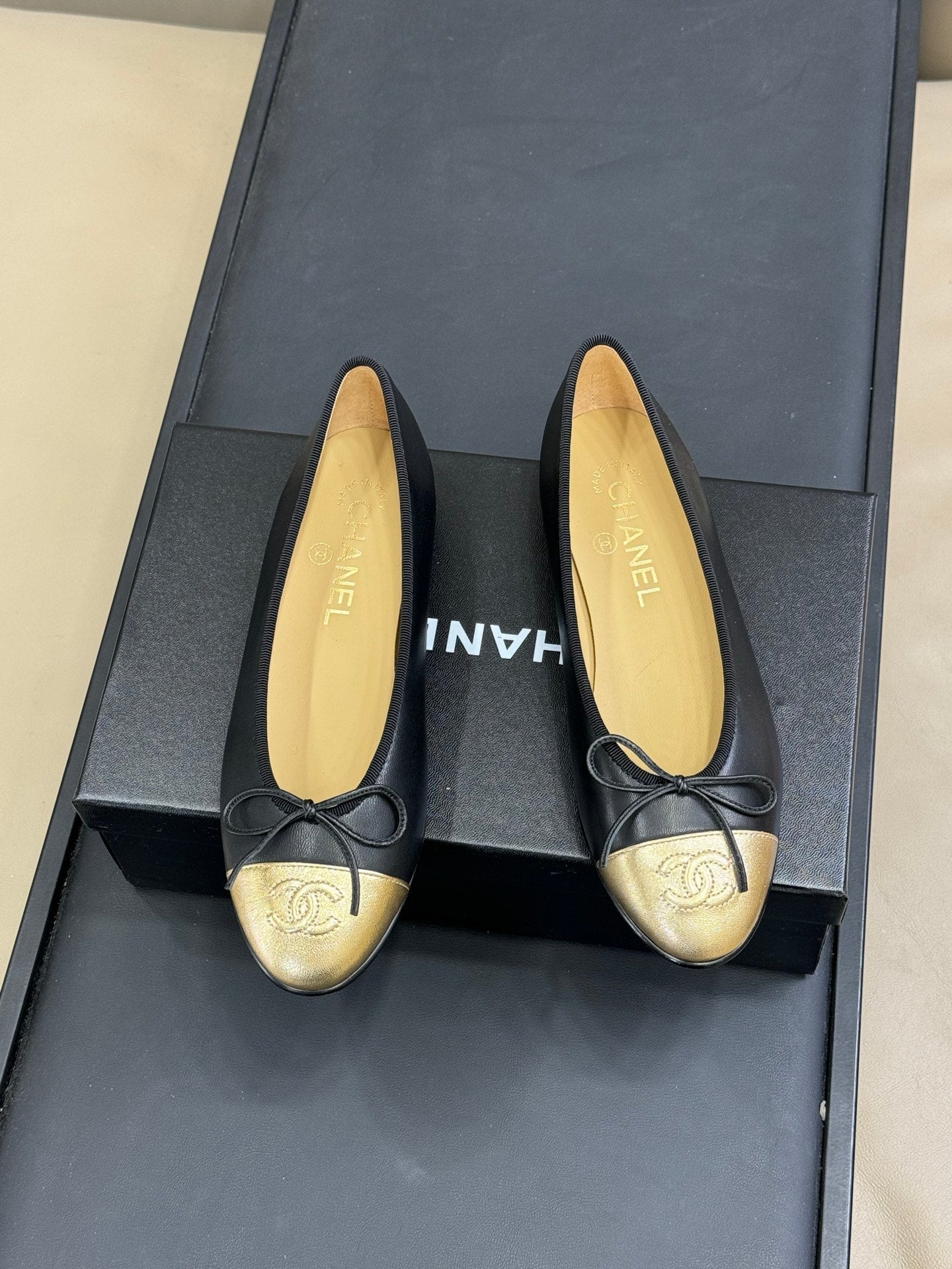 CC Classic Ballet Flats Black Gold Lambskin 282277