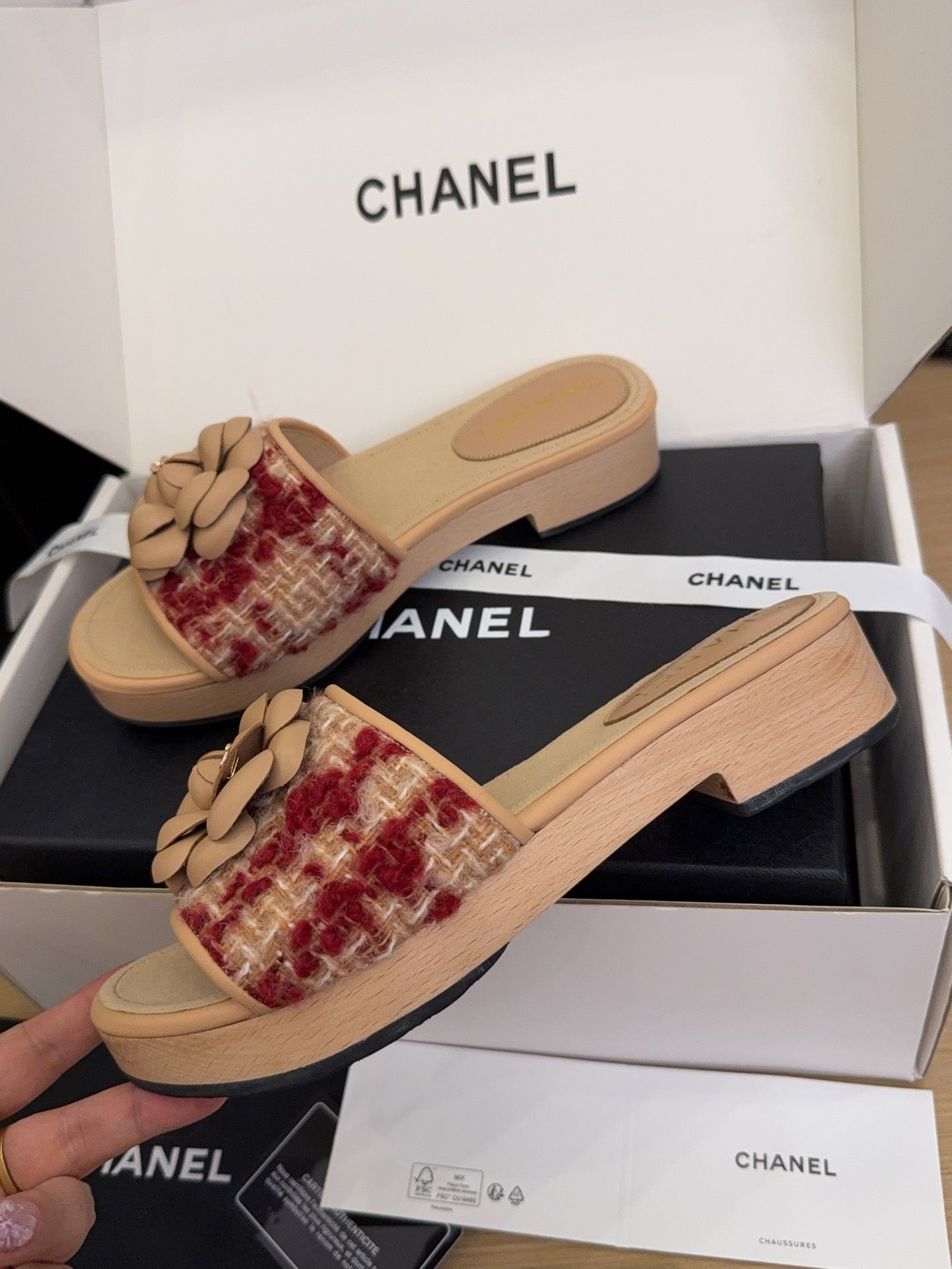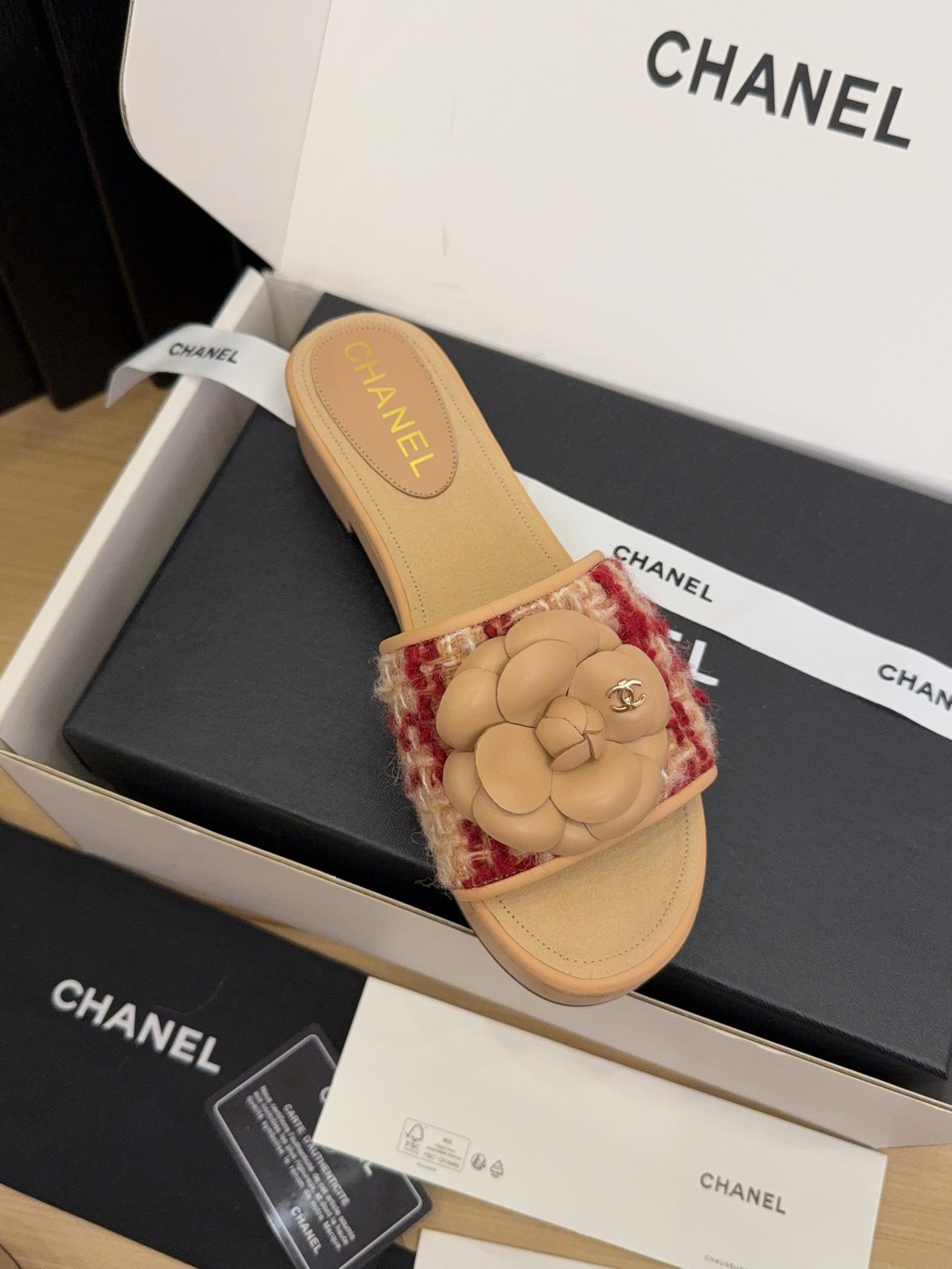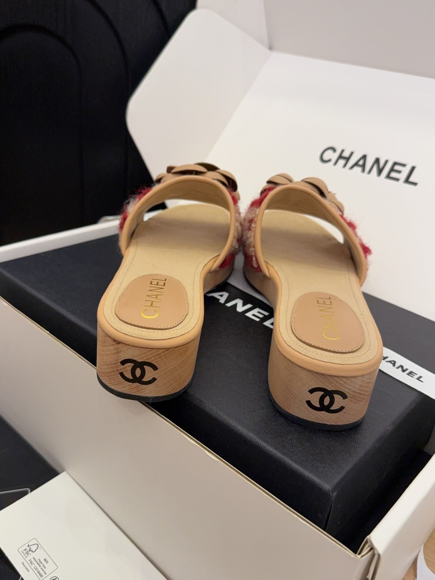 CC 25 Camellia Mule 40 Red Mix Beige Tweed And Beige Leather 277719