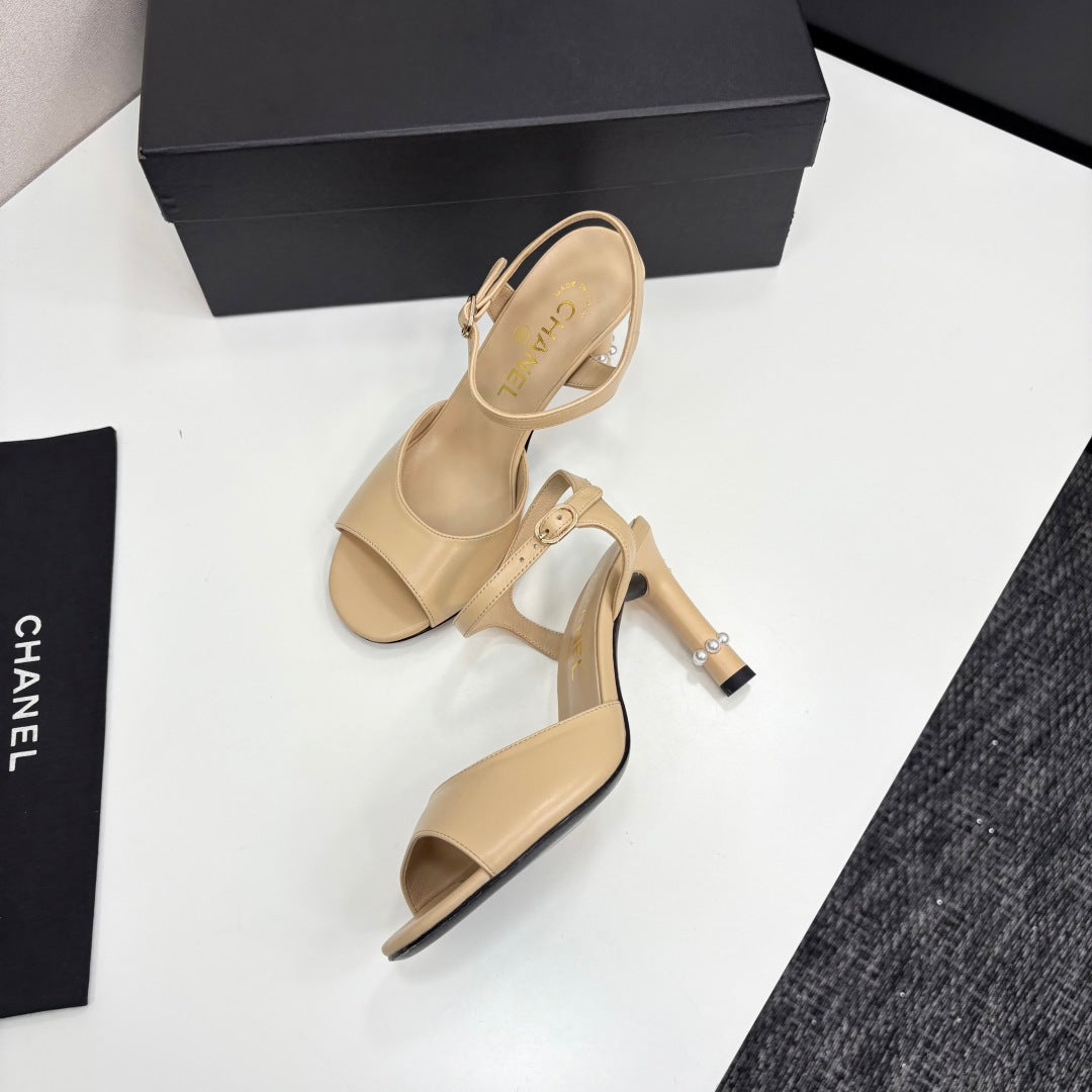 CC 25 Heel Sandals 80mm Beige Lambskin 368821