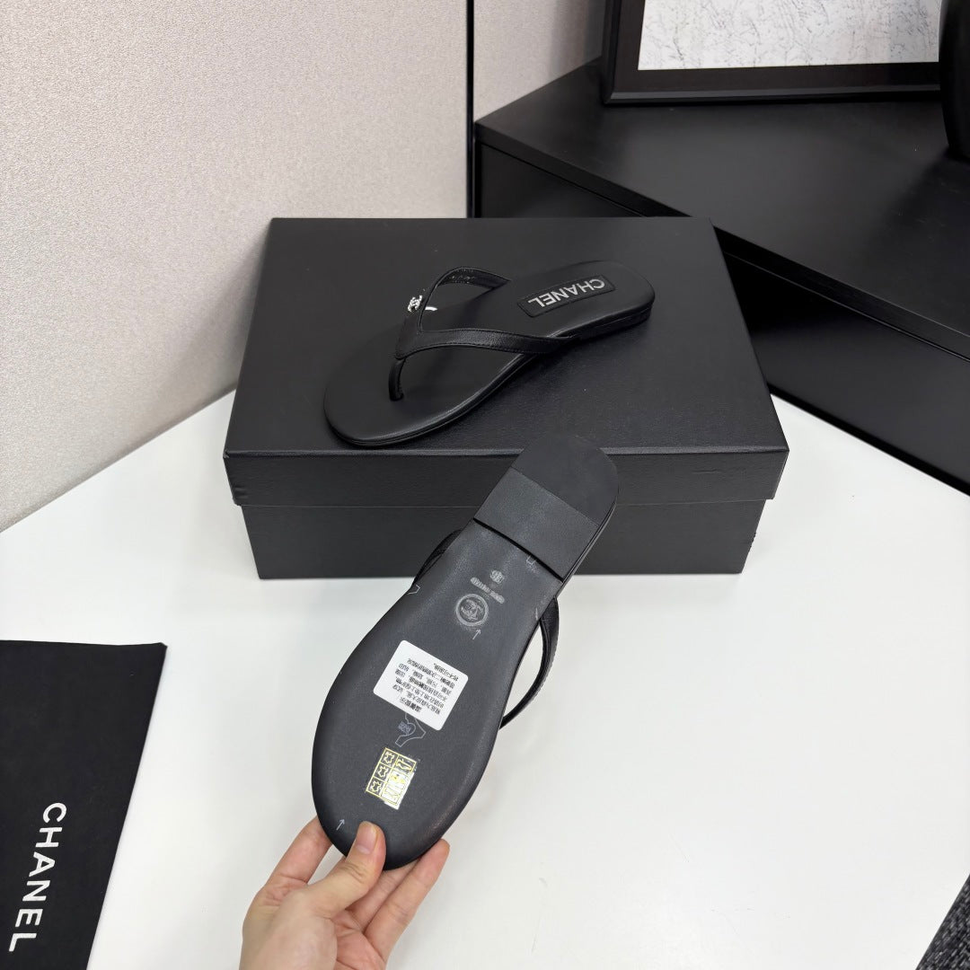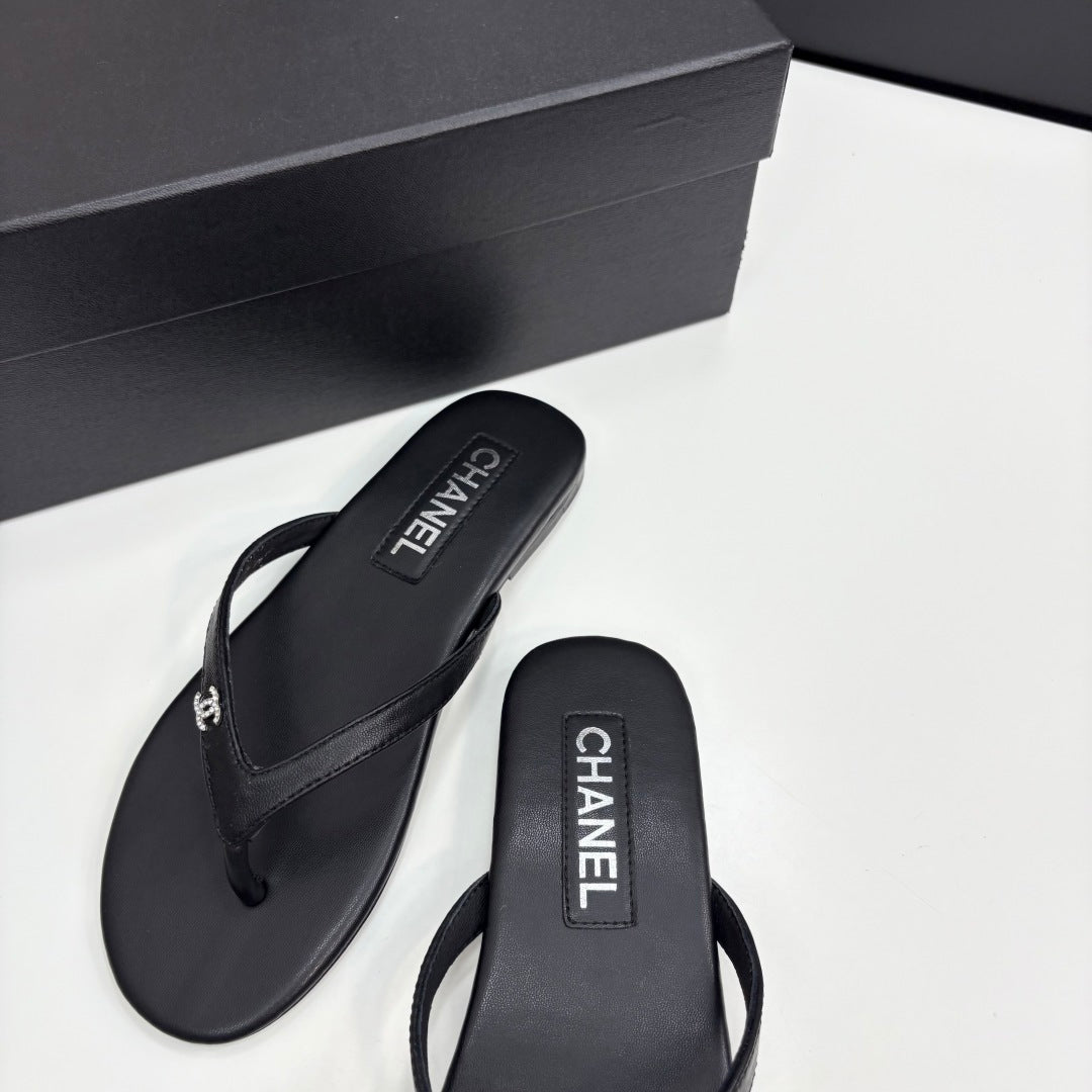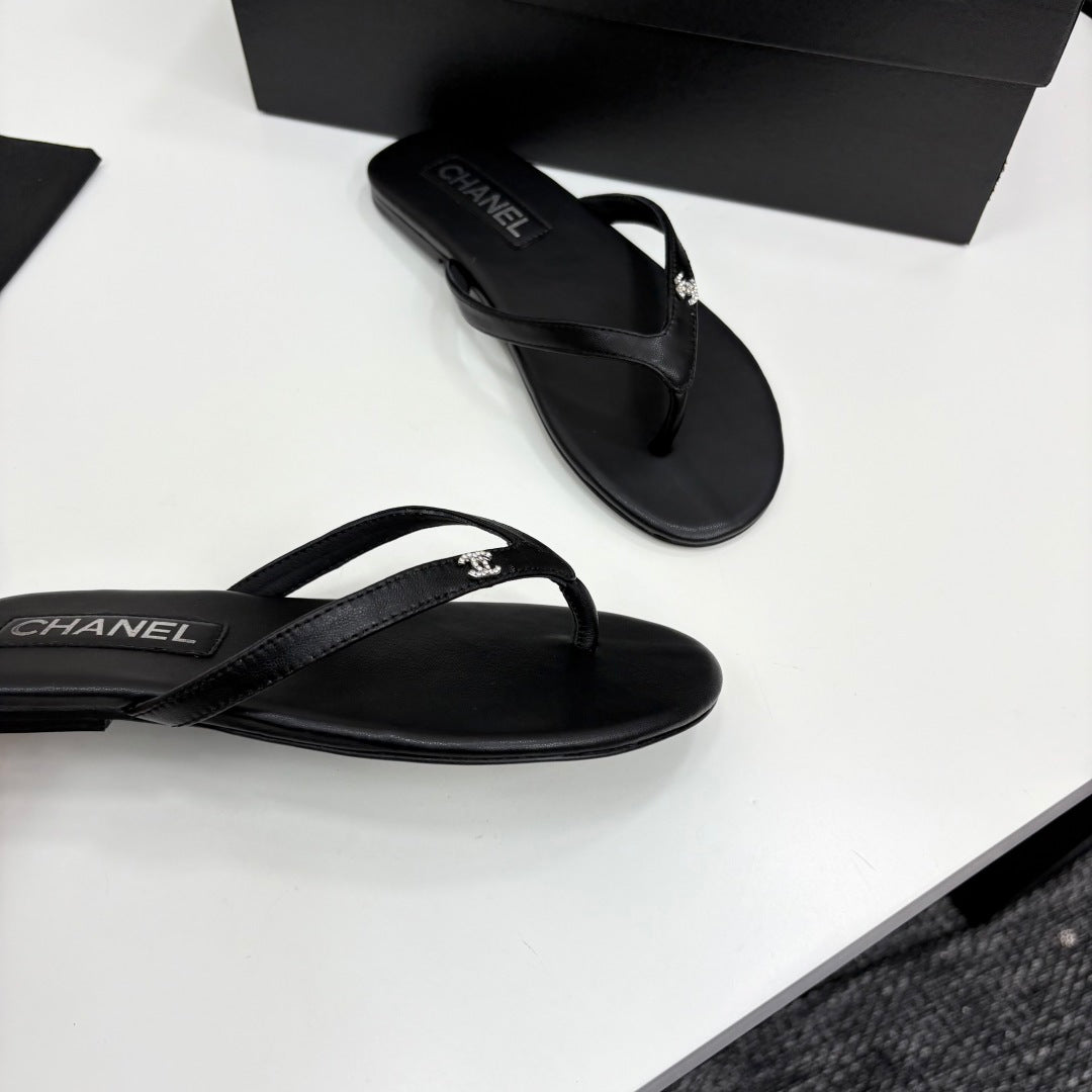 CC Crystal Logo Thong Sandal Black Sheepskin 352475