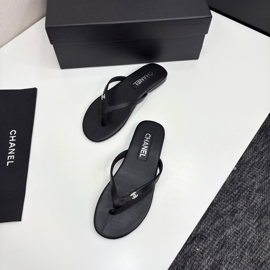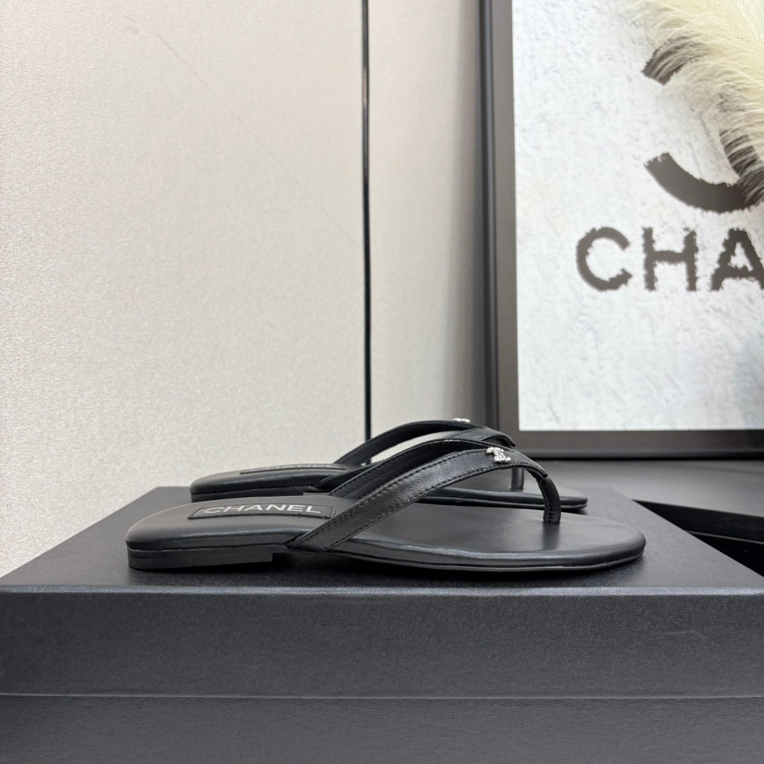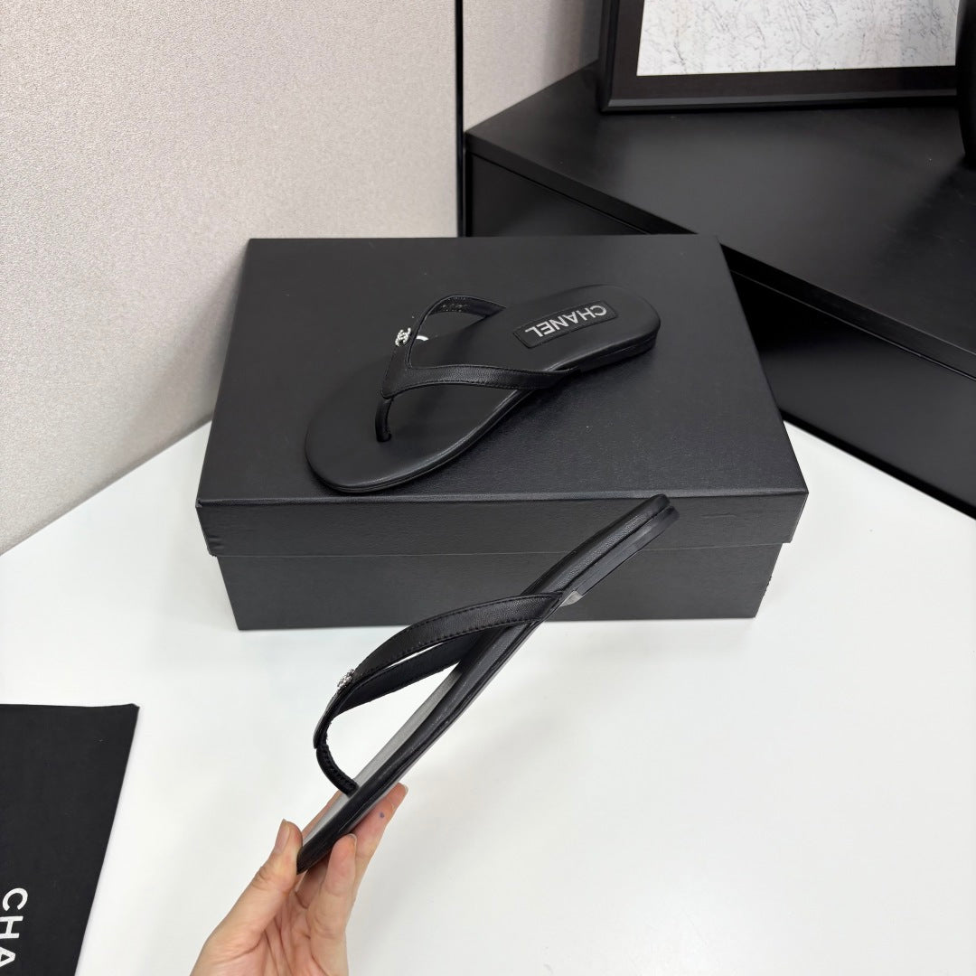 CC Crystal Logo Thong Sandal Black Sheepskin 352475