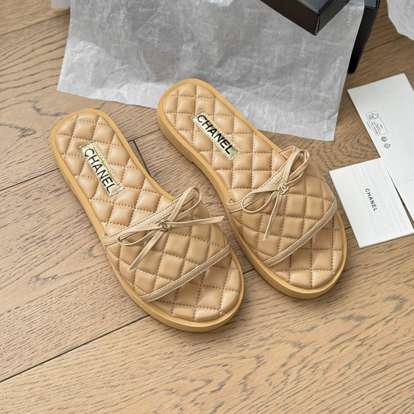 mule sandal bow beige quilted calfskin