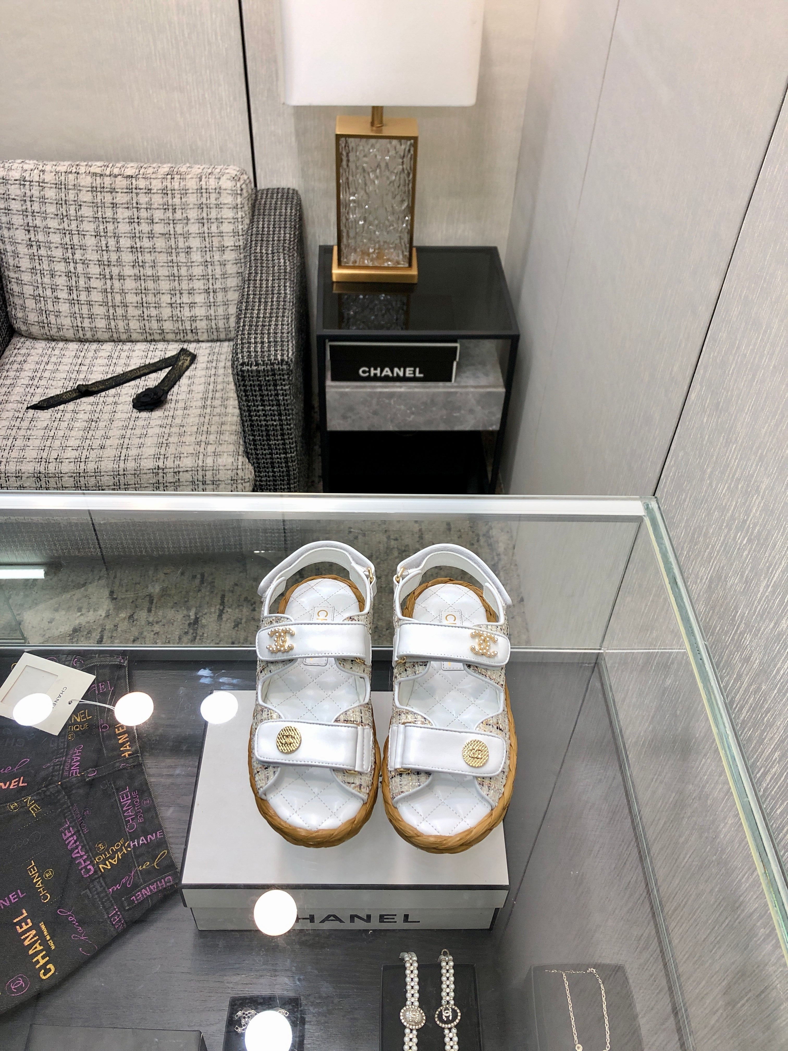 VELCRO SANDALS IN WHITE LAMBSKIN AND TWEED FABRIC