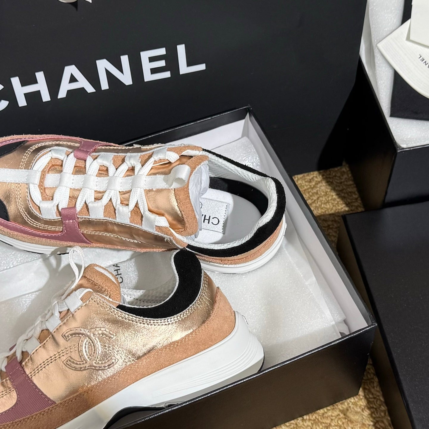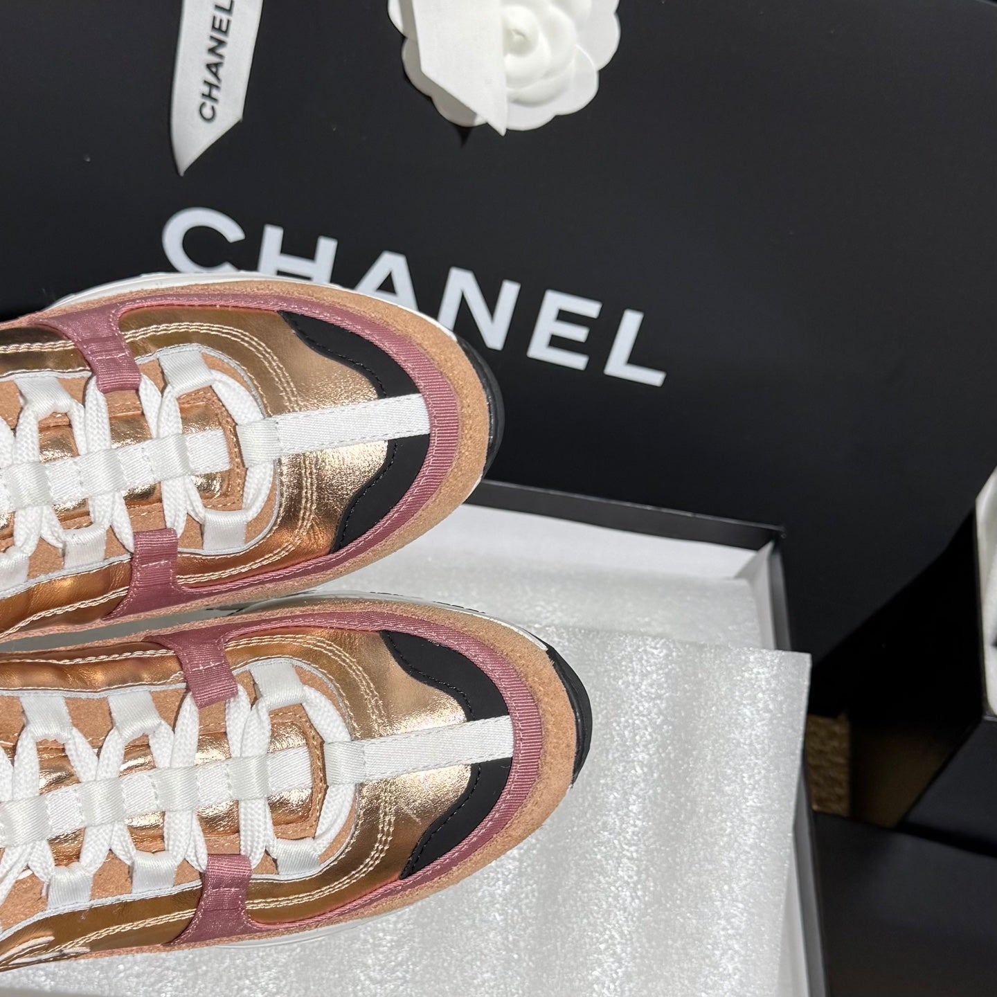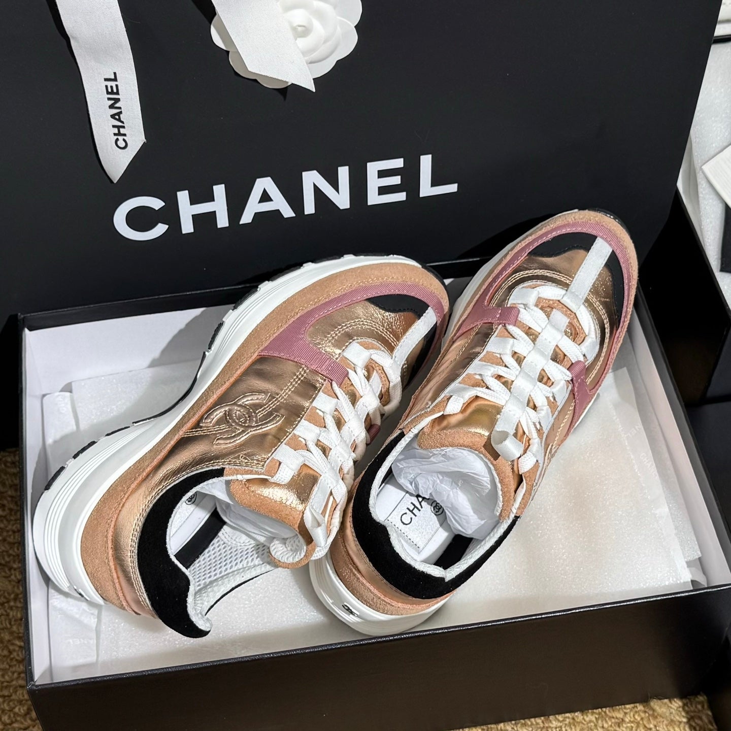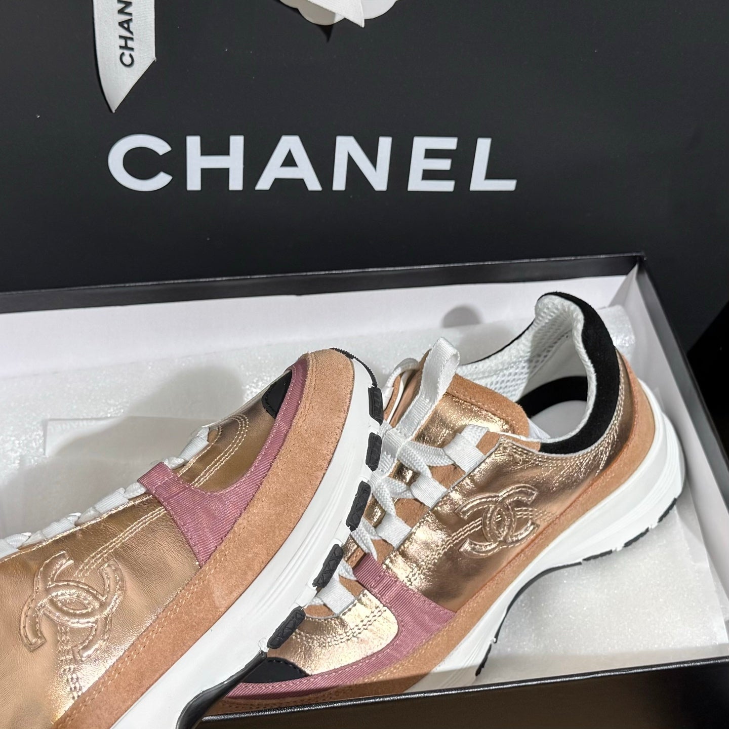 CC 25A Trainers Beige Black Pink Laminated Calfskin And Suede Calfskin 352115
