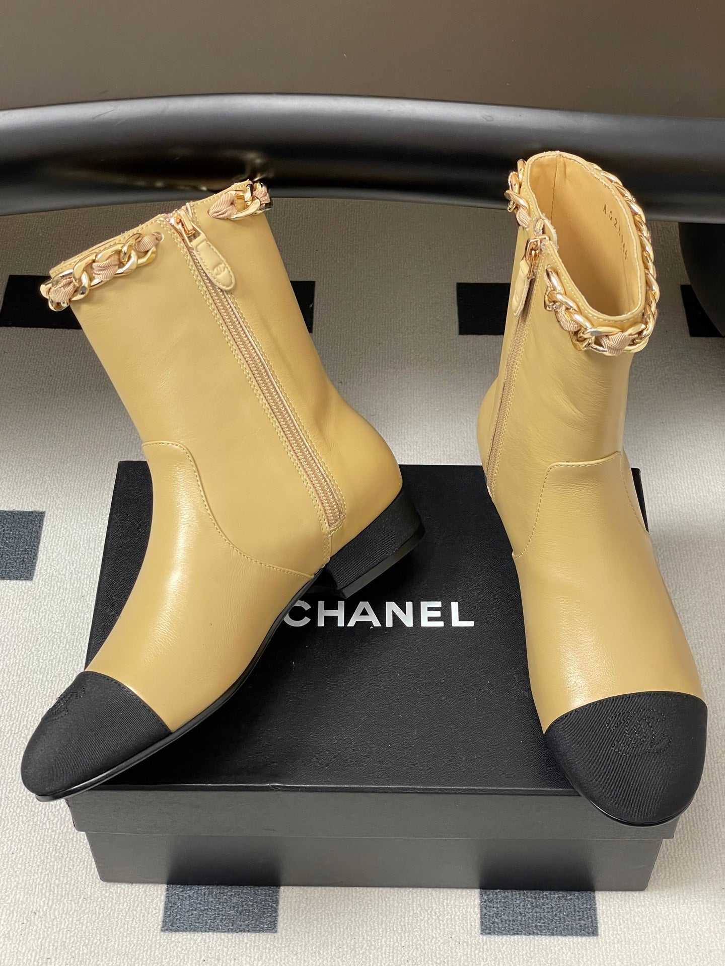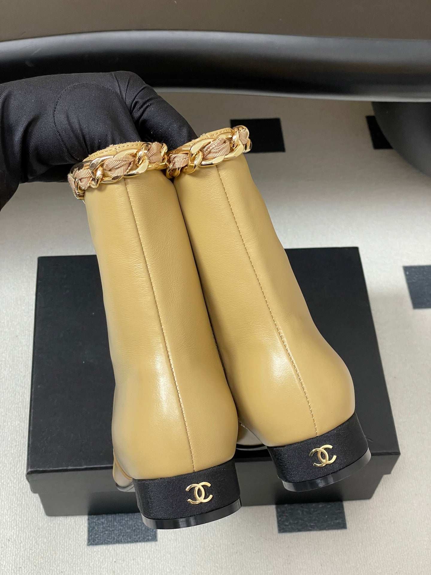 CC 25B Chain Short Boot 25mm Black Beige Denim Cowhide 423152