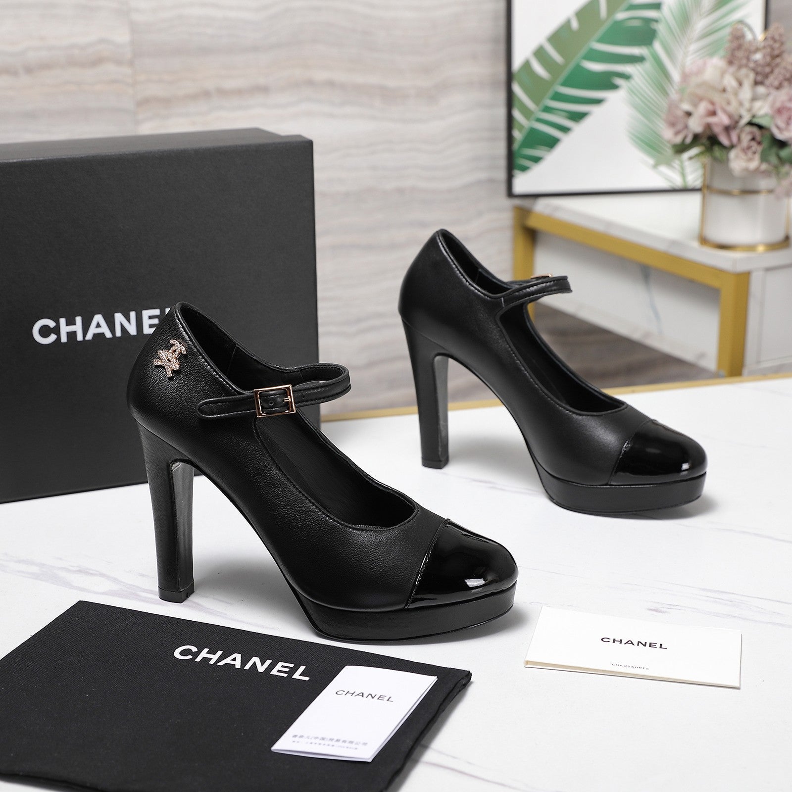 CC Buckle Platform Pumps 100mm Black Lambskin 425881