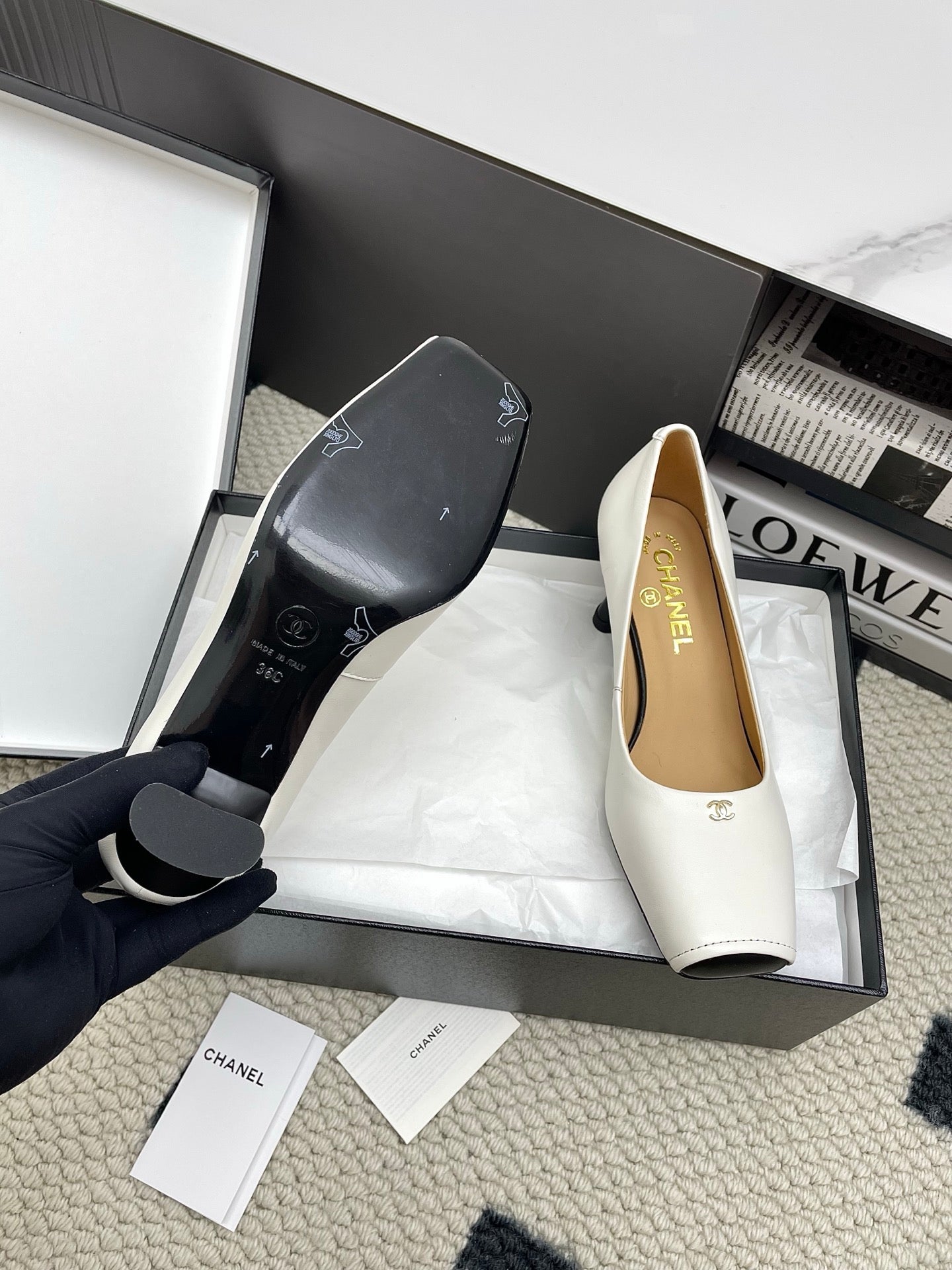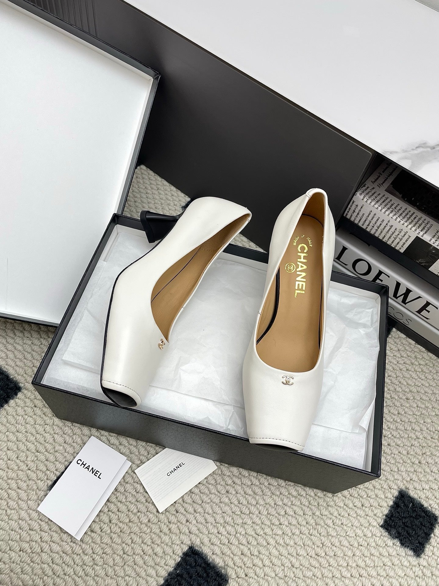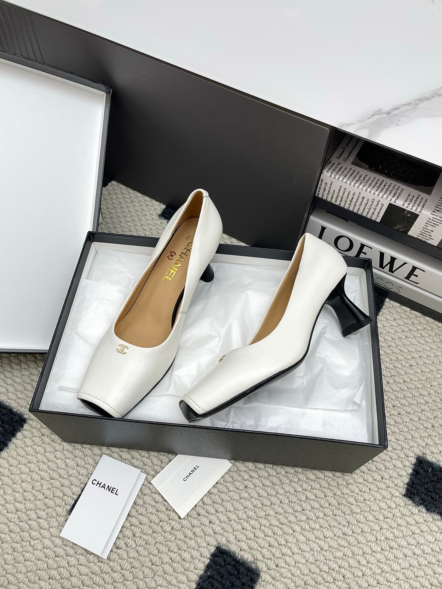CC Square-Toe Pumps 65mm White Sheepskin 427016