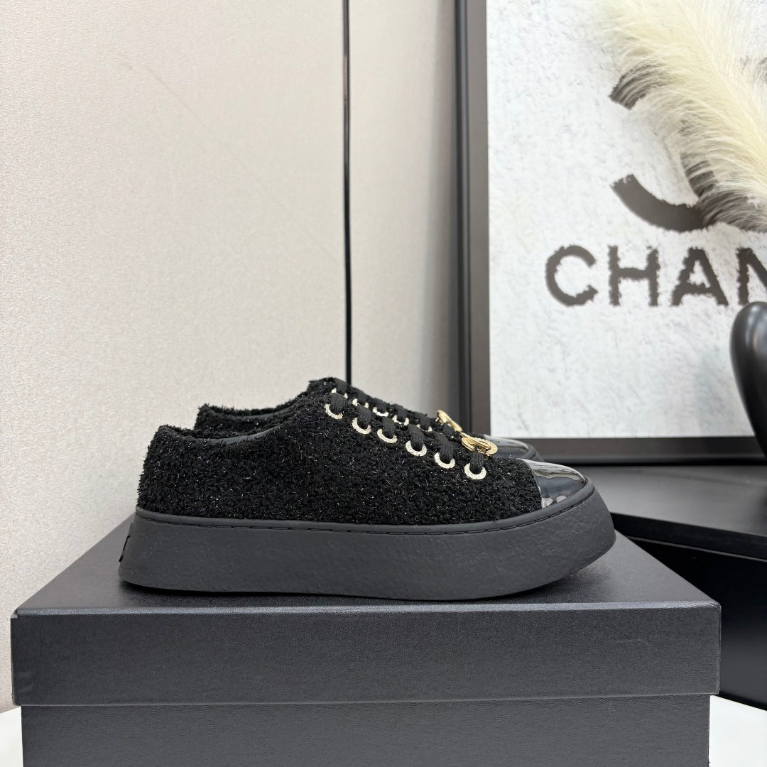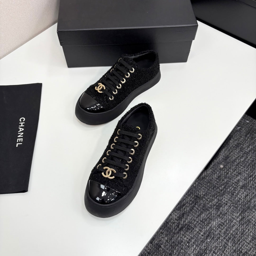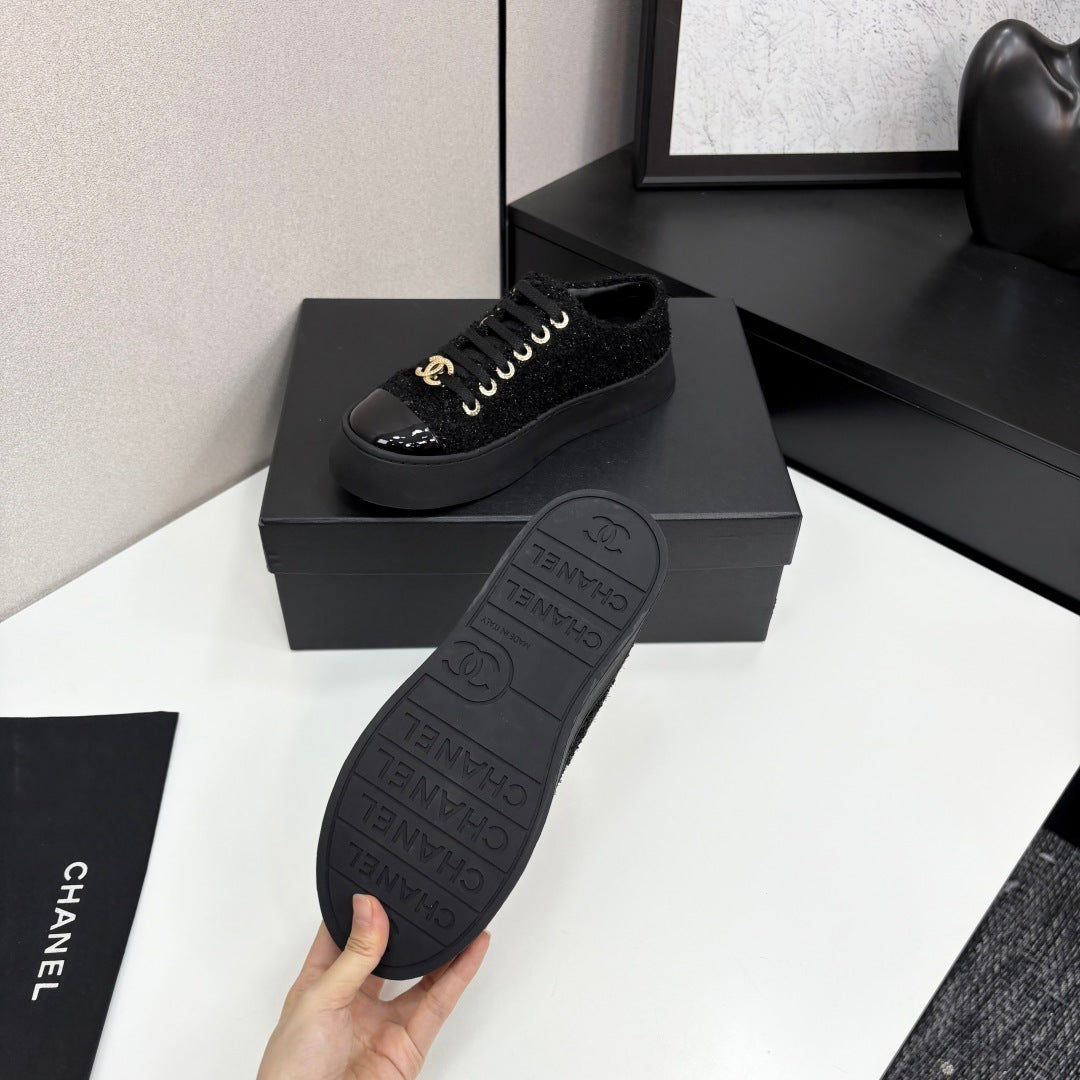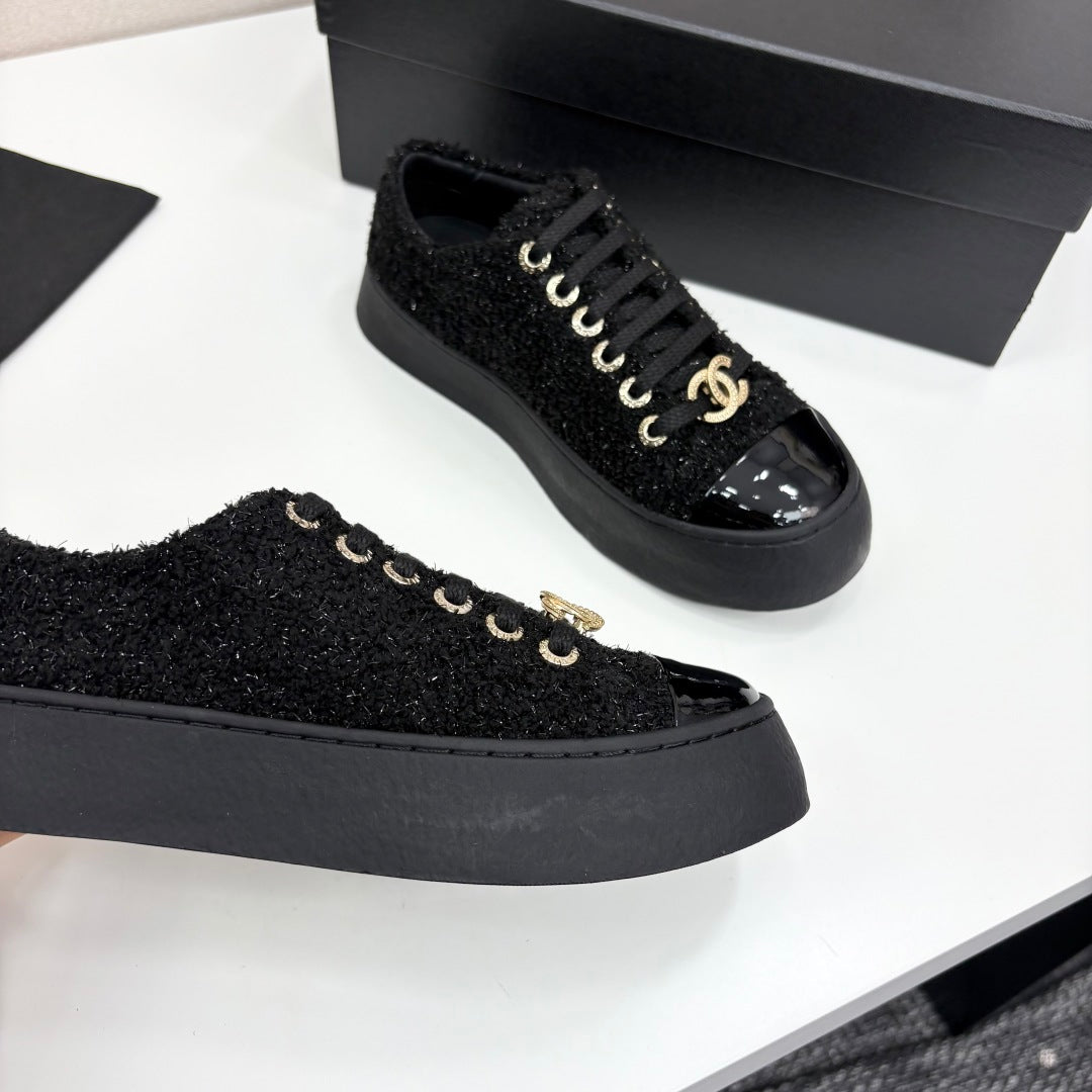 CC25 Lace-up Sneakers Black Fabric And Patent Leather 352501