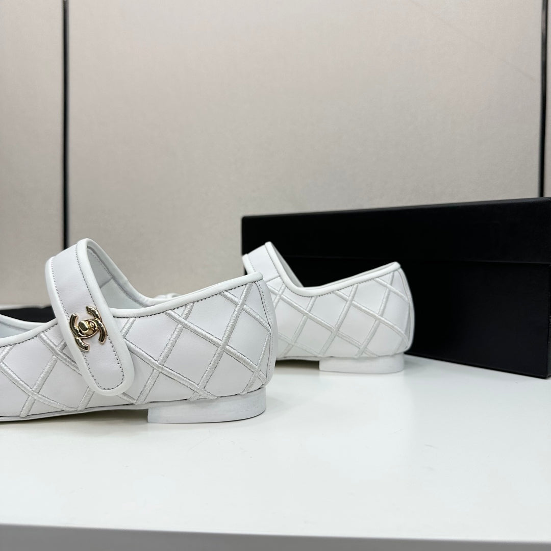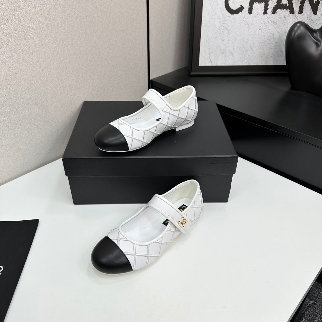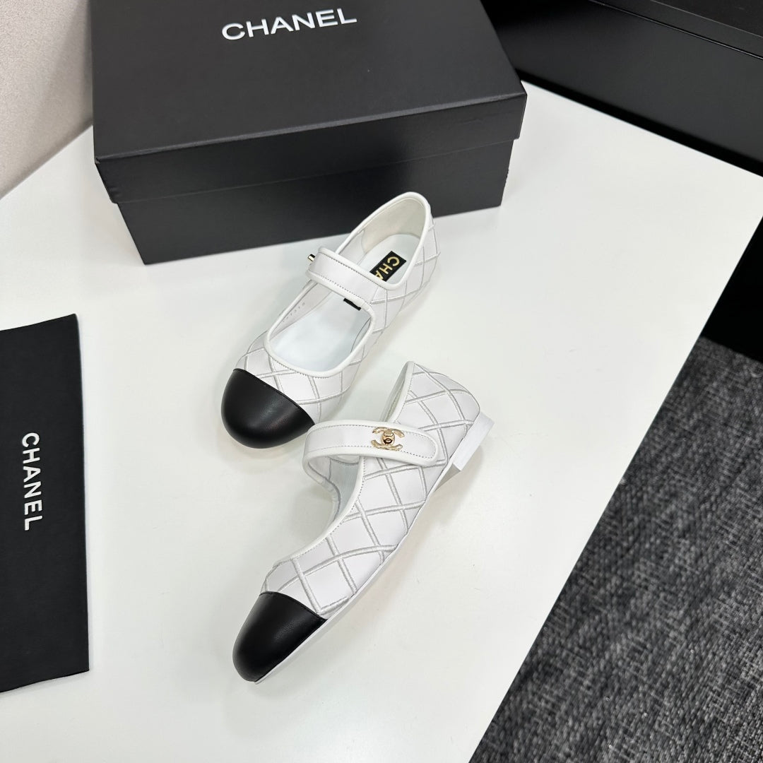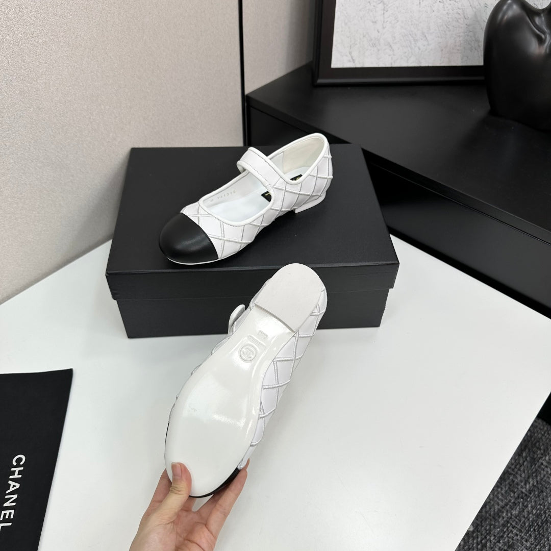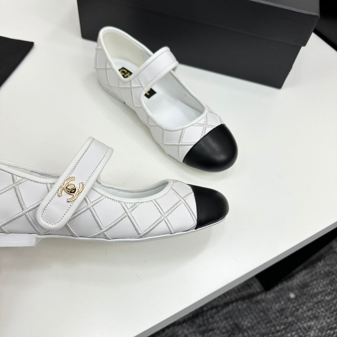 CC25 Mary Janes White Black Cowhide 352504