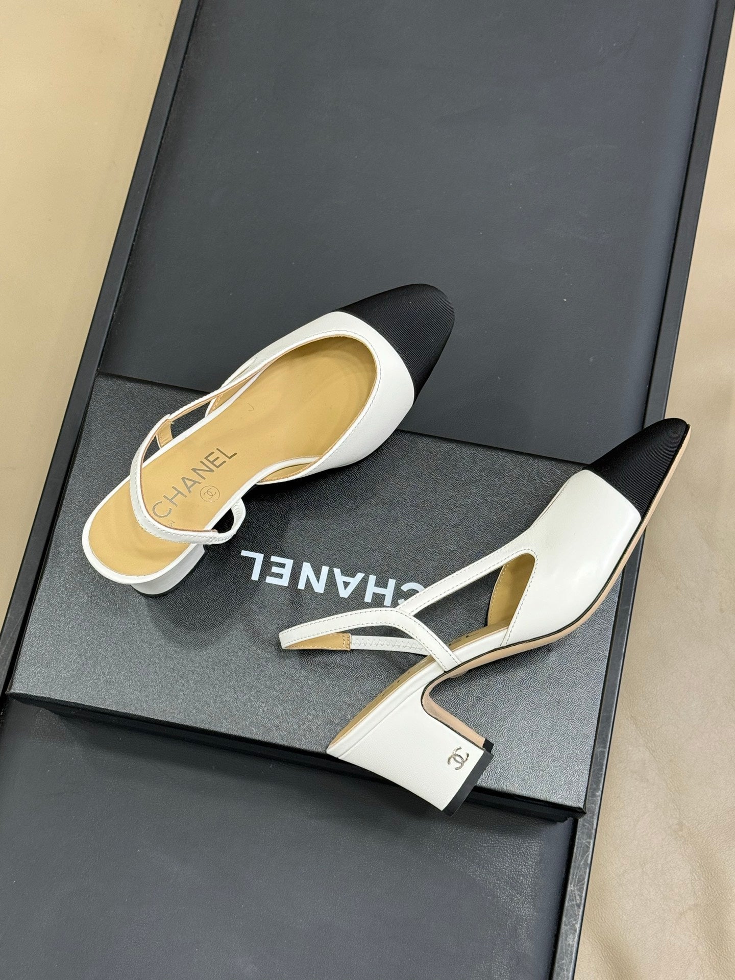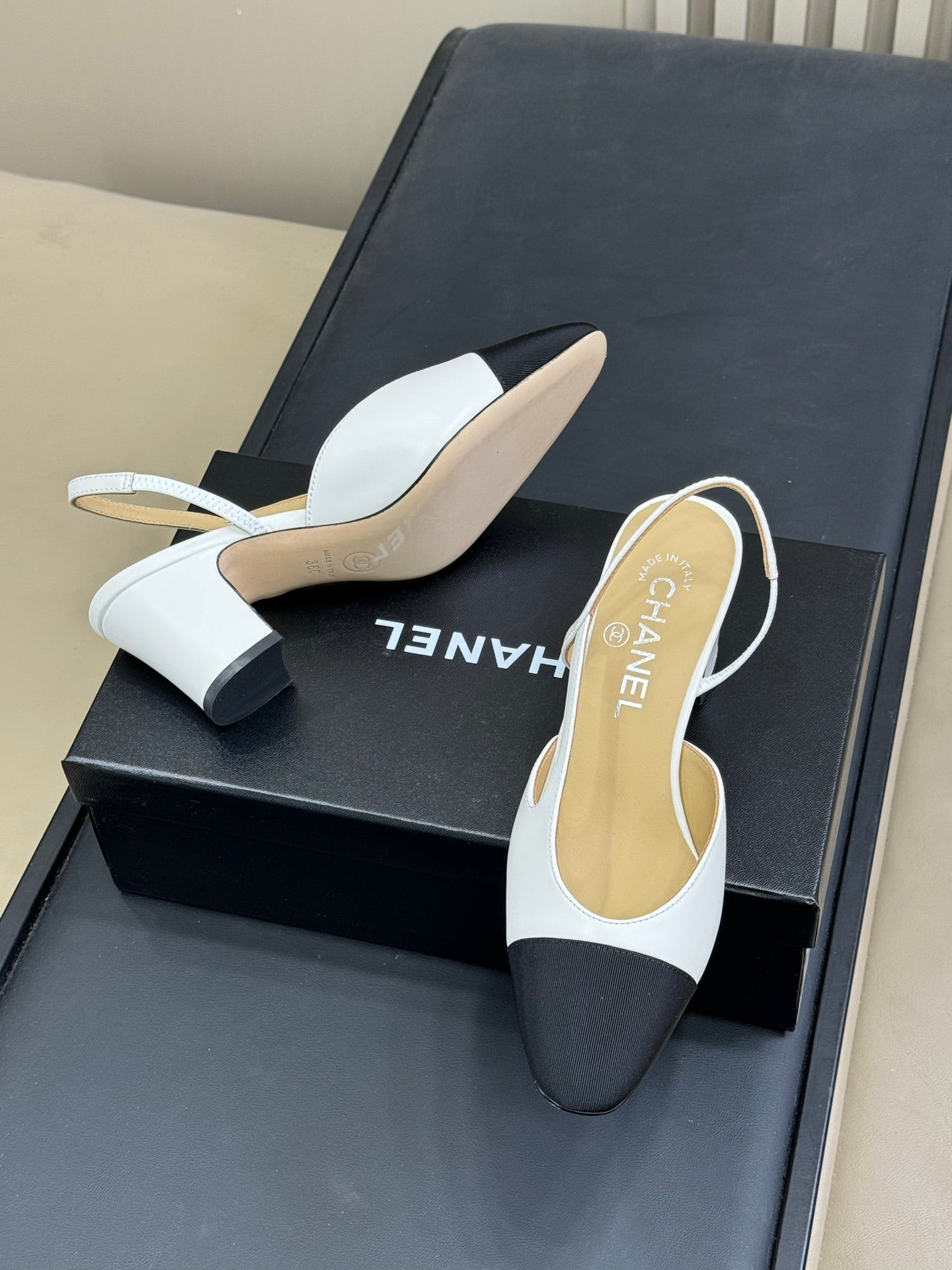 CC Classic Slingback White Goatskin Black Grosgrain 282282