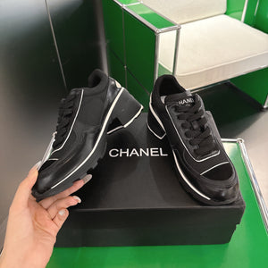 Chanel 25 Sneaker Black White Suede Fabric 540330