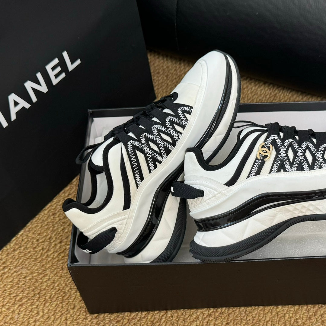 CC Sneaker White Mix Black Calfskin And Silk Parachute Fabric 947510