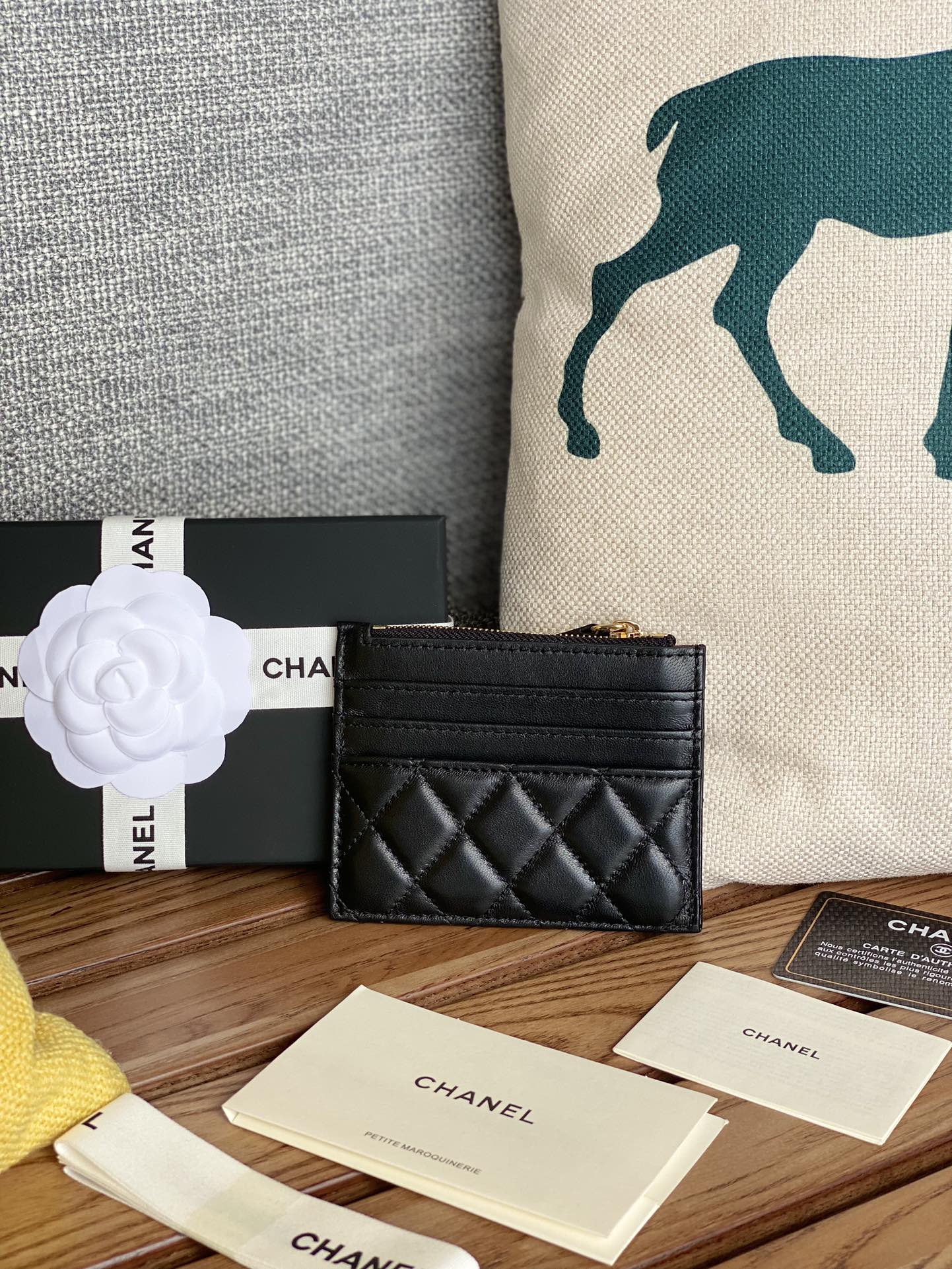 CC A84105 Coin Case Black Gold Metal Lamskin 240723