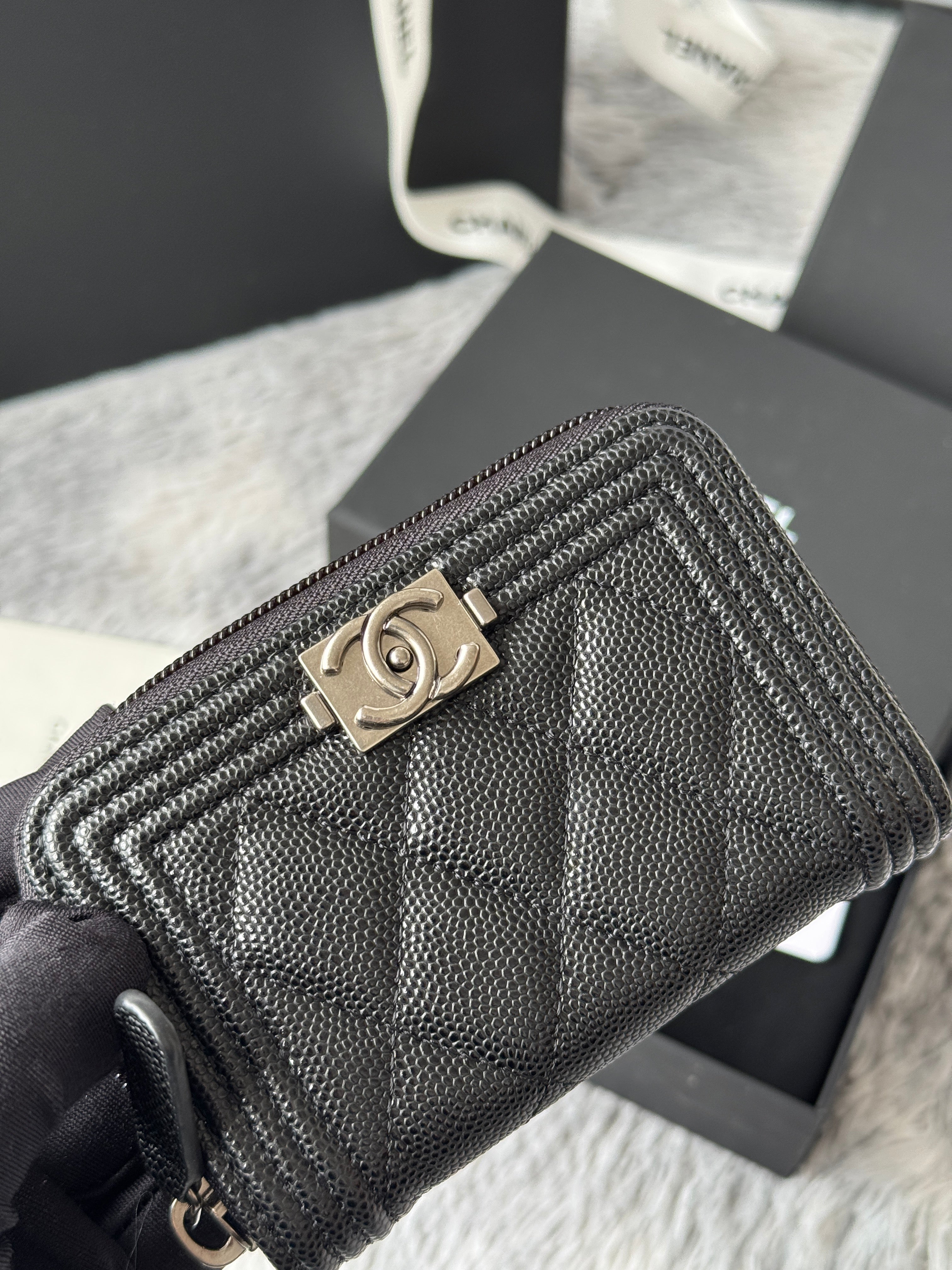 CC Classic Boy Coin Purse Black Sliver-tone Grained Calfskin 242886
