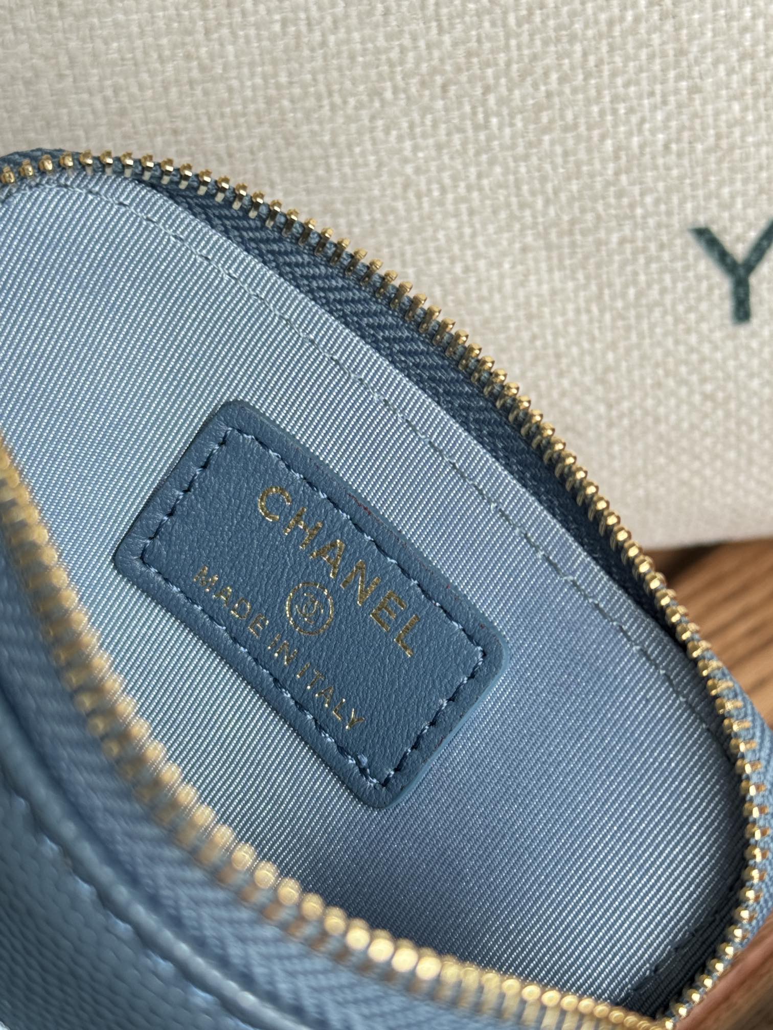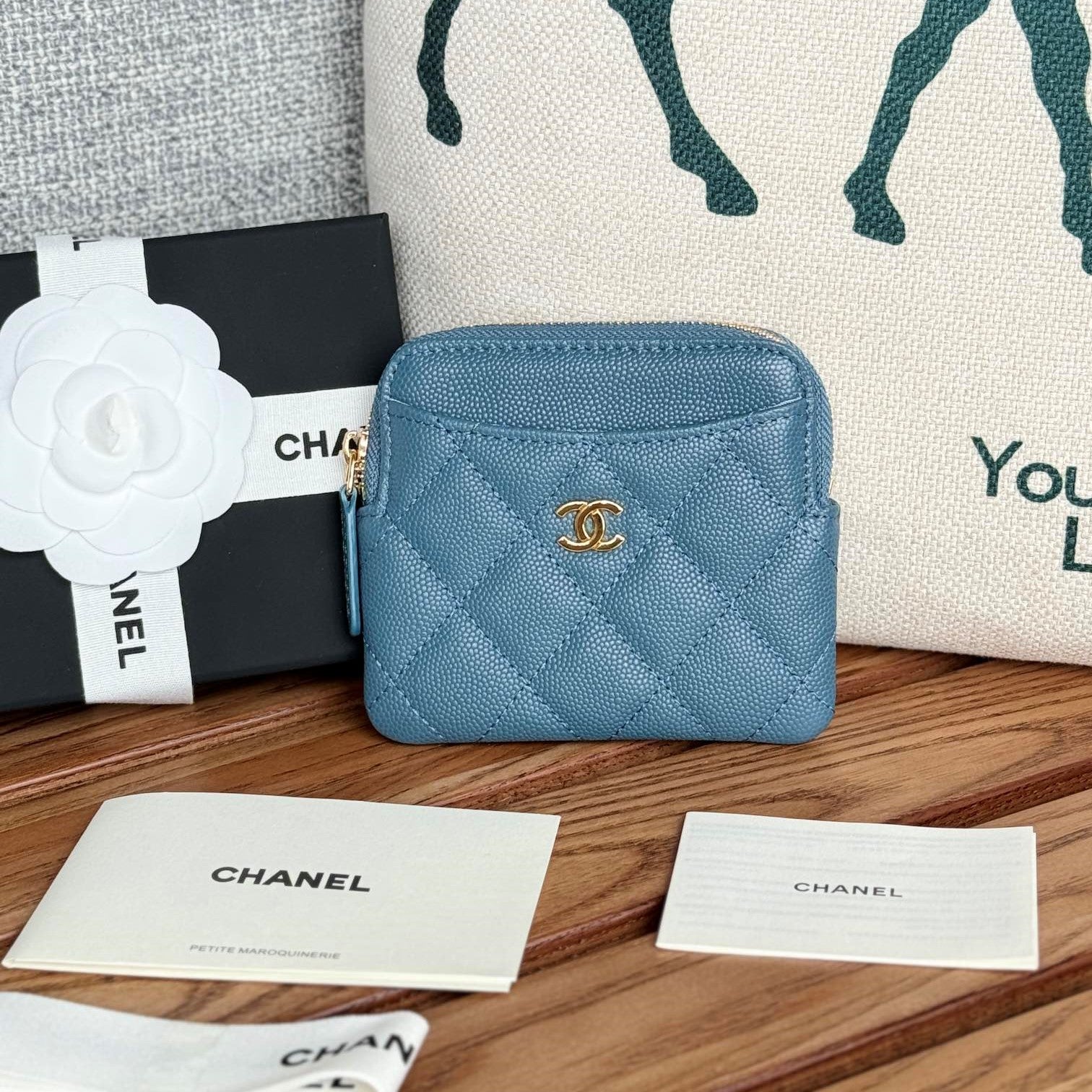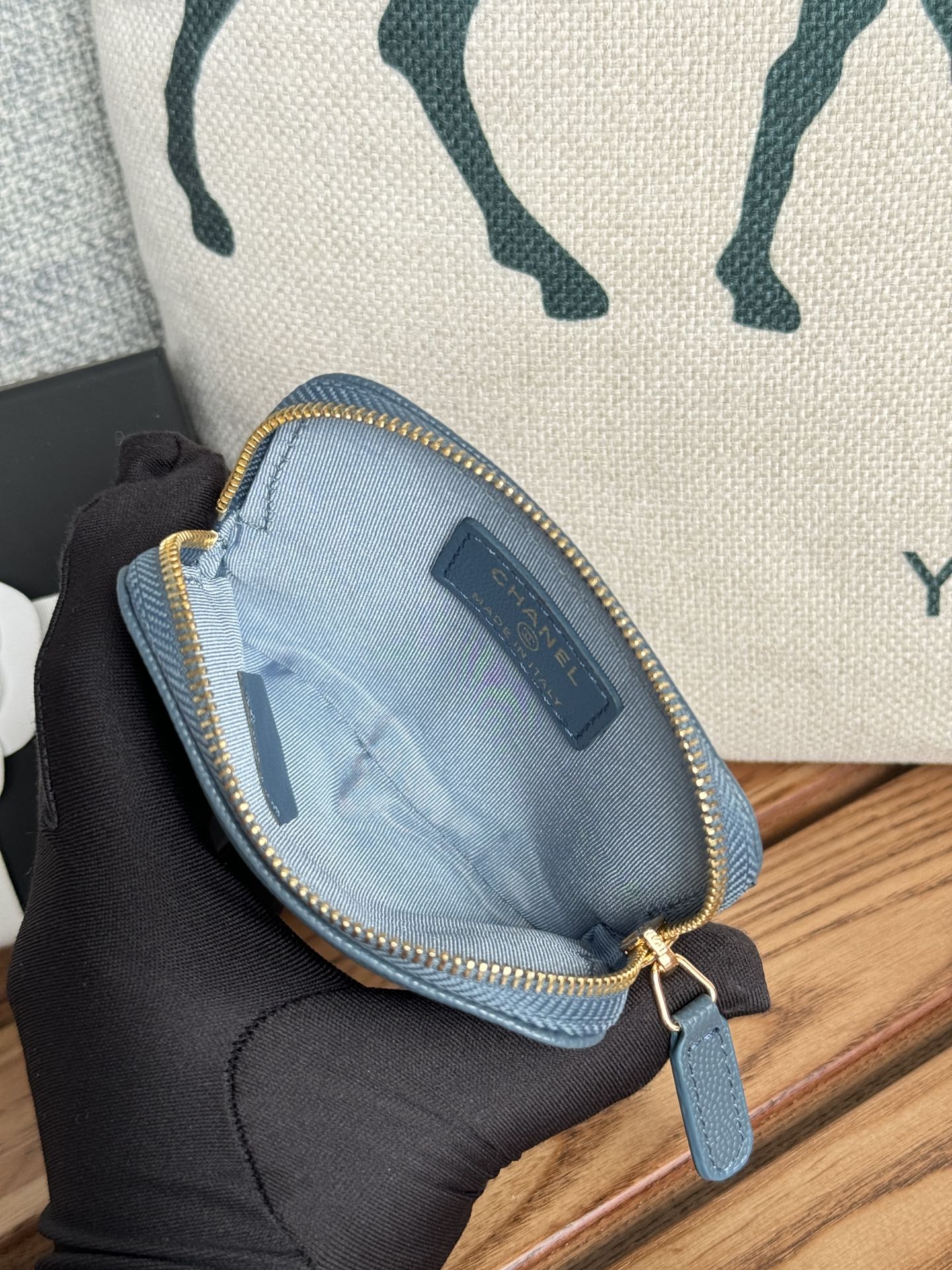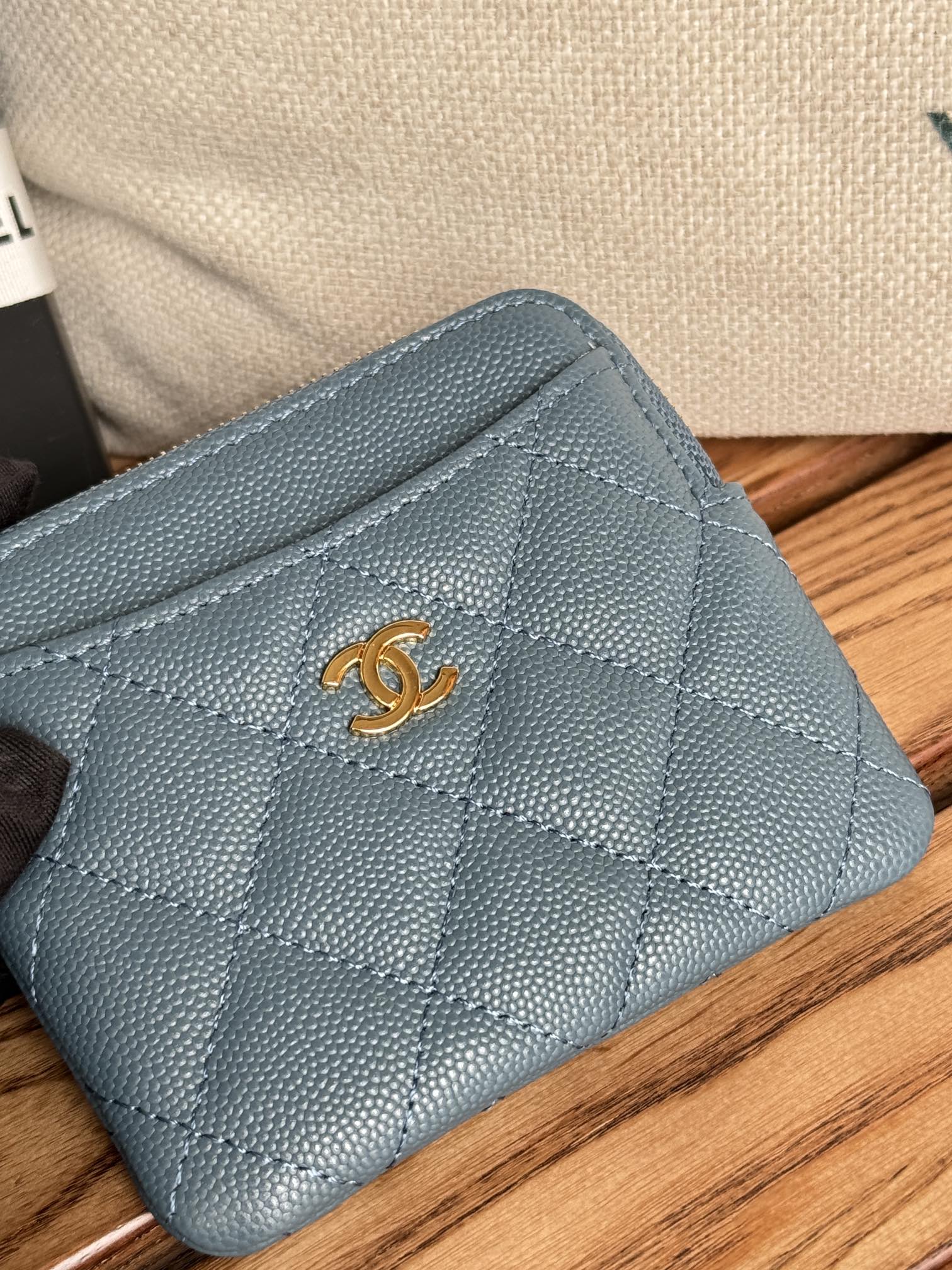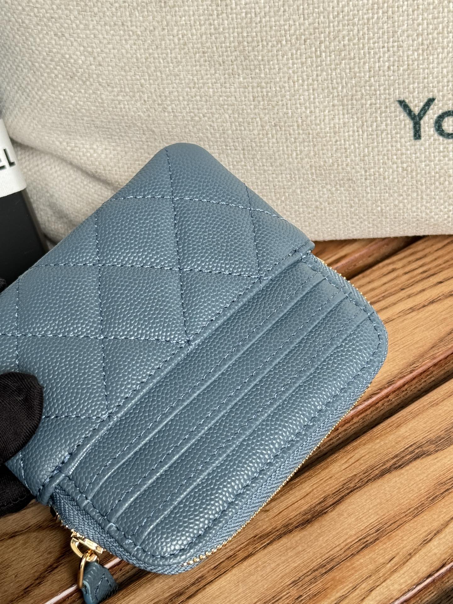 CC Zip Card Holder Wallet Blue Gold Metal Caviar 240611