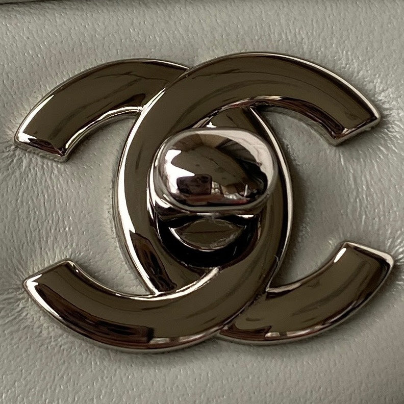 Medium Classic Flap Bag 23cm Light Grey Lambskin Silver Hardware