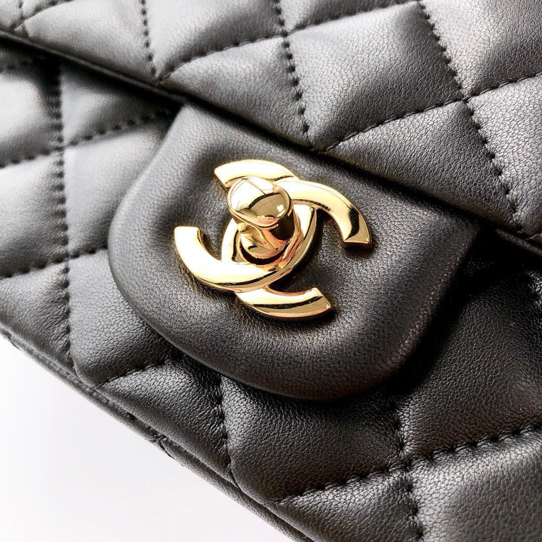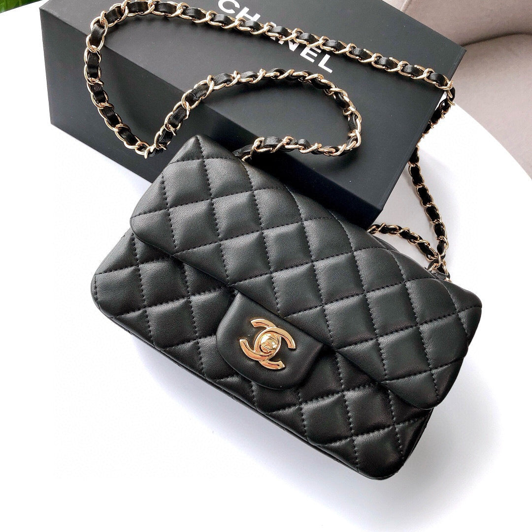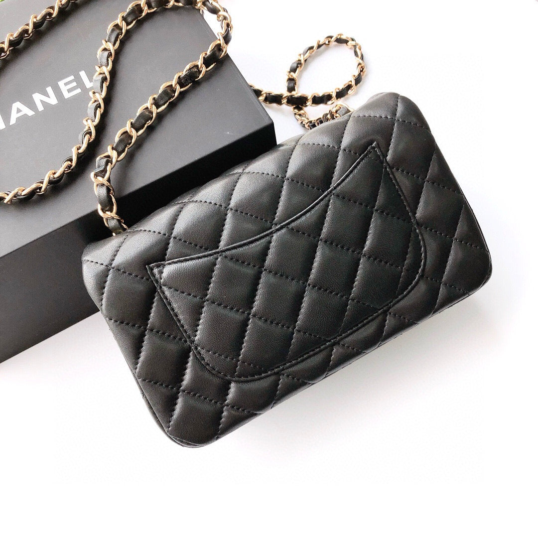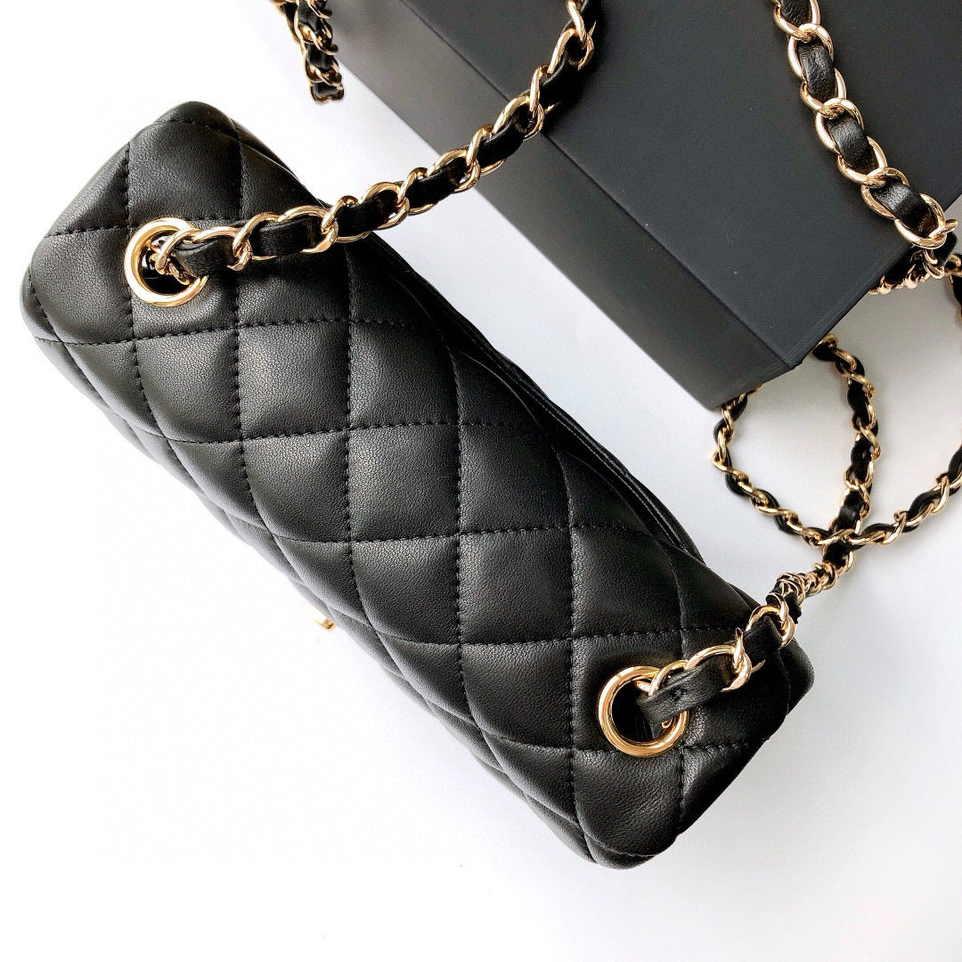 MINI RECTANGLE FLAP BAG 20CM BLACK LAMBSKIN GOLD HARDWARE