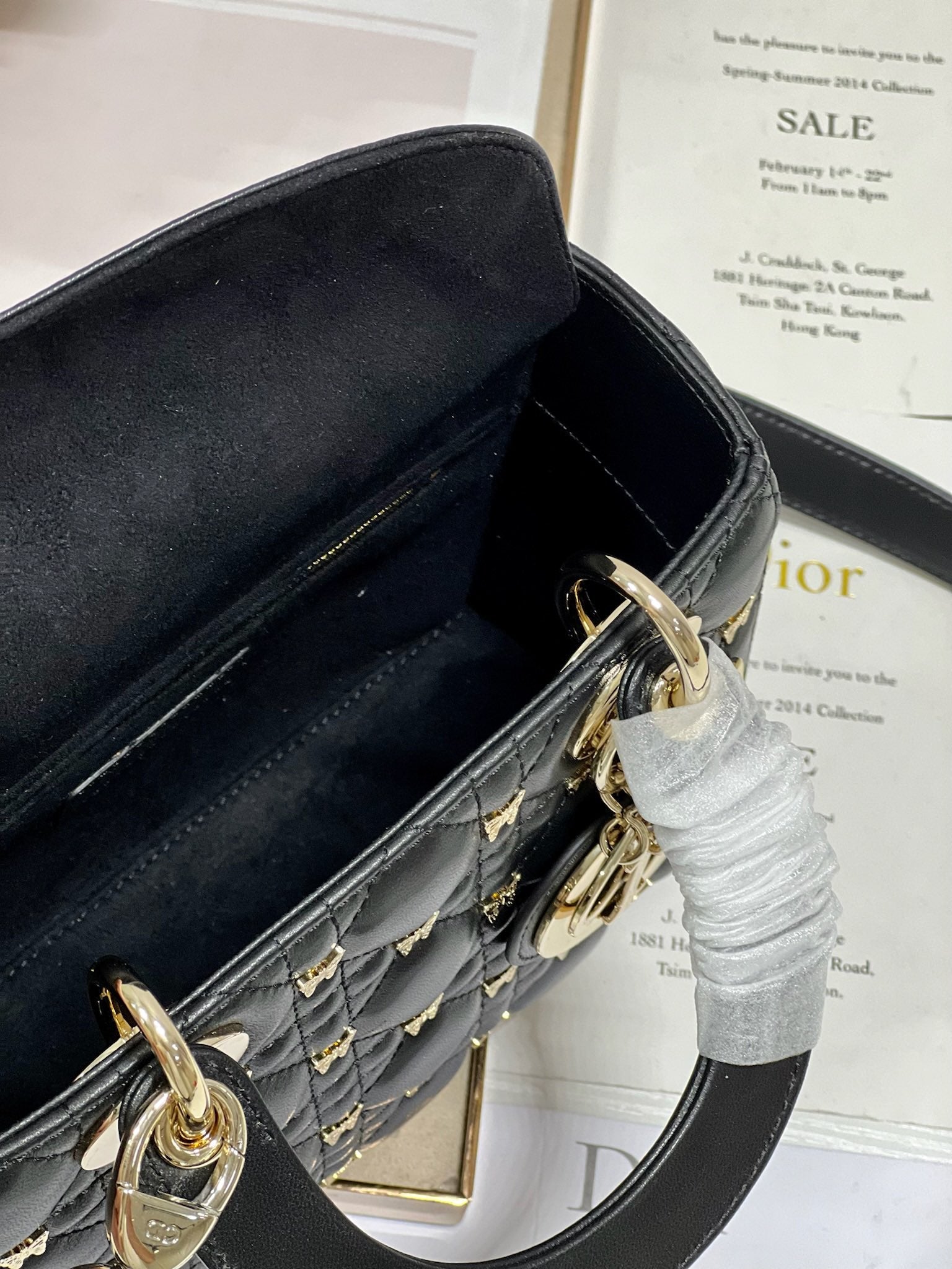 SMALL LADY 20 BUTTERFLY STUD BLACK LAMBSKIN